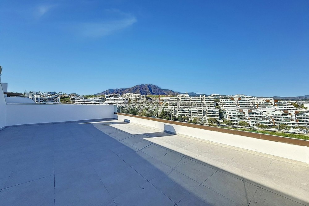 - Discover this magnificent newly built apartment, located in the prestigious Las Mesas area of Estepona. Designed to combine comfort, modernity, and a privileged lifestyle, this property is ideal for those looking to enjoy the best of Estepona and the Costa del Sol. The apartment features 3 bedrooms and 2 bathrooms (one of them en suite), with modern, high-quality finishes. Its open-concept kitchen flows perfectly into the spacious living-dining room, creating a bright and functional space with direct access to the terrace. One of the highlights is the impressive 58 m² private solarium with panoramic views—perfect for relaxing, entertaining guests, or simply enjoying the wonderful Mediterranean climate. The property includes a storage room and a parking space. The residential complex offers inviting communal areas, including a fully equipped gym, well-maintained gardens, and a community pool, providing the perfect setting to enjoy with family and friends. Located in a privileged area with easy access to major roads, this apartment lets you take full advantage of everything the Costa del Sol has to offer. Marbella and Puerto Banús—renowned for their glamour and leisure offerings—are less than 20 minutes away by car, as are top golf courses and shopping centers. The beach, Estepona’s town center, and its charming marina are also just minutes away.