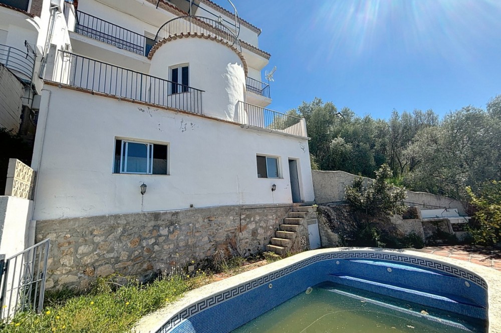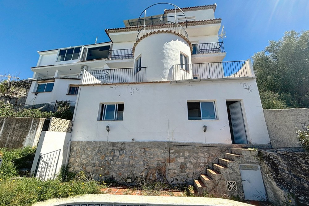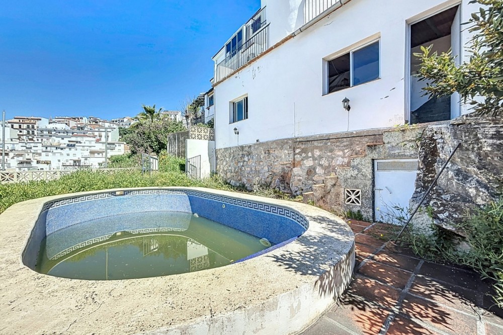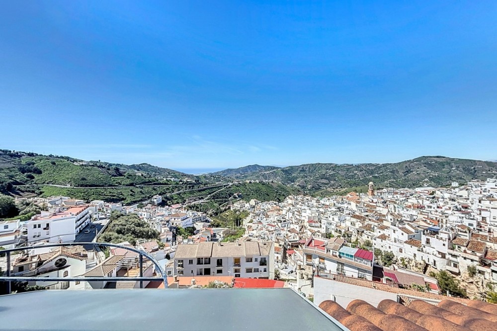 - This light-filled chalet on the edge of Cómpeta combines space, tranquility, and the ease of Andalusian living. Spread over three levels, it offers plenty of room to arrive, breathe, and feel at home whether as a permanent residence or a sun-drenched retreat. Inside, you'll find three cozy bedrooms, a bathroom, an inviting living room, a separate dining room, and a functional kitchen all bright, spacious, and designed for comfortable living. Life unfolds outdoors: several terraces and balconies offer sunny and shaded spots throughout the day perfect for morning coffee, a good book, or relaxed evenings with friends. The pool area with a built-in barbecue is made for long summer days, while the views stretch over the village, the surrounding hills, and out to the distant sea. A garage, storage room, and separate laundry room add to the home's practicality. And best of all: the shops, cafés, and restaurants of Cómpeta are just a short walk away. A home with soul for those who want to enjoy the Andalusian lifestyle to the fullest. We are pleased to be able to present this dream property to you soon, either personally or via virtual viewing. Because this world is unique - just like our Axarquía. In Andalusia. On the Costa del Sol. Here, on the sunny side of life...
