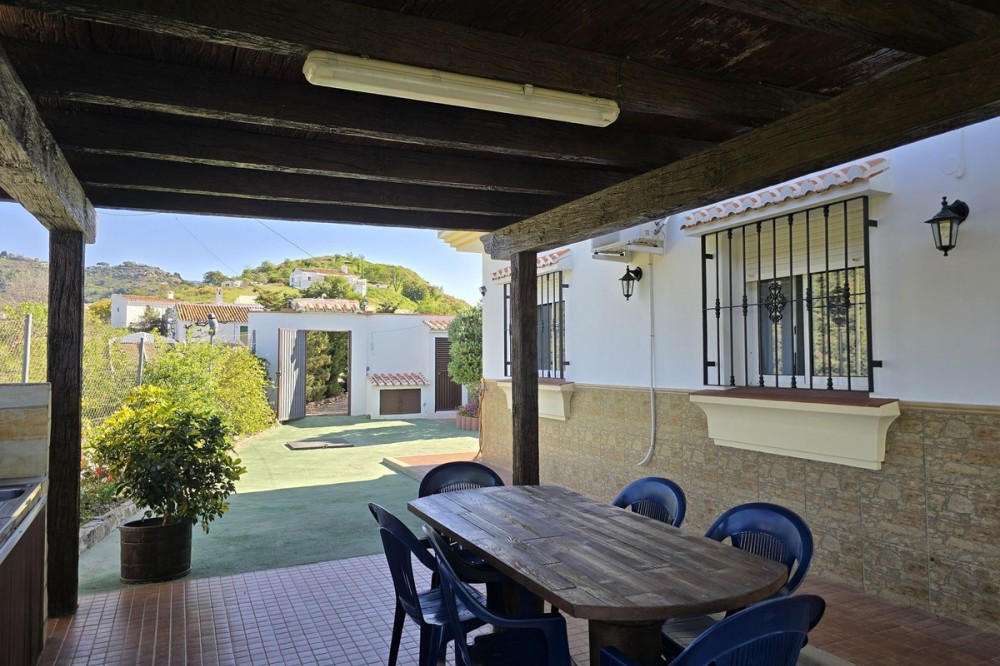 - Charming Spanish Villa in Competa with Breathtaking Views & Exceptional Outdoor Space Nestled in a serene and picturesque setting, this stunning traditional Spanish villa offers an unparalleled combination of tranquility, charm, and spectacular panoramic views of the rolling countryside, majestic mountains, and the shimmering Mediterranean Sea. Whether you are looking for a peaceful retreat, a place to entertain family and friends, or a fantastic investment opportunity, this villa truly has it all. A Home Full of Character & Comfort Stepping inside, you’ll immediately be captivated by the villa’s authentic Andalusian charm, with high beamed ceilings, exposed brickwork, and rustic details that create a warm and inviting atmosphere. The thoughtfully designed layout features: Two spacious double bedrooms filled with natural light One single bedroom, ideal for guests or a home office A fully fitted kitchen, equipped with everything you need to prepare delicious Mediterranean meals A bright and airy open-plan living & dining area, offering ample space for relaxation and gatherings A beautifully finished family bathroom with modern fixtures Adding to the home’s comfort, the villa is equipped with double-glazed windows, air conditioning & heating, fitted wardrobes, and an inviting open fireplace, ensuring year-round coziness and convenience. A Dream Outdoor Lifestyle This villa truly excels in outdoor living, boasting a spacious, well-designed, and entirely flat outdoor area that makes the most of the breathtaking surroundings. Whether you’re hosting a summer barbecue, unwinding by the pool, or enjoying a quiet morning coffee while taking in the views, this space is designed for relaxation and enjoyment. Two covered beamed dining terraces – perfect for alfresco dining with family and friends A built-in summer kitchen & BBQ area – ideal for entertaining and enjoying outdoor cooking A stunning sea salt swimming pool – a true oasis to cool off and enjoy the sunshine An outdoor shower & a fantastic open sun terrace – perfect for soaking up the Mediterranean climate A fully fenced plot ensuring privacy and security A beautifully maintained garden with a variety of fruit trees & two vegetable patches – offering homegrown produce right at your doorstep Endless Potential & Additional Features Adding even more value, the property includes a large storeroom with an exterior WC & hand basin, offering practical storage solutions. What’s more, this space has the exciting potential to be converted into a self-contained apartment, making it ideal for rental income, guest accommodation, or a private retreat for visiting family and friends. With its idyllic setting, generous living spaces, and exceptional outdoor areas, this villa is an outstanding opportunity for anyone looking to embrace the laid-back Andalusian lifestyle. Whether you dream of relocating to the sun-drenched south of Spain, investing in a holiday home, or simply owning a piece of paradise, this property is a rare find that promises endless possibilities. Don't miss this chance to make this dream villa your own—schedule a viewing today and fall in love with its charm, beauty, and breathtaking surroundings!