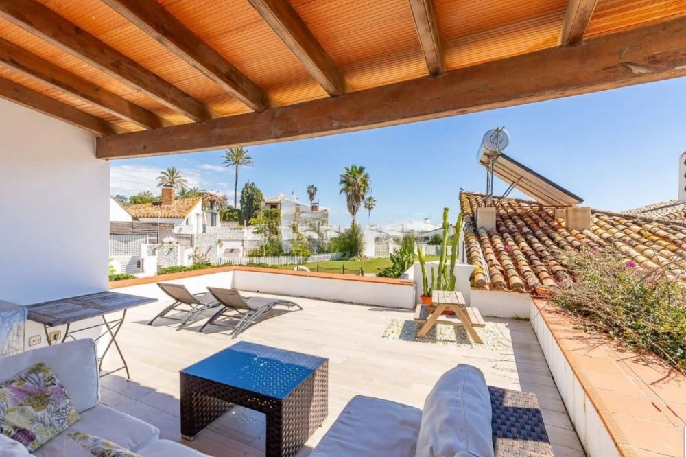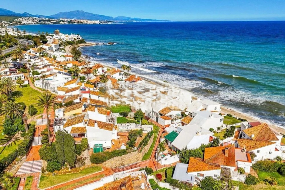 - EXCLUSIVE BEACHFRONT TOWNHOUSE FOR SALE – BAHÍA DORADA, ESTEPONA Coastal Living at Its Finest – Just Steps from the Sea Located only 50 metres from the beach, this beautiful semi-detached townhouse offers direct access to the sea and breathtaking views over the Mediterranean. Set within the peaceful and picturesque seaside community of Bahía Dorada, just west of Estepona’s town centre, this home is part of a charming whitewashed urbanisation known for its natural beauty, well-maintained surroundings, and authentic Andalusian character. With a built area of approximately 112 m² on a private plot of around 236 m², this light-filled home welcomes you with a spacious living room featuring a cozy fireplace and large windows that open onto a sunny south-facing terrace — the perfect spot to relax, entertain guests, or enjoy outdoor dining with uninterrupted sea views. The property includes three well-sized bedrooms and two bathrooms, making it suitable for families, couples, or guests. The independent kitchen is fully fitted and thoughtfully designed, ideal for both everyday use and entertaining. High-quality finishes run throughout the home, including porcelain floors, Climalit double-glazed windows, built-in wardrobes, and white lacquered interior doors. Thanks to its south-facing orientation, the home enjoys abundant natural light throughout the day. An unassigned parking space within the gated complex is also included for your convenience. The community of Bahía Dorada is beautifully maintained and offers excellent shared amenities, including two communal swimming pools, a tennis court, and lush landscaped gardens. A private pathway from the complex leads you directly to the beach — a rare and highly desirable feature. About the Area – Bahía Dorada, Estepona Bahía Dorada is a quiet and well-established residential area on the New Golden Mile, known for its coastal charm, peaceful setting, and easy access to essential amenities. This privileged location allows you to enjoy the tranquillity of seaside living without being far from services. Within just a two-minute drive, you’ll find supermarkets such as Mercadona and Aldi, various restaurants and beach bars, a pharmacy, the new Estepona hospital, and several schools. The vibrant centre of Estepona and its marina are just five minutes away by car, while the exclusive Puerto de la Duquesa is also nearby. Marbella is only 20 minutes away via the A-7 coastal road. Málaga Airport is reachable in under an hour, and Gibraltar Airport in approximately 30 minutes. Whether you're looking for a permanent residence, a second home by the sea, or an attractive investment property, this townhouse offers move-in readiness with great potential to personalise or modernise to your taste. Don’t miss this rare opportunity to own a frontline beach townhouse in one of Estepona’s most desirable coastal enclaves. Contact us today to schedule your private viewing and discover the best of Mediterranean living.