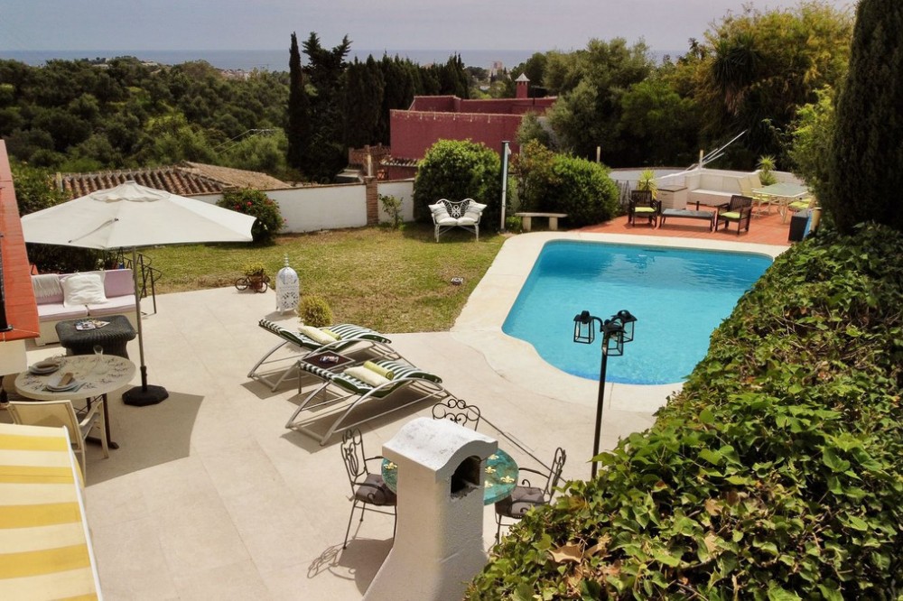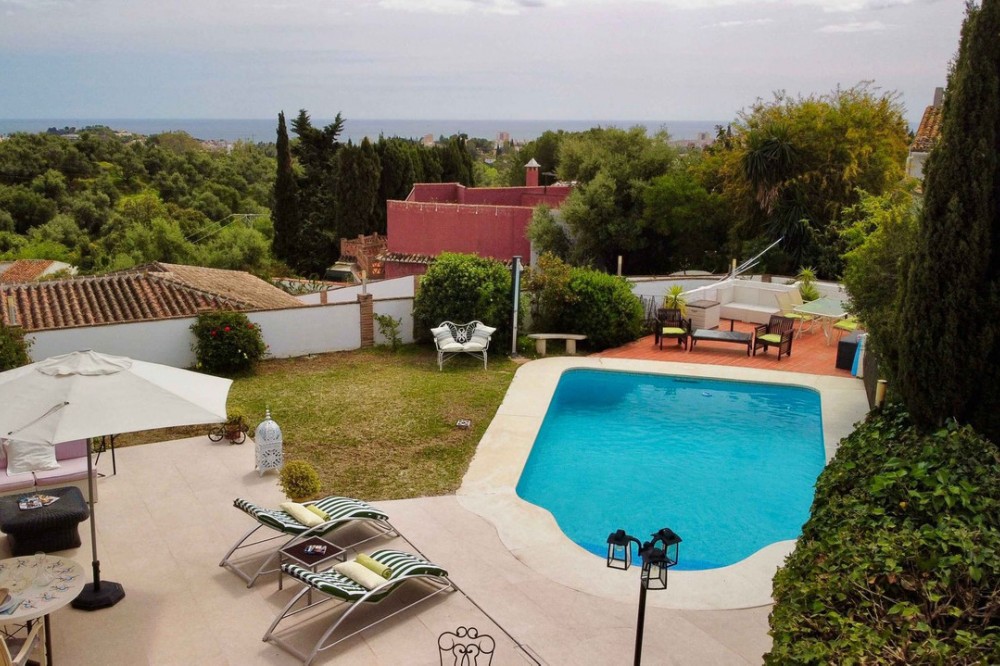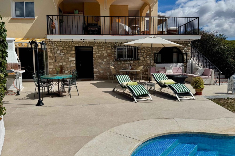 - Welcome to this detached villa located in the highly sought-after area of Mijas, offering breathtaking views of sea and mountain…an enviable location, and a multitude of desirable features. Situated on a tranquil urbanization, this property spans across two floors, effectively comprising two separate houses. Notably, one of the houses is registered as a holiday rental, boasting an up-to-date license and a proven track record of generating substantial income annually.With a total area of 320 m², this villa offers ample space for comfortable living. The property boasts six bedrooms and five bathrooms, ensuring plenty of room for residents and guests alike. The well-designed layout includes fitted wardrobes in each bedroom, providing practical storage solutions.The villa sits on a generous land plot of 858 m², allowing for a beautifully landscaped garden that perfectly complements the tranquil surroundings. You can bask in the glorious Mediterranean climate and entertain guests on the terrace or balcony, both offering stunning panoramic views that stretch as far as the eye can see.Parking will never be a concern, as this property includes a dedicated parking space. The villa, in good condition since its construction in 1970, also features a storeroom to accommodate your belongings conveniently.As you explore the property, you'll discover a south, east, and west orientation, allowing abundant natural light to flood the living spaces throughout the day. The villa also offers individual heating for year-round comfort.Undoubtedly, one of the highlights of this villa is the inviting swimming pool, offering the perfect oasis for relaxation and recreation. Imagine taking a refreshing dip on a warm summer's day or simply unwinding poolside while enjoying the stunning surroundings.This magnificent villa in Mijas presents a unique opportunity to own a property that combines both a luxurious residential dwelling and a profitable holiday rental business. Whether you're seeking an exquisite home for personal enjoyment or a wise investment, this property fulfils both aspirations.Don't miss out on this exceptional opportunity. Embrace a lifestyle defined by magnificent views, a serene ambience, and the potential for substantial income. Contact us today to arrange a viewing and secure your dream villa in Mijas.