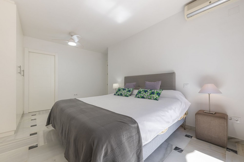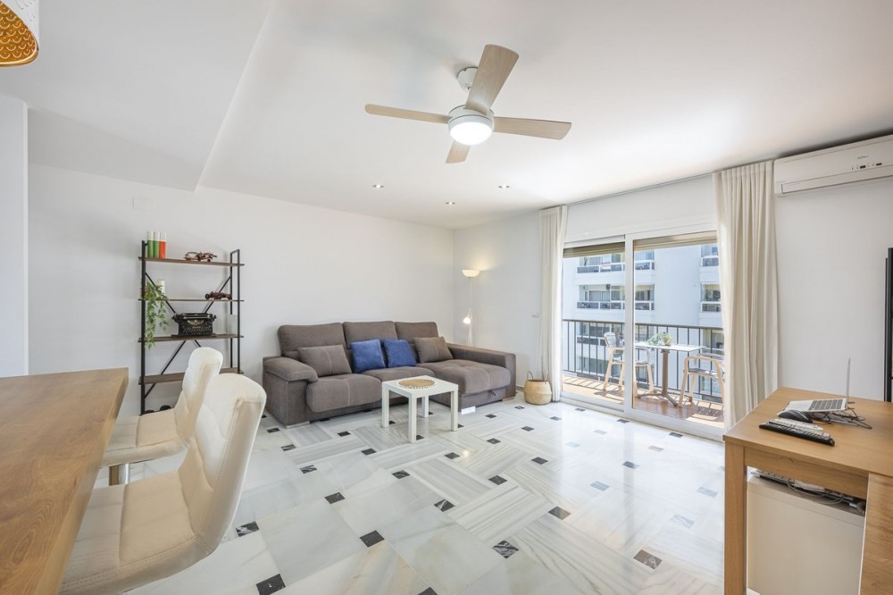 - Very attractive flat in the Puerto Deportivo area of Fuengirola less than 100 metres from the sea. It consists of three bedrooms, including in the main one an en suite bathroom and fitted wardrobe, the two renovated bathrooms have a shower, the main bedroom and one of the secondary bedrooms have a french balcony with west orientation The double glazed windows are an excellent option to improve the security and insulation of your home, it also has electric shutters. This type of window has a system that allows a more airtight seal, which helps to maintain the interior temperature and reduce exterior noise. The recent refurbishment and the fully equipped designer kitchen are great advantages, and the west facing terrace will surely be a perfect place to enjoy the sun and natural light, and the flat is very bright in all rooms. The proximity to supermarkets, restaurants and bus stops makes it even more convenient for daily life. Make an appointment now to arrange a viewing of this magnificent flat. ‘According to the decree of the Junta de Andalucía 218-2005 of the 11th of October, we inform you that the notary, registry and ITP costs are not included in the price’.