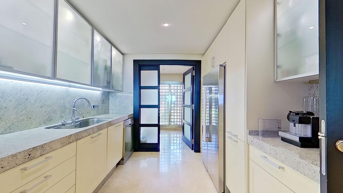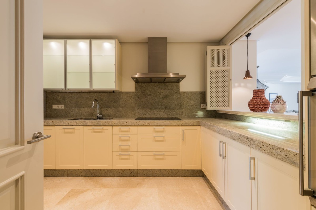 - Unique frontline beach penthouse with panoramic sea views ! - Reserva de los Monteros, Marbella Located within La Morera Playa - A Luxury apartment complex designed by the renowned architect Melvin Villarroel situated at La Reserva de Los Monteros just east of Marbella town. Facing directly the Mediterranean Sea, it offers some of the best sandy beaches in Marbella at the gates of the community - Ample interior space and terraces - All with the most stunning sea views - This is arguable the best penthouse in the complex ! This large duplex apartment has three spacious en suite bedrooms, with build-in wardrobes. The master bedroom, located upstairs, has furthermore a private terrace. The finishings include cream marble floors, underfloor heating, and travertine marble bathrooms and sauna in the master bedroom. The property has been maticulously maintained and is well presented in all areas. In addition, the property has two ample garage spaces and a storeroom included in the price. A beautiful apartment in a fantastic location close to all the amenities and Marbella town - Located just 5 kilometres from Marbella town center and within easy reach of Marbella numerous golf courses. This exclusive and very private community has 45 apartments and duplex apartments - All built to a very high standard with bright and spacious rooms. The development enjoys a concierge service and 24 hour security with guards and CCTV. In addition the community has more than 10.000 m2 of sub-tropical gardens - Swimming pool, gymnasium, sauna and indoor swimming pool. 3B/3.5B - Living area: 256 m². - Terraces: 175 m². - Total built area: 431 m².