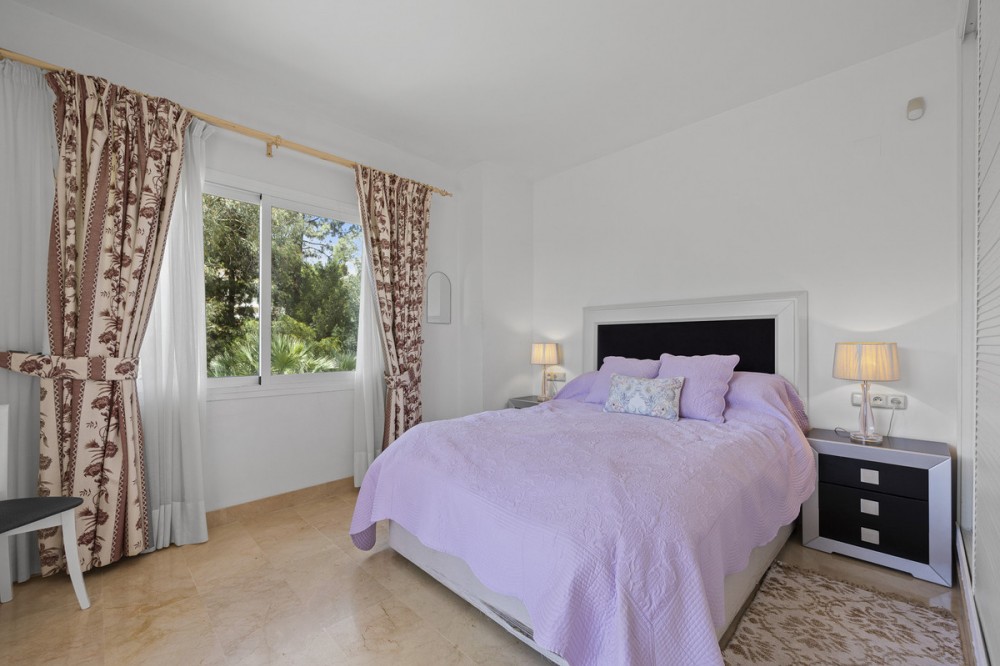 - Located in the prestigious Golden Mile of Marbella, this beautifully presented four-bedroom, three-bathroom apartment offers a luxurious lifestyle in one of the most sought-after areas on the Costa del Sol. Set within a secure gated urbanisation with 24-hour security, the property is just a short stroll from the beach and moments away from the vibrant hubs of Marbella and Puerto Banús, as well as top-rated restaurants, international schools, and all essential amenities. The apartment is in very good condition and comes fully furnished, ready for immediate occupancy or short-term rentals. Inside, you'll find a spacious and airy layout with a bright living area, a fully fitted kitchen, a separate laundry room, and generously sized bedrooms with fitted wardrobes. The marble flooring throughout adds a touch of elegance, while the west-facing orientation allows for lovely natural light and tranquil views of the lush greenery surrounding the complex. Residents can enjoy the beautifully maintained communal gardens and a large swimming pool, perfect for relaxing or entertaining. Additional features include air conditioning (hot and cold), a private garage for one car, a storage room, and lift access, ensuring comfort and convenience throughout. This is an ideal property for those seeking a refined yet relaxed coastal lifestyle in a truly prime location!