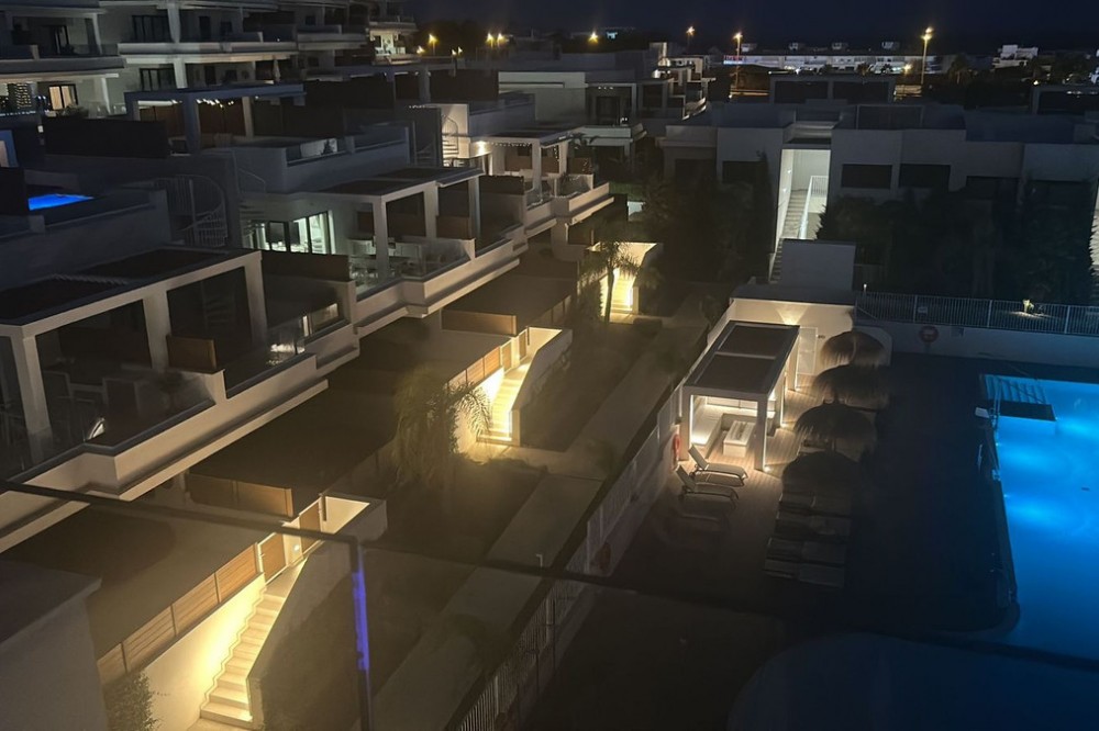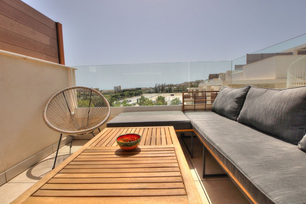 - Rare opportunity to purchase a corner penthouse apartment located in the La Noria area of La Cala de Mijas so an easy walk to the town and beach. The west facing terrace has afternoon and evening sun plus owners have the option to install a staircase to access a private roof terrace if you want additional outdoor space. Bright open plan lounge diner with fully fitted kitchen and 3 double bedrooms. The main bedroom has a walk in wardrobe and a gorgeous en-suite bathroom. The guest bedrooms have the use of the additional shower room plus there is an extra guest toilet which could be made into a 3rd bathroom if required. Finished to the highest quality with hot and cold air conditioning this property also includes 2 underground parking space and a huge storeroom. Owners also use of the beautiful communal swimming pool and the upcoming spa. We have keys in the office for you to come and visit this gem of a property