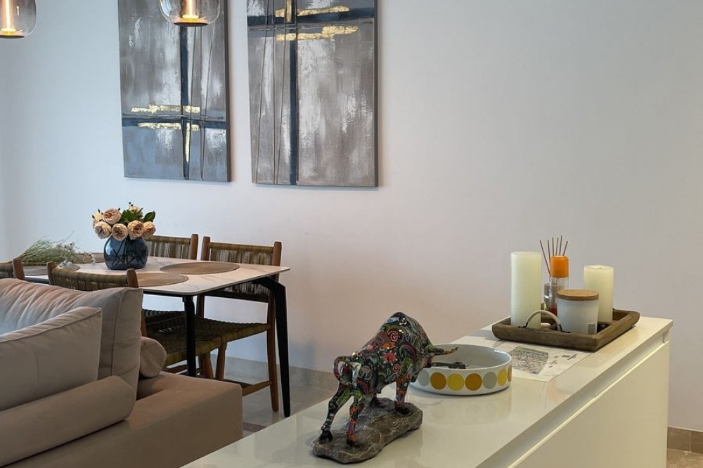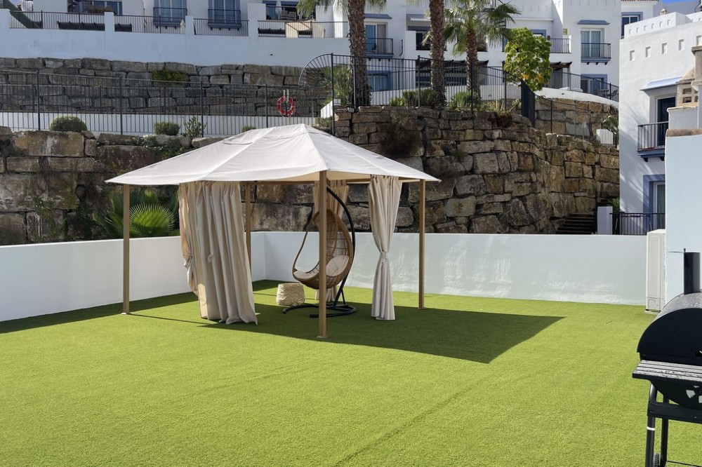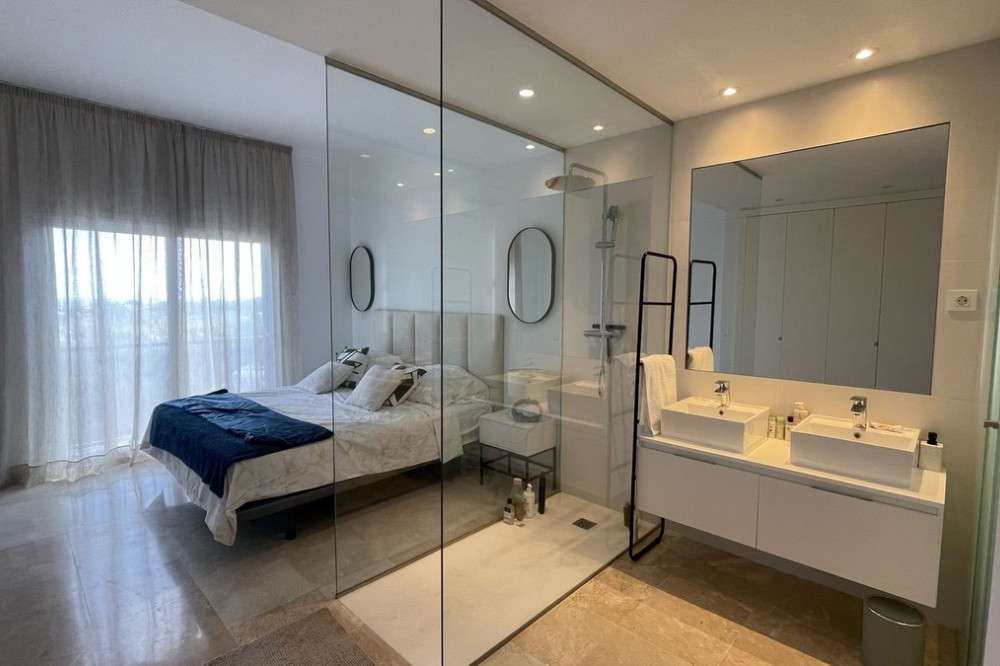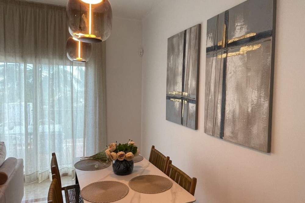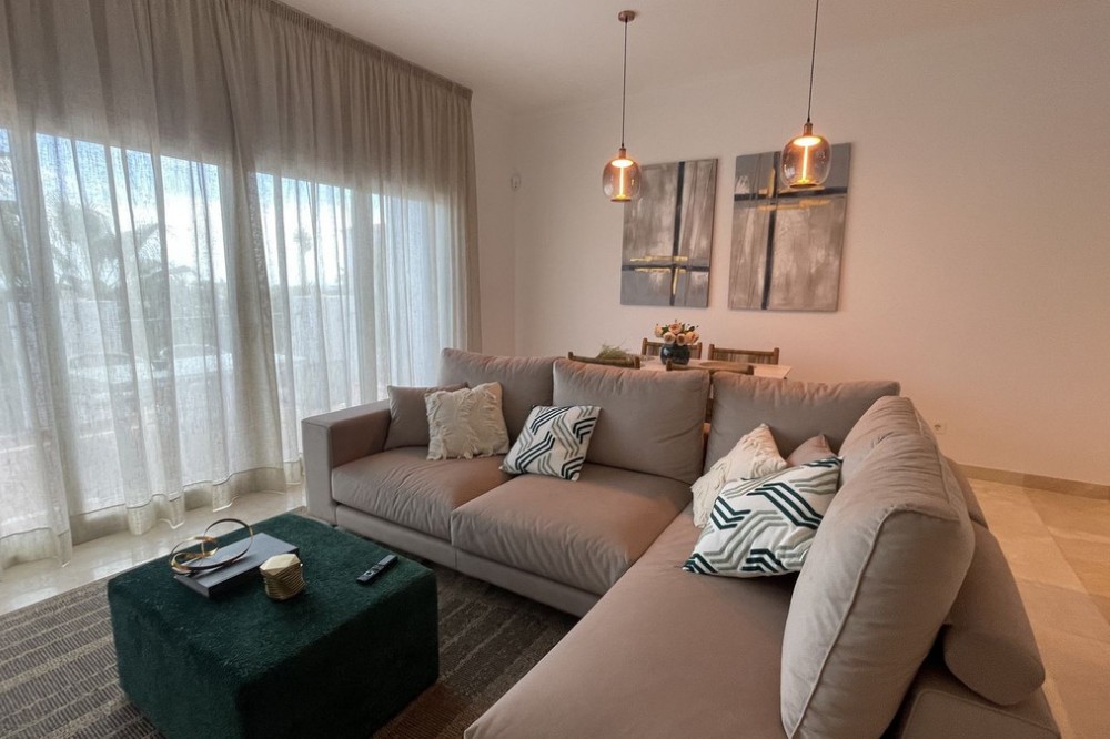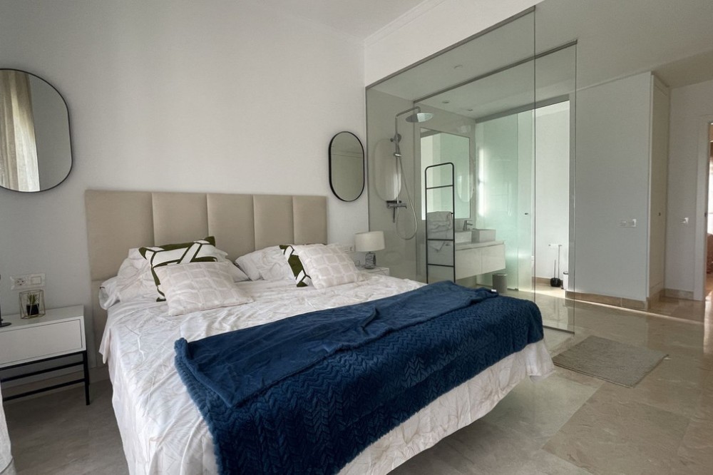 - 3-Bedroom Apartment with sew view in Paraiso Pueblo, El Paraiso, Benahavis Experience Mediterranean living at its best in this elegant 3-bedroom apartment located in the exclusive Paraiso Pueblo complex, within the gated urbanization of El Paraiso, Benahavis. This spacious 120 sq m residence combines modern comfort with the charm of Andalusian architecture, perfect for those seeking a serene yet vibrant lifestyle. Apartment Features: 3 Bedrooms and 2 bathrooms: Generously sized bedrooms designed for comfort and tranquility, ideal for families or professionals. 120 sq m of Living Space: Thoughtfully designed layout with ample space for living, dining, and entertaining. Modern Kitchen & Living Area: Fully equipped kitchen and open-plan living area that creates a warm and inviting atmosphere. Private Balcony: Enjoy peaceful views of the surrounding greenery from your own private balcony. Gated Urbanization: Benefit from the security and peace of mind offered by this exclusive, gated community. Stunning Communal Areas: Access to beautifully landscaped gardens, swimming pools, and relaxation areas within the complex. Prime Location: Ideally situated in the sought-after area of El Paraiso, Benahavis, close to golf courses, restaurants, and just a short drive from the beach. This apartment offers the perfect blend of luxury, comfort, and convenience in one of Costa del Sol’s most desirable locations. Contact us today to arrange a viewing and make Paraiso Pueblo your new home!