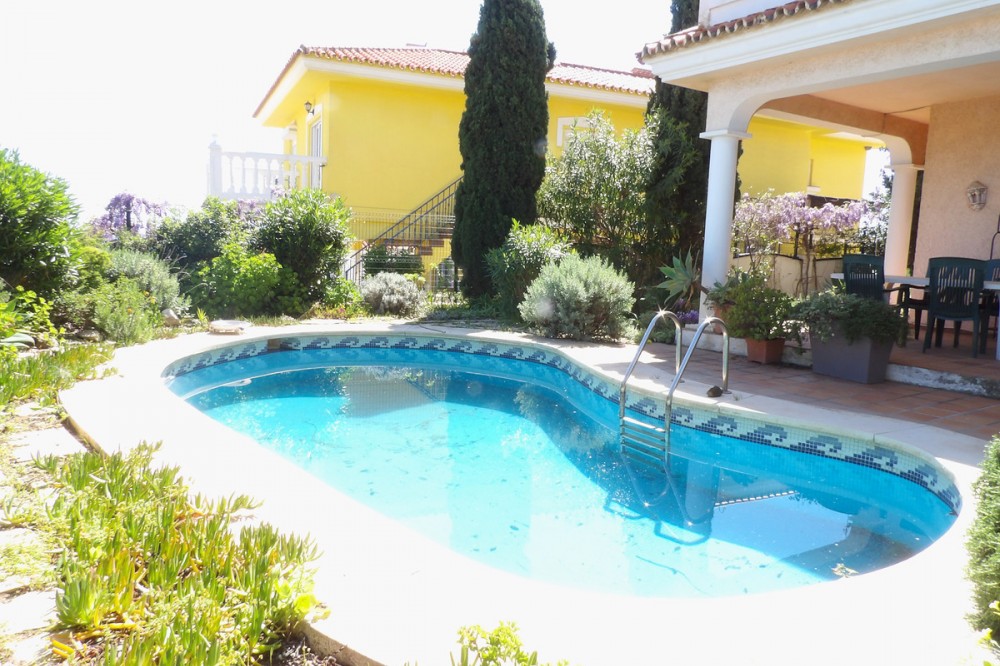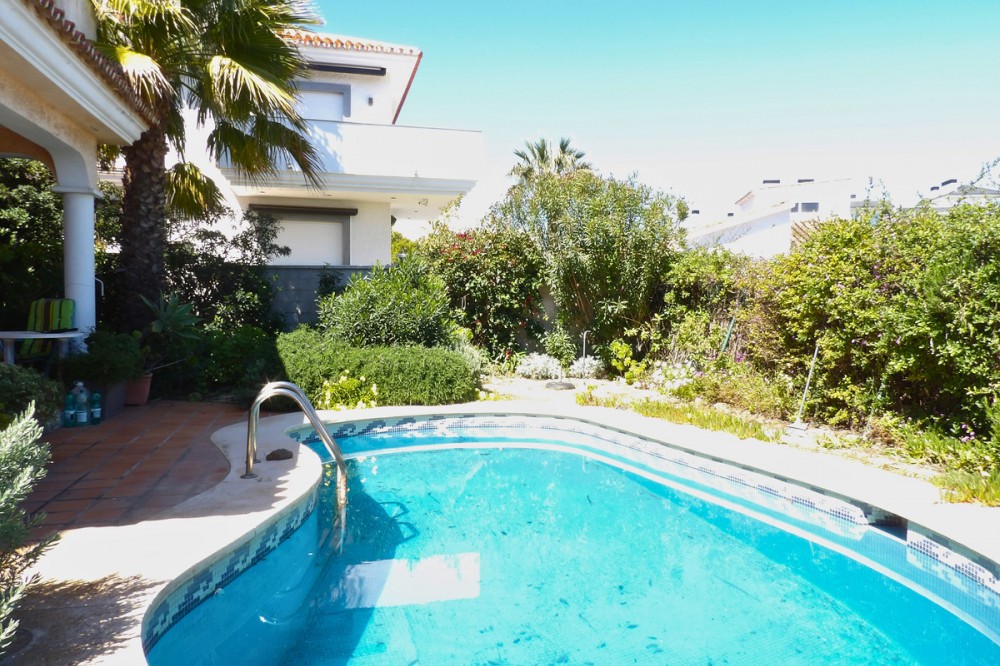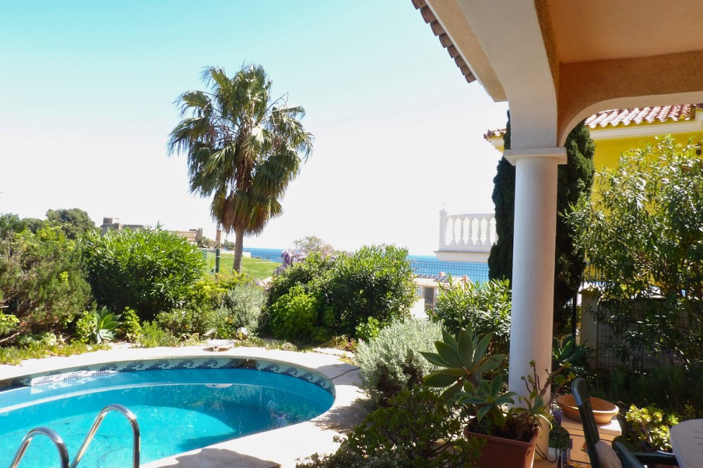 - This spacious villa is less than 400 metres from El Castillo beach with incredible views of the sea and mountains. A wonderful home located in a quiet cul de sac within walking distance of Fuengirola town, Miramar shopping centre and local transport. Distributed over three floors this large detached villa has three bedrooms all with ensuite bathrooms and the primary bedroom has a large terrace with amazing views. Below the house is a big basement area with windows which could be changed into more bedrooms or a gymnasium, second lounge area whatever suits your needs. There is also a private garage with lots of storage room. To the rear of this beautiful villa is a large covered terrace leading into a very pretty garden with a private pool and a variety of stunning tropical plants. The house has been built to the highest standard and benefits from a low maintenance water filtration system, biological sewage system and although it has town water there is also an independent water tank. This wonderful house would make the prefect family home whether it's all year round or for holidays.
