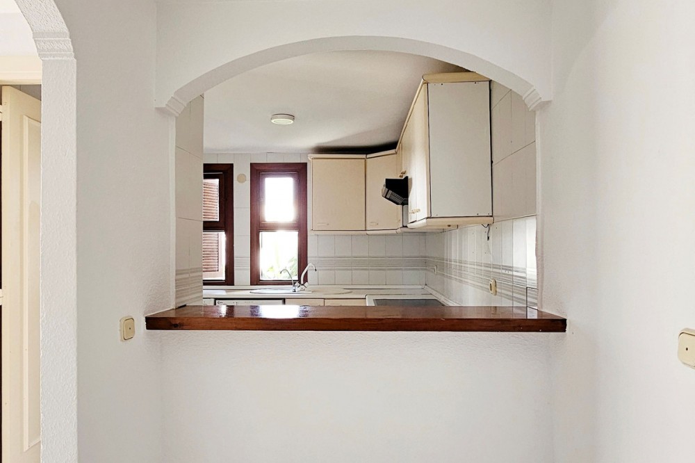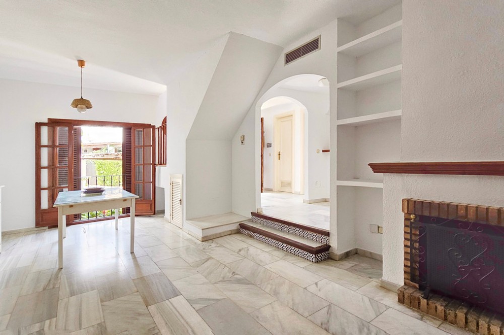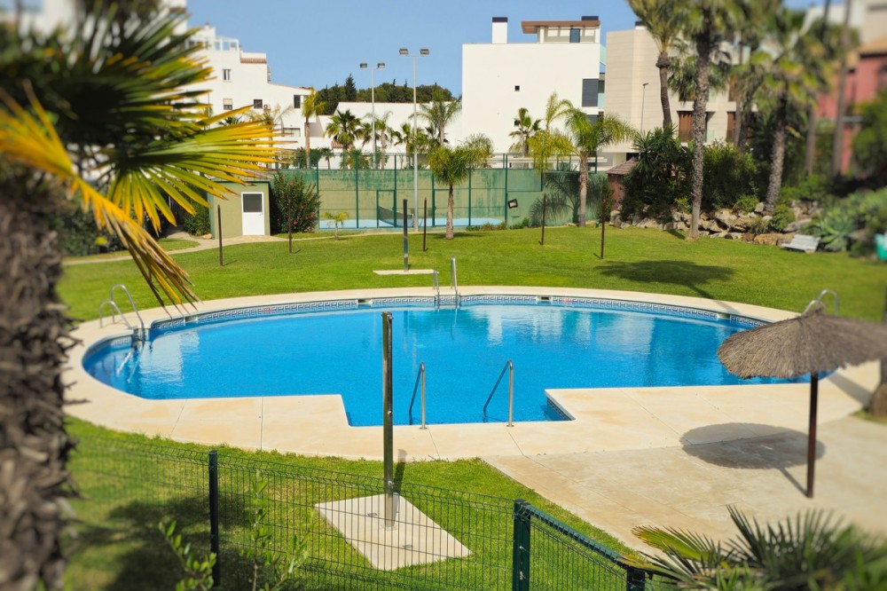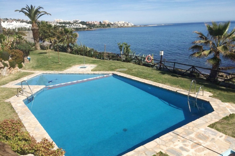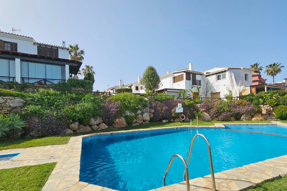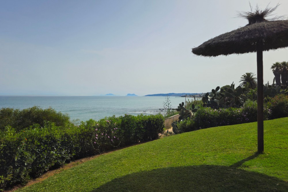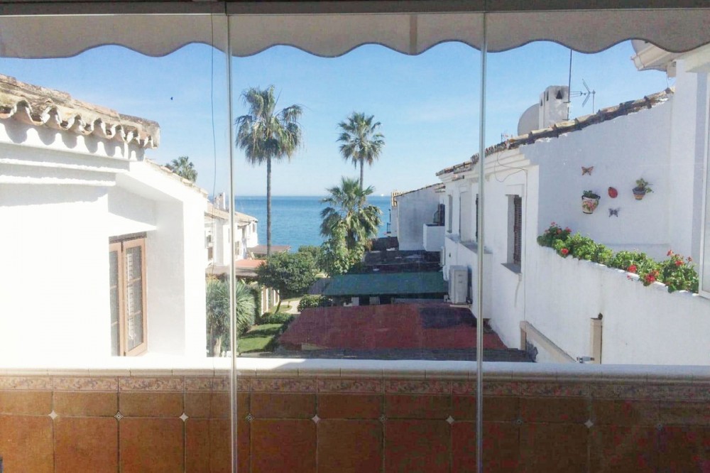 - Located in the established Bahia Azul urbanisation, this traditional Spanish house offers an excellent opportunity to acquire a property with direct access to the beach and communal amenities. The property features two bedrooms and benefits from an upstairs terrace with sea views as well as downstairs patio with access to communal garden and pool. While the house maintains its original character, it requires a minor update to suit individual preferences. Key Features: Two bedrooms Upstairs terrace with sea views One-minute walk to the beach and access to boardwalk along the front to Estepona Port Access to two communal swimming pools and padel court Located within a quiet residential urbanisation Investment Potential in Estepona Estepona is a highly desirable area on the Costa del Sol, known for its attractive coastline and established infrastructure. The area boasts a range of amenities, including beaches, golf courses, and local services. Strong demand for properties in this region makes this townhouse a sound investment opportunity with potential for capital appreciation and rental income.