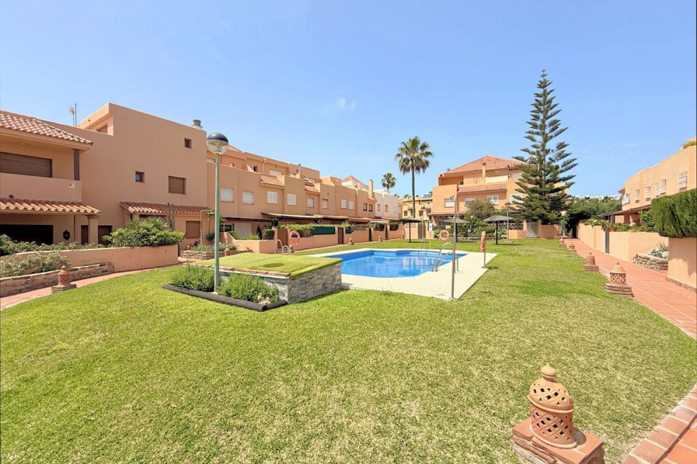 - Wonderful beachfront townhouse in Casares Costa! This exclusive property is located within a quiet and private residential complex featuring spacious green areas, a communal pool, and direct access to the stunning sandy beaches of Casares. It also connects to the extensive promenade that runs along the Costa del Sol, offering a wide variety of bars, beach clubs, and leisure areas. Ideally situated between Estepona and La Duquesa marinas, just a 4-minute drive or a pleasant walk away, the townhouse enjoys a south-facing orientation and breathtaking sea views from every room. The home is distributed across three levels. The main floor features a bright and spacious living room with large windows that open onto a private terrace, located right in front of the sea, just steps from the beach and beach bar. On the first floor, there are three generously sized bedrooms and two bathrooms, one of them en-suite, all with open views of the Mediterranean. The top floor offers a fourth bedroom with complete privacy and access to a large solarium terrace with panoramic views over the entire coastline. This property is ideal both as a permanent residence and as an investment, thanks to its strong rental potential for both holiday and long-term lets. It also includes an underground parking space for added convenience. A unique opportunity to enjoy the peace of living by the sea with all amenities nearby, without the need for a car. Viewing is highly recommended to truly appreciate all that this dream home has to offer.