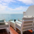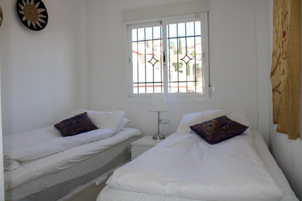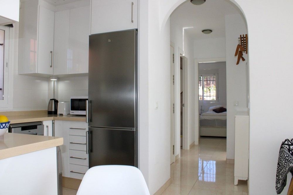 - NEW REALLY GOOD PRICE, €429,000 Exclusive semi-detached house with roof terrace and stunning views of the Mediterranean Sea, located in the well-kept urbanization Ladera del Mar 2 between Nerja and Torrox Costa. In addition to the two wonderful terraces of a total of 58.6 m2, you have two bedrooms, two bathrooms, living room and open-plan kitchen. The house is sold fully furnished and is tastefully decorated, just move in. Tourist license is available for rent, private parking is included in the price. The house is privately located with no outside access, at the entrance there is space for flowers or a coffee table if you want. Once inside the house on the right, we have a fully equipped kitchen with open plan to the living room. From the living room you reach one of the wonderful terraces, here there is also an awning for shade during the hottest days. We continue to the left at the entrance and there we first have a bathroom, and then a bedroom. Then follows another bedroom, this bedroom has its own bathroom. From this bedroom you also reach the lovely terrace, imagine waking up to this wonderful view. Last but not least, we go up to the fantastic roof terrace, the obvious place to enjoy life. Malaga airport is a 50-minute drive away, but there is also a regular bus service from Torrox. The renowned Baviera golf course is only a 20-minute drive from your new home. In winter, Granada is only an hour and a half drive away, with skiing in the Sierra Nevada. Skiing in the morning and swimming in the afternoon, the best of both worlds.