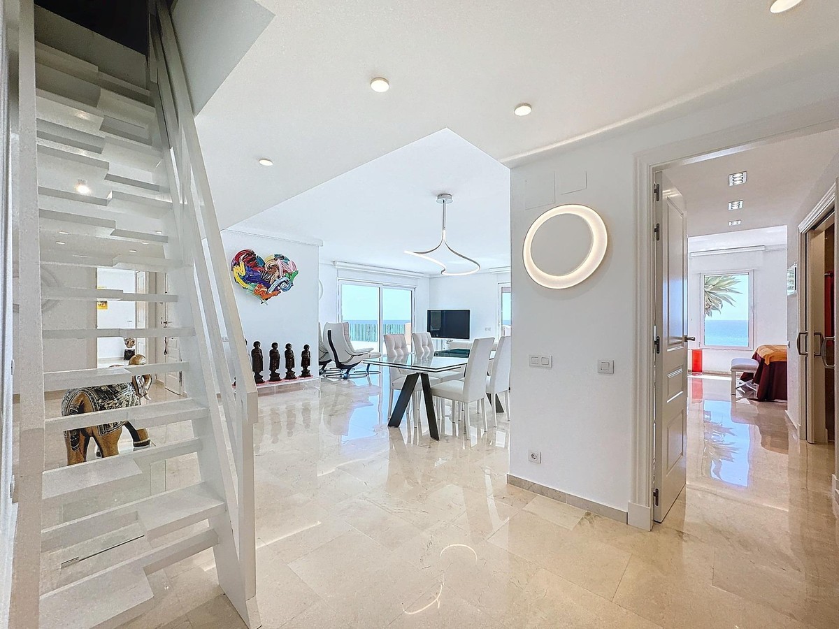 - We present to you this charming duplex penthouse located in one of the most prestigious and elegant urbanizations in La Duquesa, offering one of the finest 180º sea views and located along the promenade, just minutes from the Castillo and the Port of La Duquesa. In this very bright penthouse, the elevator will take you directly to the spacious living room, from which you can access a large terrace offering spectacular views of the Mediterranean Sea and Gibraltar, perfectly suited for enjoying unforgettable moments outdoors. The independent, fully equipped kitchen will meet the most demanding needs. The duplex penthouse has four double bedrooms, two of which are equipped with en-suite bathrooms, offering comfort and privacy for both residents and guests. A third bathroom completes this level. The second floor has a small lounge that can be converted into a bedroom or a games room. From there, you can access another terrace. This penthouse is a unique opportunity to fulfill your dream of owning a sunny property in a prestigious setting on the Costa del Sol. Don't miss this chance to wake up in the morning to this incredible sea view. Contact us today to learn more about this penthouse and to schedule a visit. In accordance with the decree of the Junta de Andalucía 218/2005 of October 11th, we inform the client that the property transfer tax (ITP), notary, and registration fees are not included in the price. However, real estate management fees are included in the price.