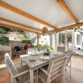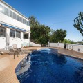 - Beautiful Family Villa with Modern-Rustic Style and Stunning Sea Views in Monte Alto. Situated in the highly desirable area of Monte Alto, this remarkable villa seamlessly combines modern amenities with rustic charm. Spanning three levels, the property offers breath-taking sea views and a carefully designed layout that is perfect for both relaxation and entertaining. As you enter the villa from the street, you'll find an electric gate and driveway for two cars, a terrace with a garden including fruit trees—ideal for relaxing and soaking up the winter sun with views of the mountains and cable cars. On entering the house, you are greeted with a bright and spacious conservatory with a dining area, created by enclosing the terrace with glass curtains. This space offers stunning views and can be opened for al fresco dining in the summer or closed during the cooler months. From the conservatory, you enter the stylish living area and open-plan kitchen. There is a generously sized double bedroom with built-in wardrobes and a family bathroom. The well-equipped kitchen and adjoining living room with a wood burner create a warm and welcoming space, perfect for family gatherings. The second bedroom is accessed via a staircase from the living area. This bright and spacious double room features the traditional turret-style design typical of the Monte Alto urbanization and offers lovely sea views. On the lower level, going down the staircase from the living room, the owners have created a self-contained living area. This space includes a third double bedroom, a bathroom/utility room, and an additional living room and conservatory with views of the pool, terraces, and garden. From here, you have direct access to the outdoor kitchen with a BBQ area and outdoor lounge, perfect for dining outdoors. From the outdoor lounge is a good-sized private pool with steps and ladder, ideal for families and friends, and terraces for sunbeds with room for sunbeds. Below the pool area and outdoor lounge is a mature garden with fruit trees, plants, and a grass area. The spacious plot offers the potential to add a garage and storage with an entrance or a studio and office, subject to planning. This villa is a fantastic opportunity to embrace a tranquil yet luxurious Mediterranean lifestyle. Whether as a family home or a holiday retreat, it is ready to move into and offers great potential for adding value. Don’t miss out on this exceptional property. Contact us today to arrange a viewing!