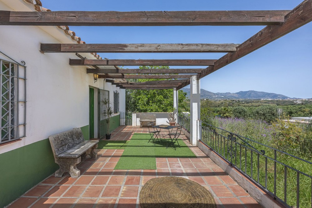 - Charming Irrigated Farm with Fruit Trees and Country House – A Natural Paradise on the Costa del Sol Discover this wonderful 10,300 m² irrigated farm, a true oasis of tranquility and nature, located in a privileged setting. The farm is fully planted with a wide variety of fruit trees, offering abundant and sustainable production throughout the year. Species include citrus, avocado, olive, fig, and other typical Mediterranean trees, creating a fresh, aromatic, and vibrant environment. It has an installed irrigation system and a large pool, ideal for both storing water and enjoying it as a swimming or recreational area on warmer days. This farm includes a cozy, rustic-style country house, perfectly integrated into the landscape. The house consists of: 2 spacious bedrooms with views of the countryside. 1 living-dining room with a traditional fireplace, ideal for winter evenings. Functional, fully equipped kitchen. Porch with unobstructed views, perfect for enjoying al fresco meals, reading, or simply relaxing and admiring the surroundings. This exclusive irrigated estate is located in a truly unique setting, next to the prestigious La Cala Resort golf course, one of the most renowned in Europe for its stunning views, top-level facilities, and peaceful atmosphere. Surrounded by nature and tranquility, the estate enjoys a green and serene setting, ideal for those seeking privacy without sacrificing comfort and quality services. Just a 10-minute drive away is La Cala de Mijas, one of the most sought-after destinations on the Costa del Sol, with a charming coastal town offering haute cuisine restaurants, shops, wellness centers, and all the necessary services. Its wide, well-maintained beaches are considered among the best on the coast, with clean waters, renowned beach bars, and a vibrant social and cultural life year-round. Thanks to its excellent road access, it is also less than 30 minutes from Malaga International Airport and iconic cities such as Marbella and Fuengirola. A setting that combines luxury, nature, and a Mediterranean lifestyle, perfect for those who value tranquility, connection with the environment, and, at the same time, proximity to the best that the Costa del Sol has to offer.