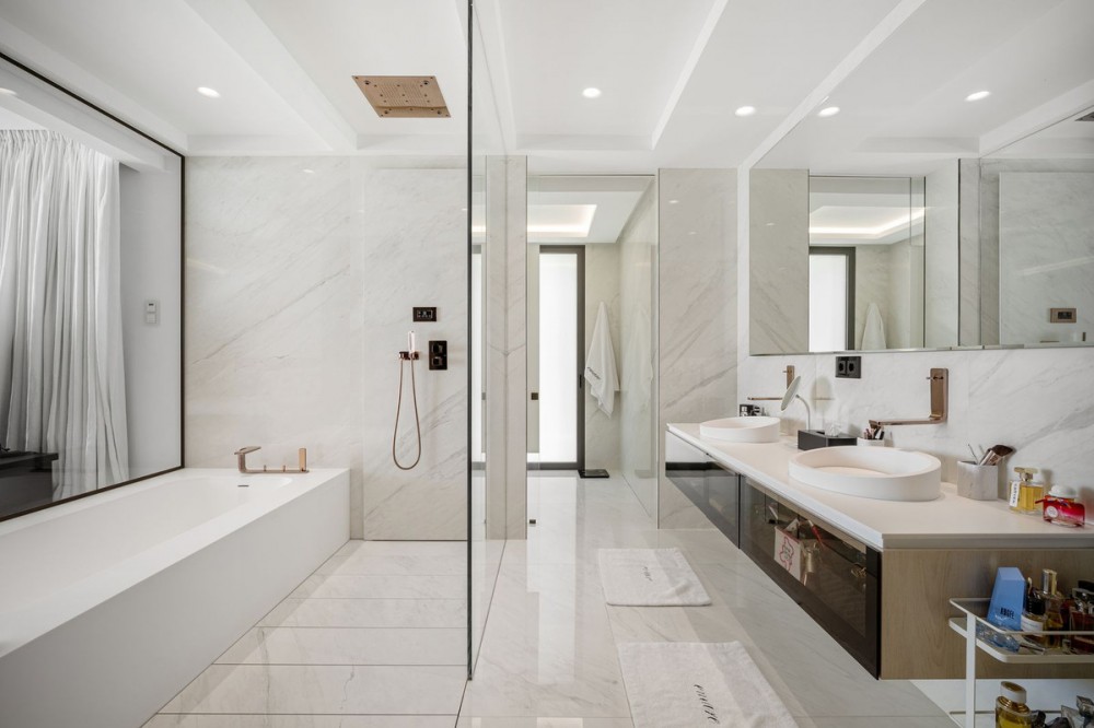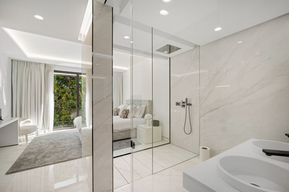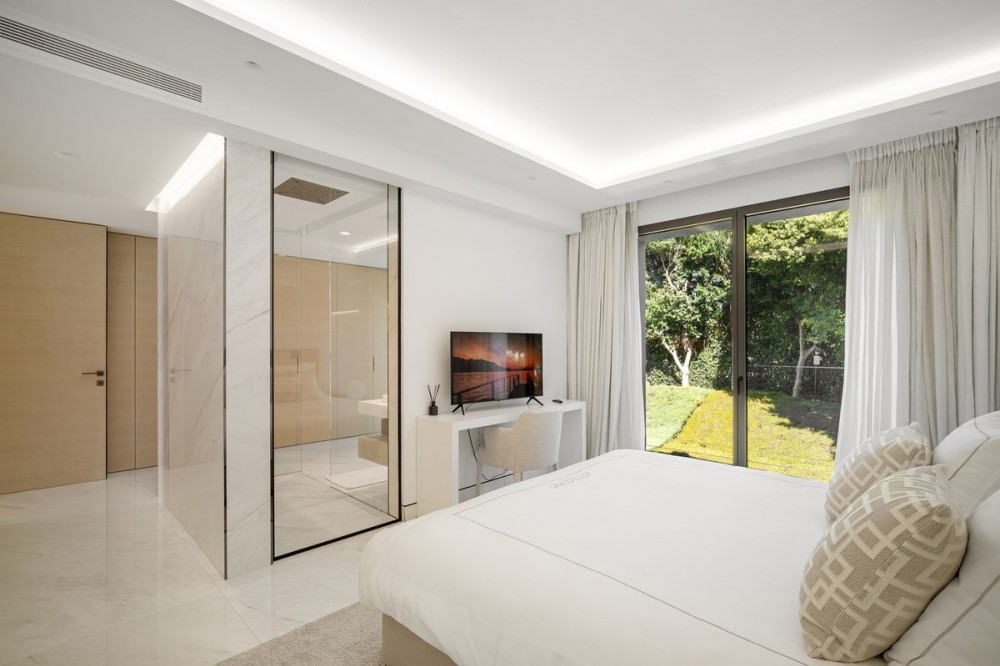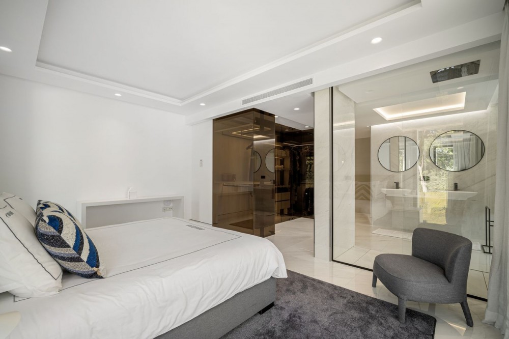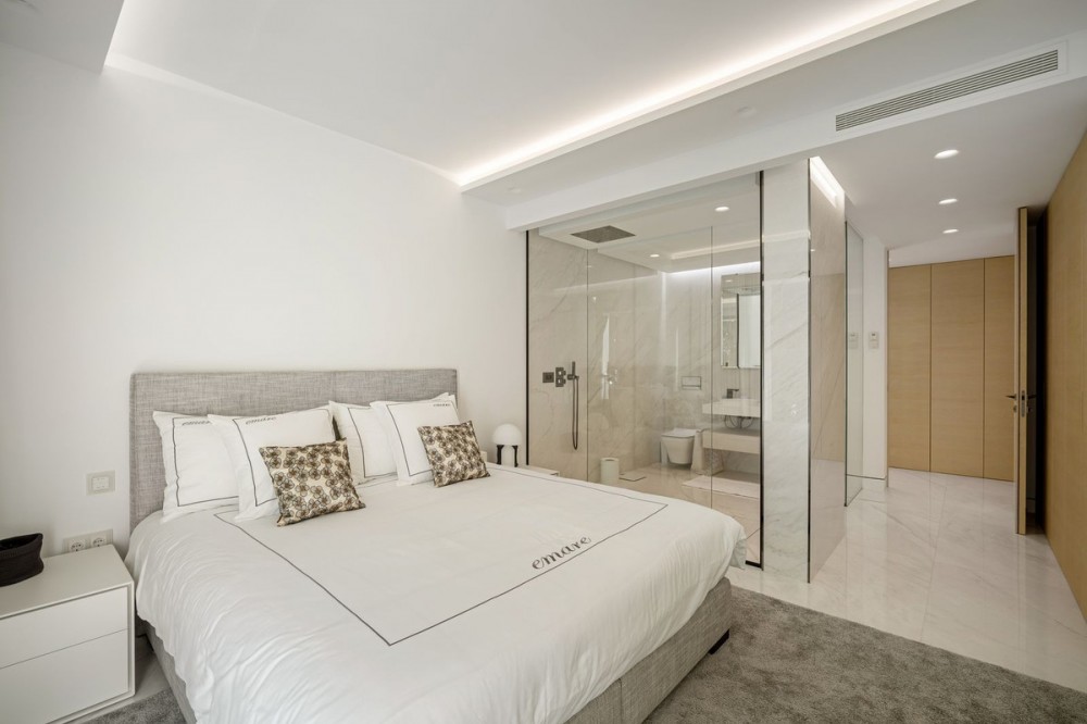 - Superb 548 m² apartment located on the seafront in Estepona, with exceptional panoramic views of the Mediterranean. It offers 5 bedrooms, 5 bathrooms (4 of which are en suite), 6 toilets, and a magnificent 129 m² private terrace facing southeast. The 309 m² interior boasts impressive high-end amenities: marble floors, underfloor heating throughout the apartment, including the basement, a home automation system, a Sonos audio system, high-speed internet, a dressing room, a wine cellar, and a covered terrace. The private elevator provides direct access to a large basement, ideal for a bedroom, a wellness area, a home theater, or a games room. A private gym completes this unique space (Technogym equipment). Exterior amenities include 4 parking spaces in a secure garage, direct access to the beach, a heated saltwater pool, and a communal garden and pool. The residence boasts a high level of security, with guards, camera surveillance, controlled access, and concierge services. Located near shops, restaurants, golf courses, and schools, this rare property combines comfort, elegance, and serenity in an idyllic setting.