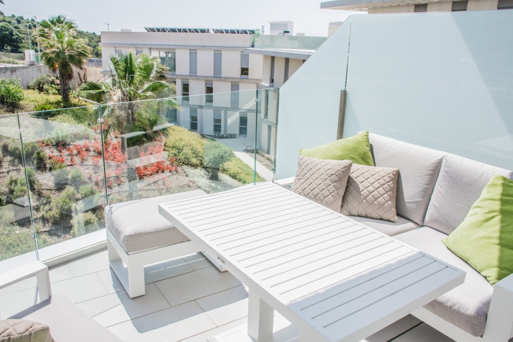 - Penthouse for sale – Serenity Collection, Estepona Modern penthouse for sale in the prestigious Serenity Collection development in Estepona. The property is like new, fully furnished, and is being sold with all the necessary equipment: ideal for both living and investment. Property Description: Spacious penthouse with modern finishes 2 bedrooms + living room with kitchen, 2 bathrooms Elevator in the building Modern glass railings on the terraces Air conditioning in all rooms High-speed fiber optic internet Alarm system Underground parking space and storage room Large terrace overlooking the gardens and pool Large communal pool and well-kept gardens in the development Location and Investment Advantages: Estepona is one of the fastest-growing real estate markets on the Costa del Sol; recent years have seen significant increases in investment values, and prices are rising faster than in many other regions of Spain. The development is within walking distance of the beach and a prestigious private British school: safe sidewalk access makes it ideal for families with school-aged children and increases the long-term rental potential. Excellent connections to the A-7 motorway allow quick access to the center of Estepona, Marbella, and other areas of the Costa del Sol. Peaceful and quiet area: no road noise is perceived, ensuring comfort and privacy. Why invest in Estepona? Estepona is enjoying growing popularity among national and international investors, and the real estate market is particularly stable and promising. High rental yields and high demand for luxury homes. Dynamic development of urban infrastructure, new investments, and tourist attractions.