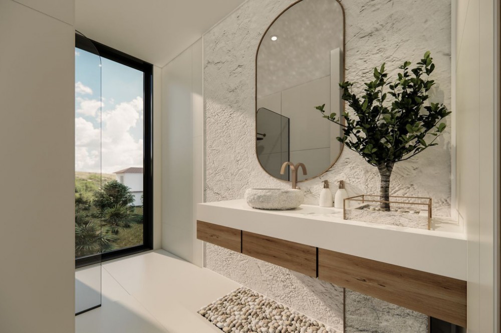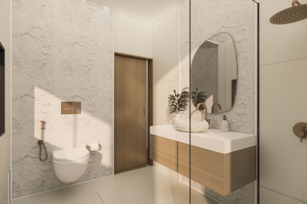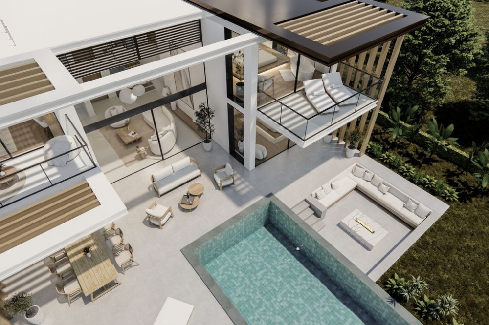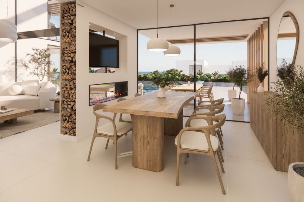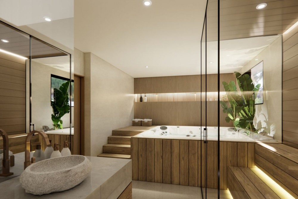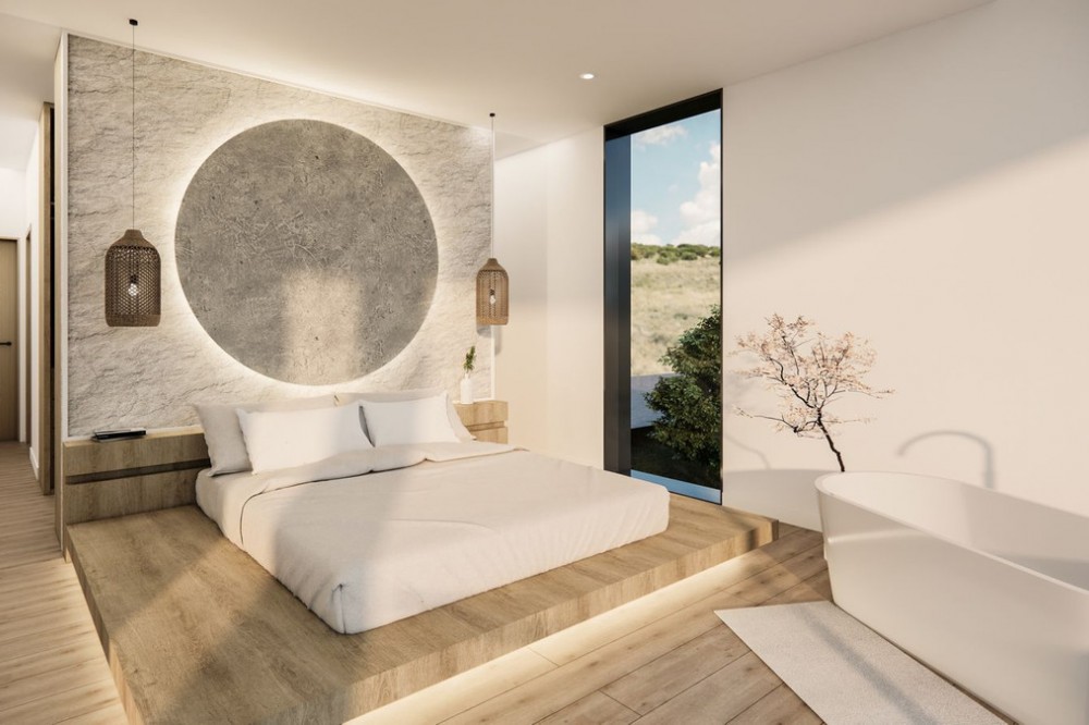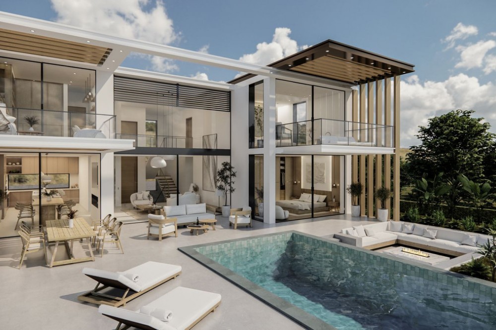 - New Development: Prices from €2,200,000 to €2,200,000. [Bedrooms: 5] [Bathrooms: 6] [Built size: 356m2]. Experience the perfect blend of luxury and tranquility with this magnificent Villa in Prime location as your possible new home, or holiday home! This contemporary villa stands out for its architectural design that reflects a game of volumes with a contemporary, Mediterranean and elegant aesthetic, offering relaxation and comfort, inviting to immerse in unique lifestyle. Provides a lifestyle that is linked to the environment, giving centre stage to the outdoor spaces and the superb views of the endless Mediterranean Sea! The main terrace includes a sunken lounge with fireplace, a large outdoor dining area and another lounge which is covered by a wooden pergola that creates a mesmerising play of light and shade, a magnificent pool, that makes every day feel like a vacation. An open and bright architectural design blurs the boundaries between indoors and outdoors combining sophistication and luxury with the charm of the Mediterranean coastline. The earthy tones unify the house with it's natural surroundings! The choice of noble and durable materials gives the Villa an authentic and comfortable atmosphere, creating a truly unique setting. Wood, found both inside and out, gives a rustic and welcoming touch. In the interiors, materials such as marble and stone in soft and light tones stand out. Option to buy with the full furniture package as well! Please find 360 views in the virtual tours bellow. • Compelling Description: - Highlight luxury - Sea views throughout the villa - 4 / 5 bedrooms. You have the option to choose, before the construction begins. Each with terraces and sea or mountain views , from some the Stupa is visible as well - 6 bathrooms - 3 car spacious garage - Indoor spa with sauna and a large jacuzzi - Home Cinema room to fully enjoy your movies every single day of the year - Elevator for easily uniting spaces - Large storage room - Home gym to conveniently master your fitness day by day - 365 m² living space, - 621 m² plot