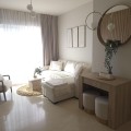 - This elegant and sun-filled apartment is located in a peaceful and well-maintained residential area, just a short drive from the city center. Set near a renowned golf course, it's a perfect choice for those who enjoy a relaxed lifestyle with easy access to both nature and urban conveniences. One of the apartment’s standout features is its spacious balcony, ideal for sunbathing or simply relaxing while taking in the panoramic views of the Mediterranean Sea. Whether you're looking to start your day with a serene sunrise or wind down in the evening, this outdoor space offers the perfect setting. Inside, the property boasts a bright open-plan living and dining area with large windows that let in plenty of natural light. The layout is thoughtfully designed, with two cozy bedrooms, a modern bathroom, and a fully equipped kitchen. The combination of comfort, style, and location makes this home suitable for both permanent living and holiday escapes.