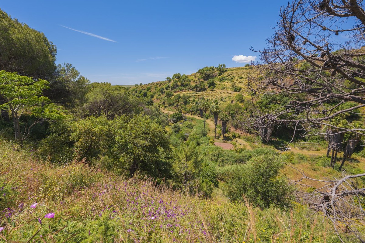 - Situated at a 25 minutes walk to Estepona city and a two minute drive to the AP7 highway, this former 9 hole golf course is one of a kind. The ancient holes & greens have been turned into a unique tropical food forest through regenerative agriculture where over 120 different species of fruit and vegetables from the 5 continents can be found. From finger lime, lemongrass,kaffir lime to papayas, mangoes, lychees and bananas but equally unique specimens brought over from all over the globe. And what about having your own aromatics, infusions of holy basil, mexican tarragon, syrian oregano and so much more at your disposal ... Moreover, what if you could swim in your own natural pond, with plant and animal life, feed with naturally filtered water using water lilies and other filtering plants in a nearby auxiliary pond in a wise, solar panel energy actioned, closed circuit. The recently constructed loft-warehouse state of the art building is nestled perfectly into the 3,5 ha valley plot with direct views to the African coast line and the majestic Sierra Bermeja mountain. It holds all that its necessary for a farm to table lifestyle/business with a 8m2 freezer, breathtaking kitchen/island , 2 studios, bar type reception , a 100m2 bodega and terraces on different levels. Furthermore the land has its own river which guarantees permanent water supply with 3 different solar installations making it possible to be 100% independent /off grid ; throughout the plot several art installations, upcycled design can be found turning this eco park in a place like no other.