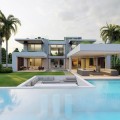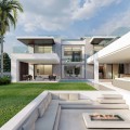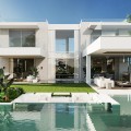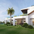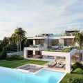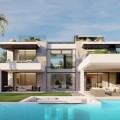 - New Development: Prices from €7,300,000 to €7,300,000. [Bedrooms: 7] [Bathrooms: 8] [Built size: 720m2]. This villa is in a private gated community. This splendid luxury villa project is set on a private plot of 1,550 m², located just a few minutes from Puerto Banús in the exclusive area of Altos de Puente Romano on the Golden Mile. A majestic entrance with a water feature welcomes you into this wonderful property. The large windows bring in abundant natural light throughout the villa and create a seamless connection between the indoors and the surrounding nature. Its wide entrance opens to a spacious and bright living-dining room with a fireplace and a functional luxury kitchen fully equipped with high-end finishes. From the living/dining area, you have access to a large, partly covered terrace featuring various lounge and seating areas, including a firepit area by the pool. The outdoor area also includes a bar and an outdoor kitchen, a large 70 m² heated saltwater pool, and lush gardens. The house offers 7 large bedrooms, all with en-suite bathrooms, including a studio apartment. There are 3 bedrooms in the basement with exterior windows and natural light, one bedroom on the ground floor, and 3 on the first floor. One of these is a very spacious master suite with a dressing room and a large en-suite bathroom with both a bath and a shower. An elevator connects all floors, from the basement to the solarium, where you will find multiple areas for sitting, dining, and sunbathing next to the plunge pool/jacuzzi. You can also enjoy a drink at the rooftop bar, which includes an outdoor kitchenette. There is an additional shower room on this level. Other features include: - Underfloor heating throughout the entire house - Hot/cold air conditioning controlled by an aerothermal system - A gas open fireplace - A large lift for 4 people - A sauna - A gym - A garage large enough for 3 cars Completion is expected by February 2026.