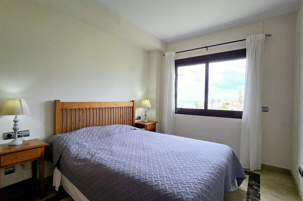 - Beachfront Apartment, La Duquesa — Costa del Sol. Superb investment as a holiday rental apartment. Reduced price! superb opportunity DIRECT SEA VIEWS A rare opportunity to own the only property currently for sale in this sought-after frontline beach complex, offering breathtaking sea views.. Direct access to the promenade and the beach, the Duquesa port and a full array of restaurants are 3 min away on foot! For golf enthusiasts , La Duquesa Golf is 3 min away and Doña Julia Golf course 7 min away. The famous Port of Sotogrande is 12 min awy. The beachfront complex offers excellent amenities, including a communal swimming pool, underground parking, and is ideally located just a short stroll from the lively restaurants, bars, and shops of Puerto de la Duquesa as well as the charming village of Castillo de la Duquesa. This beautiful third-floor apartment in La Duquesa features a bright southwest orientation, flooding the space with natural sunlight. It offers 2 spacious bedrooms and 2 full bathrooms (one ensuite with jaccuzy style bathtub), and comes fully air-conditioned, tastefully furnished, and equipped with a modern, fully fitted kitchen. The private southwest-facing terrace is the perfect spot to relax, with stunning views over the sea, A private storage room and under ground parking are included in the price.