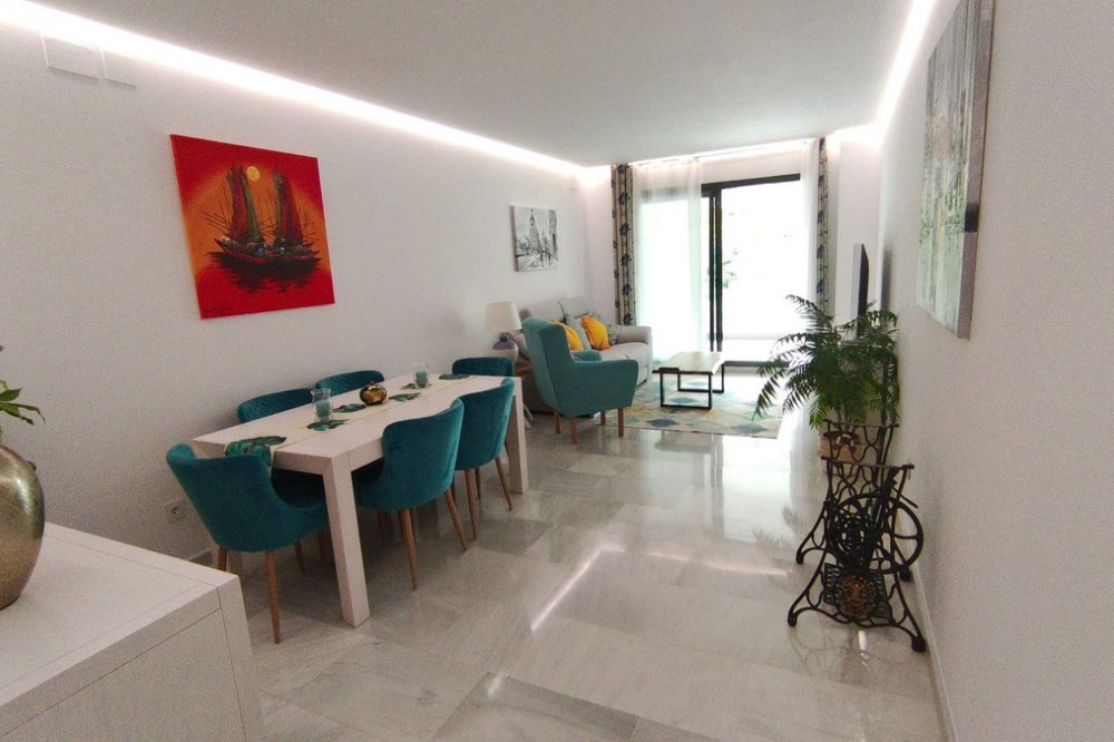 - Modern Ground Floor Apartment with Terrace and Pool in Marbella Discover this bright and spacious 160 m² (138 m² usable) ground floor apartment in a modern building with elevator. It features 3 bedrooms with built in wardrobes, 2 full bathrooms, a private terrace, and a balcony to enjoy the Mediterranean climate. Equipped with air conditioning and individual heating via a heat pump. The community offers a swimming pool and well maintained green areas. The exterior access is adapted for people with reduced mobility. Built in 2019 and delivered in 2020, this south facing apartment is in excellent condition, ideal for those seeking comfort and quality of life in Marbella. The property includes a parking space and a storage room. Contact us for more information or to schedule a visit. Don't miss the opportunity to live in your dream home in Marbella!