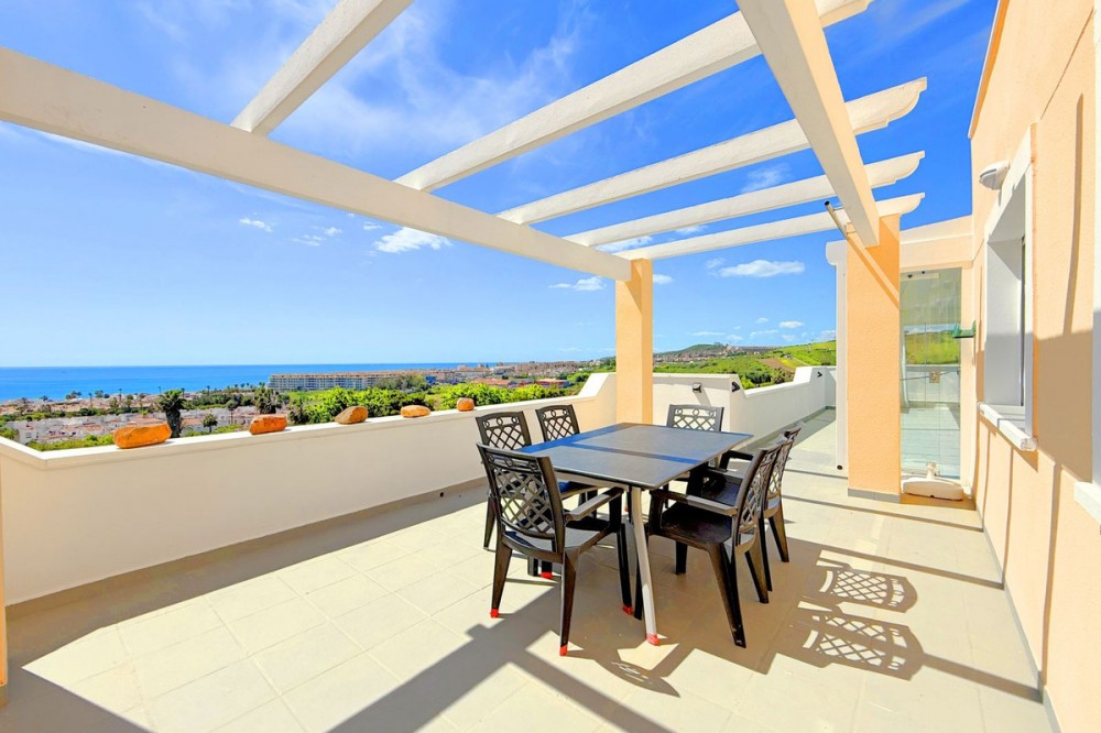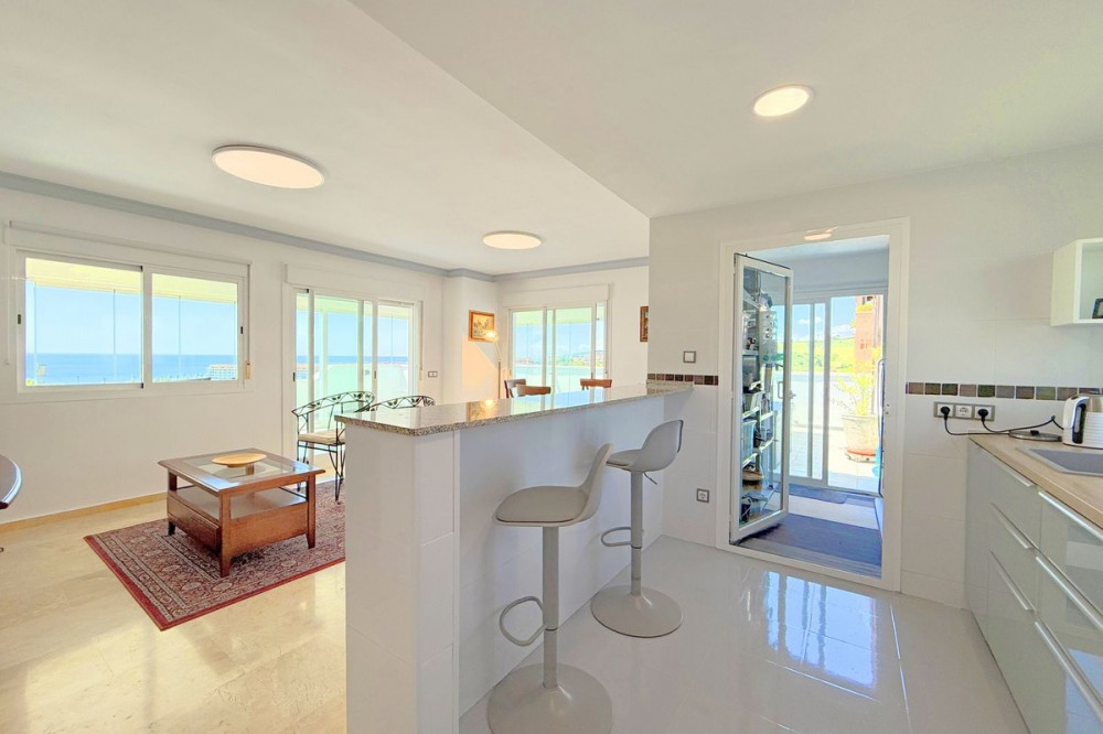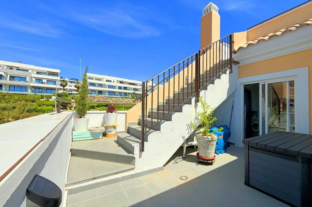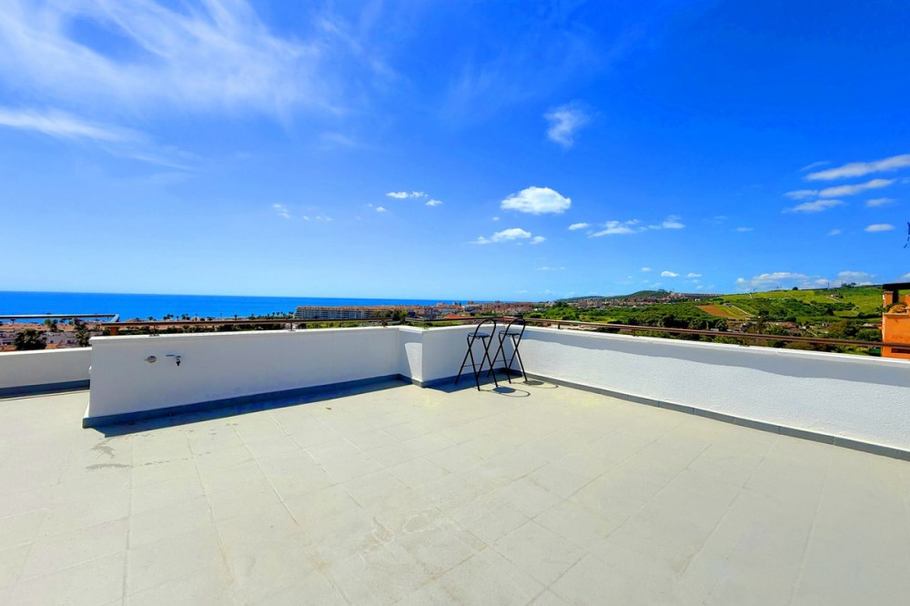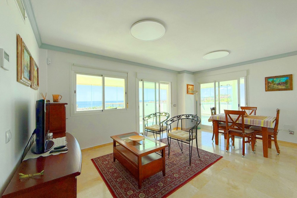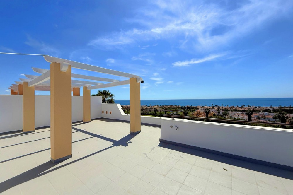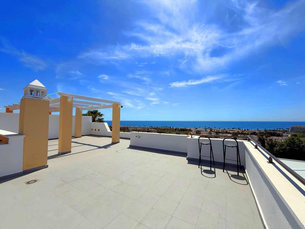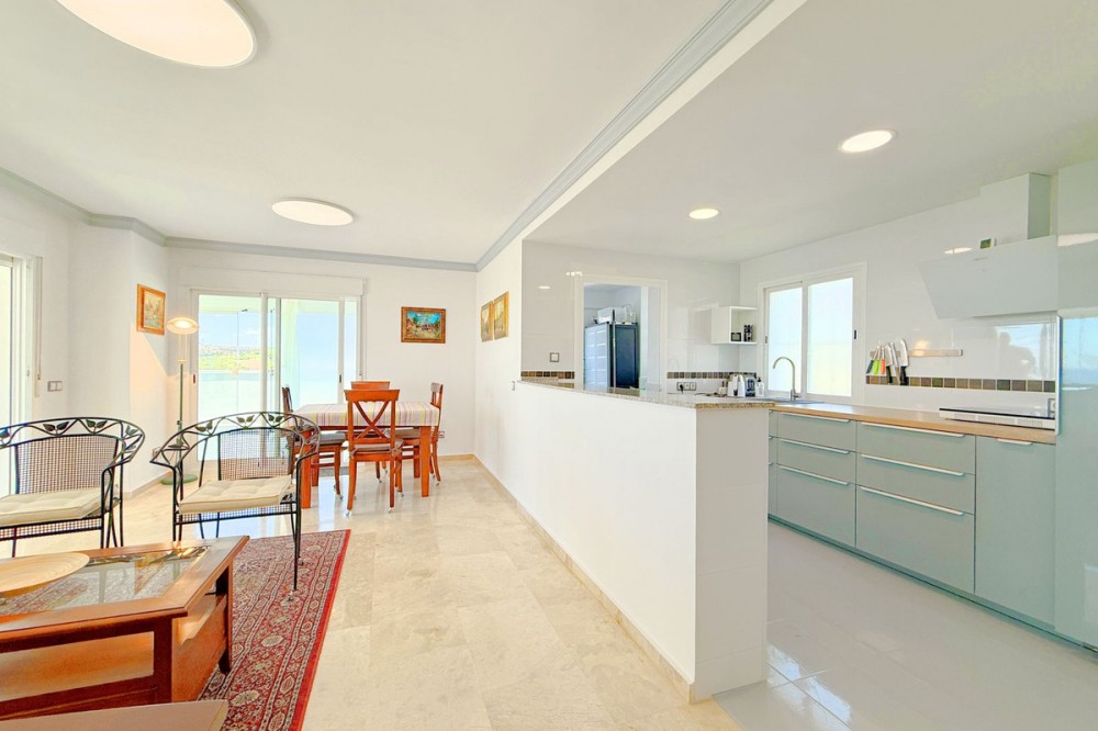 - PENTHOUSE WITH SPECTACULAR PANORAMIC VIEWS OF THE SEA AND GOLF COURSE Located in the El Mirador de Doña Julia development, this bright and cozy penthouse is set in a peaceful area surrounded by nature with excellent connections—ideal both as a permanent residence and as an investment. The property stands out for its stunning terrace with a glazed area and solarium, offering breathtaking panoramic views of the sea and the beautiful Doña Julia golf course. The home features a modern and functional layout with an open-concept living room and kitchen, two spacious bedrooms (one with an en-suite bathroom), a second full bathroom, and a separate laundry room. A garage space and storage room are also included. Thanks to its orientation and large windows, the property is flooded with natural light throughout the day, further enhancing its exclusive and comfortable character. This is a perfect opportunity for those seeking quality of life, endless views, and a peaceful setting without giving up proximity to all services. Don’t miss the chance to come and visit!