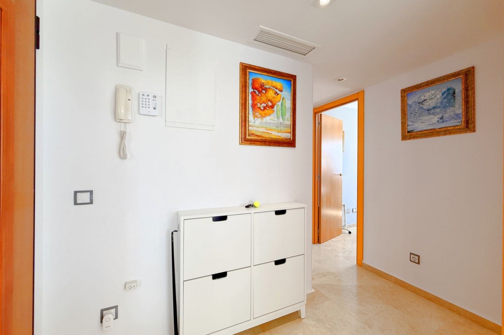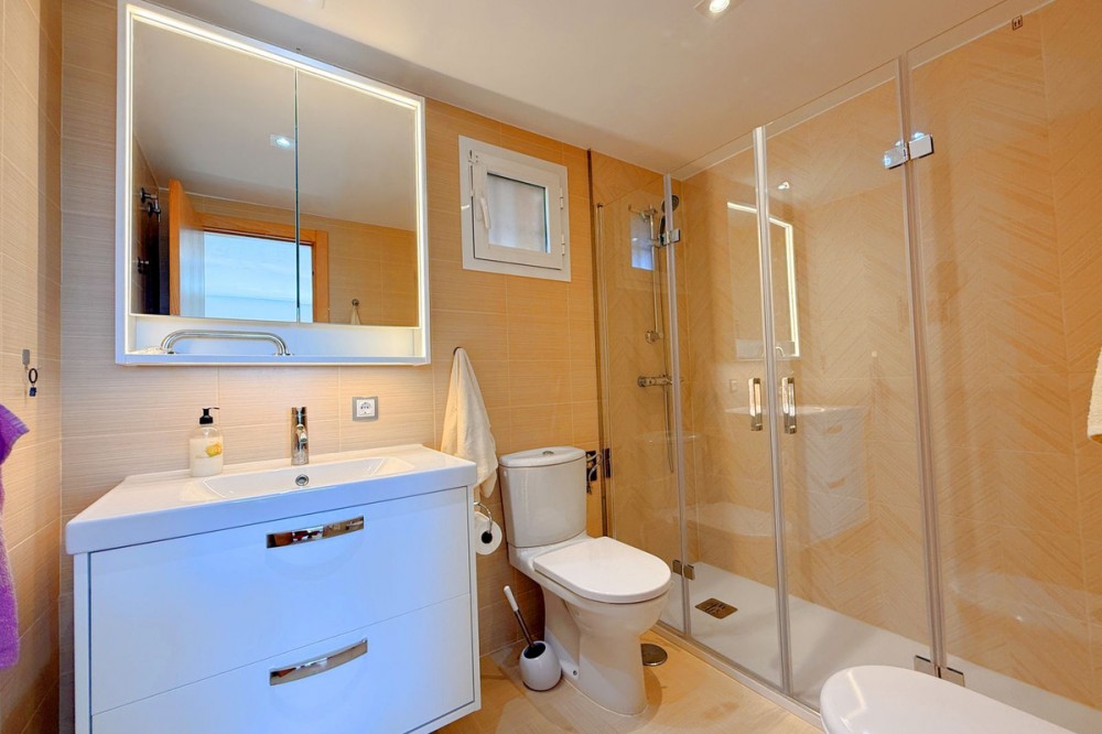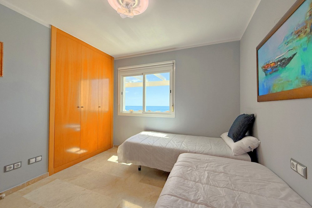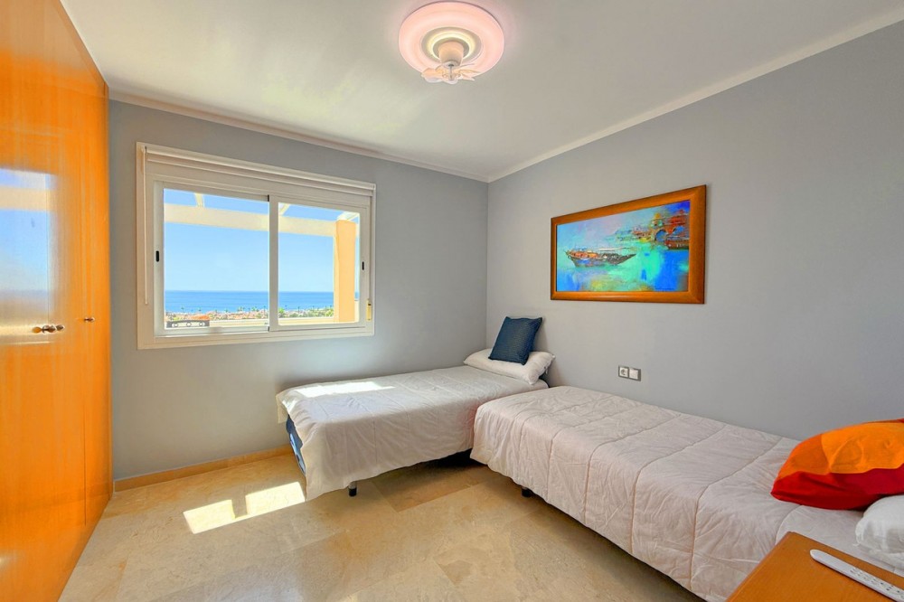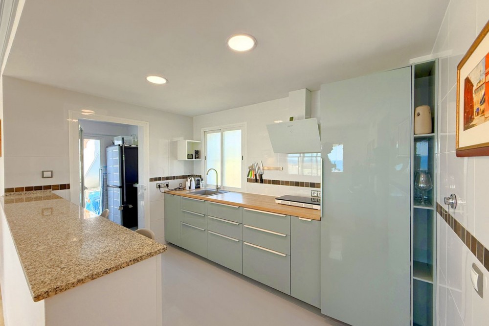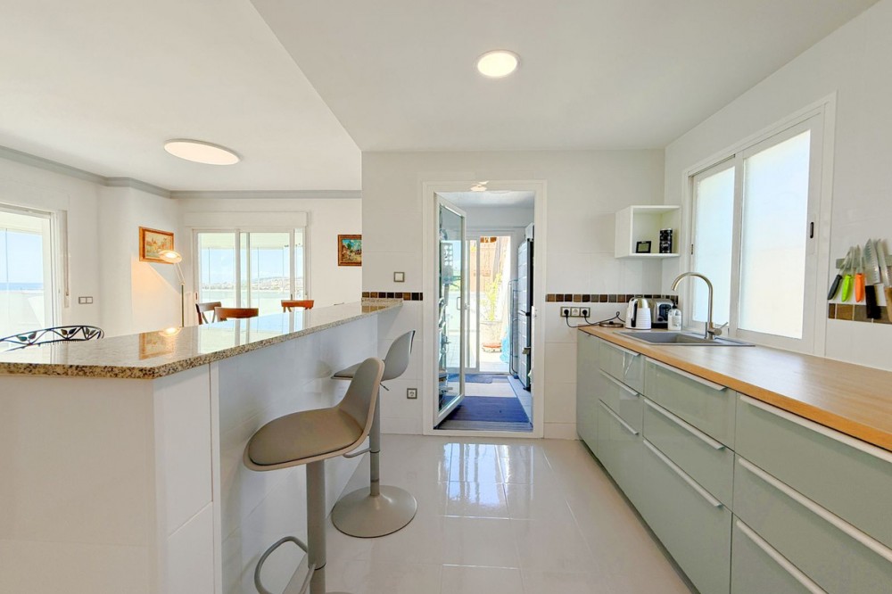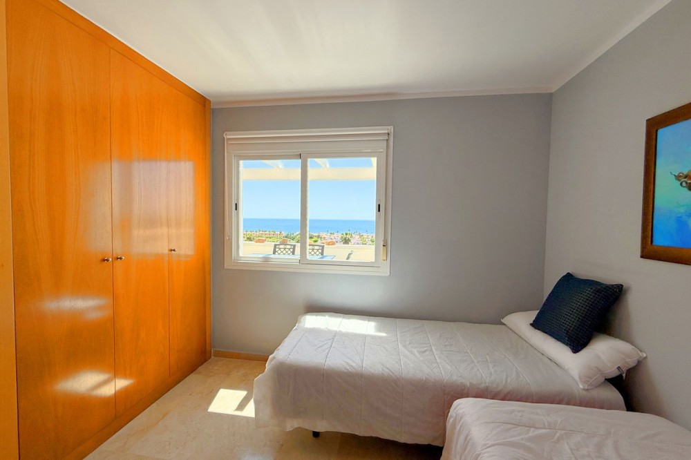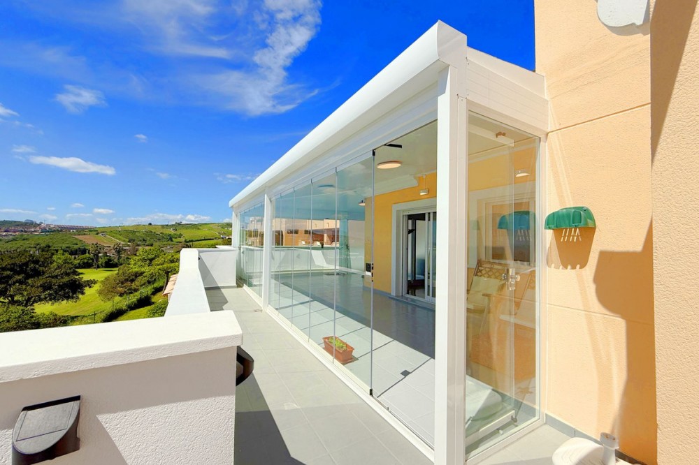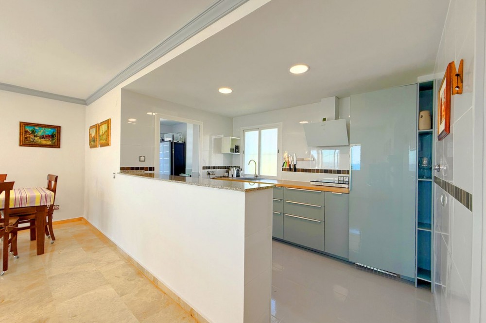 - PENTHOUSE WITH SPECTACULAR PANORAMIC VIEWS OF THE SEA AND GOLF COURSE Located in the El Mirador de Doña Julia development, this bright and cozy penthouse is set in a peaceful area surrounded by nature with excellent connections—ideal both as a permanent residence and as an investment. The property stands out for its stunning terrace with a glazed area and solarium, offering breathtaking panoramic views of the sea and the beautiful Doña Julia golf course. The home features a modern and functional layout with an open-concept living room and kitchen, two spacious bedrooms (one with an en-suite bathroom), a second full bathroom, and a separate laundry room. A garage space and storage room are also included. Thanks to its orientation and large windows, the property is flooded with natural light throughout the day, further enhancing its exclusive and comfortable character. This is a perfect opportunity for those seeking quality of life, endless views, and a peaceful setting without giving up proximity to all services. Don’t miss the chance to come and visit!