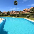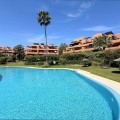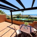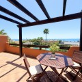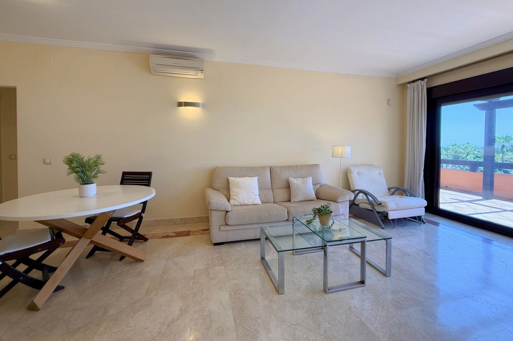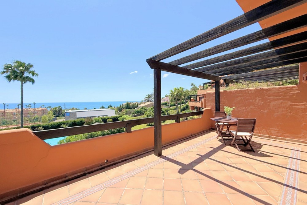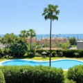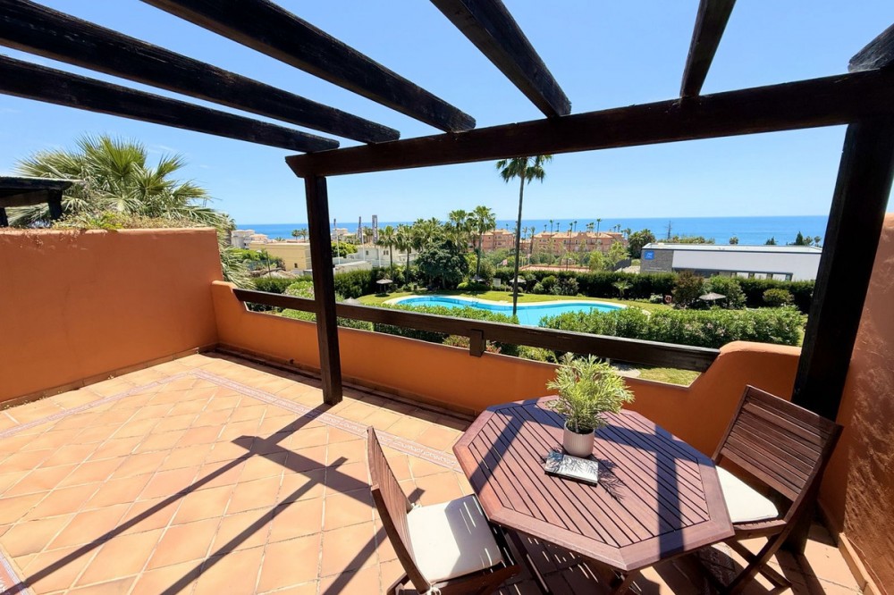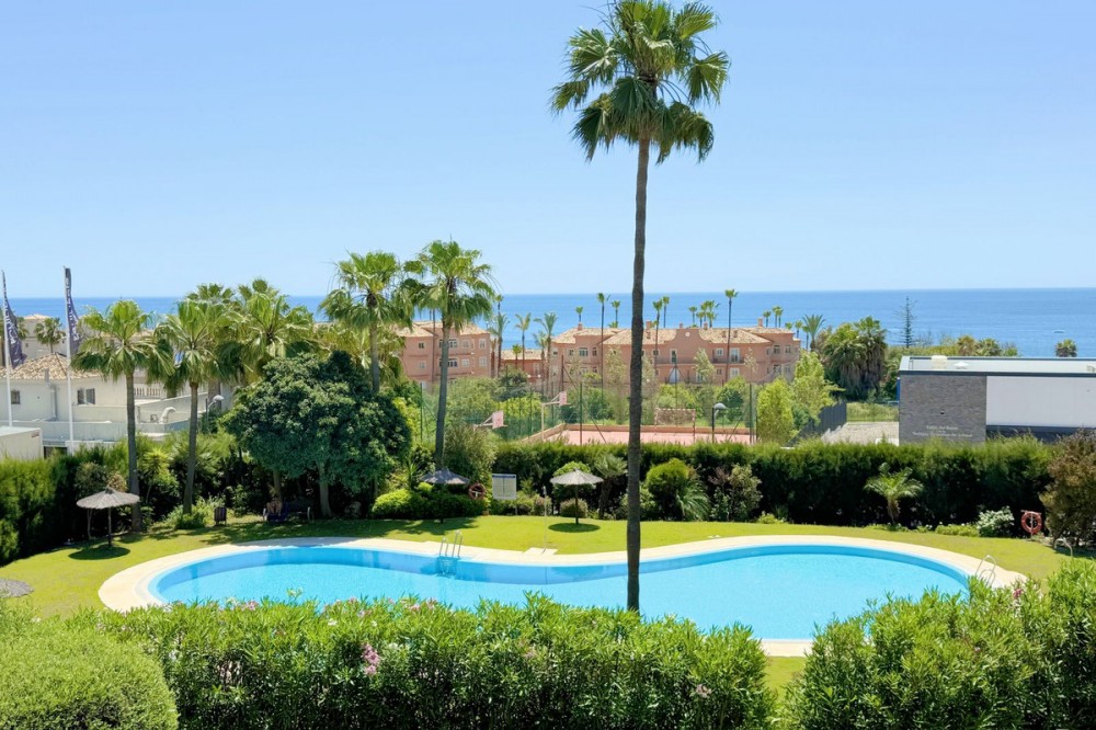 - Exclusive Apartment with Spacious Sunny Terrace and Sea Views on the Estepona Coast Located on the first floor, this magnificent property offers privacy, comfort, and an unbeatable natural setting. Just 200 meters from exceptional beaches, it is set within a beautifully maintained residential complex featuring lush tropical gardens and a large year-round swimming pool. Ideally situated between the ports of Estepona and La Duquesa—both just a 5-minute drive away—where you'll find a wide variety of shops, restaurants, entertainment options, and prestigious golf courses. The apartment features 2 bedrooms and 2 bathrooms (one of them en-suite), a spacious and bright southeast-facing living room with direct access to a generous terrace that offers panoramic views of the sea, the pool, and the gardens. The kitchen is fully equipped and includes a practical separate laundry area. In addition, the property comes with an underground parking space and a storage room. A charming home that has everything you need to enjoy the Mediterranean lifestyle.