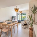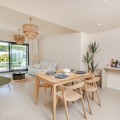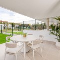 - Stylish Ground Floor Apartment with Spacious Garden in Aranya Estepona! Discover this beautiful 2-bedroom ground floor apartment in the new development Aranya Estepona, ideally located on the sought-after west side of Estepona. This modern and energy-efficient home offers both comfort and style, with a standout feature: a private garden of 132 m² – perfect for those who value outdoor living, sun, and privacy. The property features an open-plan living and dining area with abundant natural light, a fully equipped kitchen, two comfortable bedrooms, and two bathrooms (including one en-suite). Large sliding doors seamlessly connect the interior living space to the generous terrace and landscaped garden. Key features: •2 bedrooms, 2 bathrooms •Southwest orientation •132 m² private garden with direct access to communal areas •Fully equipped kitchen and air conditioning •Energy rating A •Includes parking space and storage room •Communal swimming pool, gym, and co-working area •Fully furnished Whether you’re looking for a permanent residence, a holiday home, or a solid rental investment, this apartment offers it all—just minutes from the beach and the charming center of Estepona.