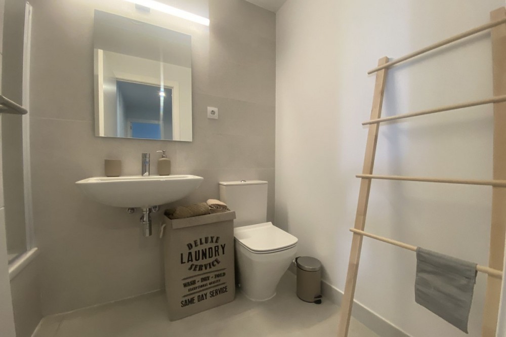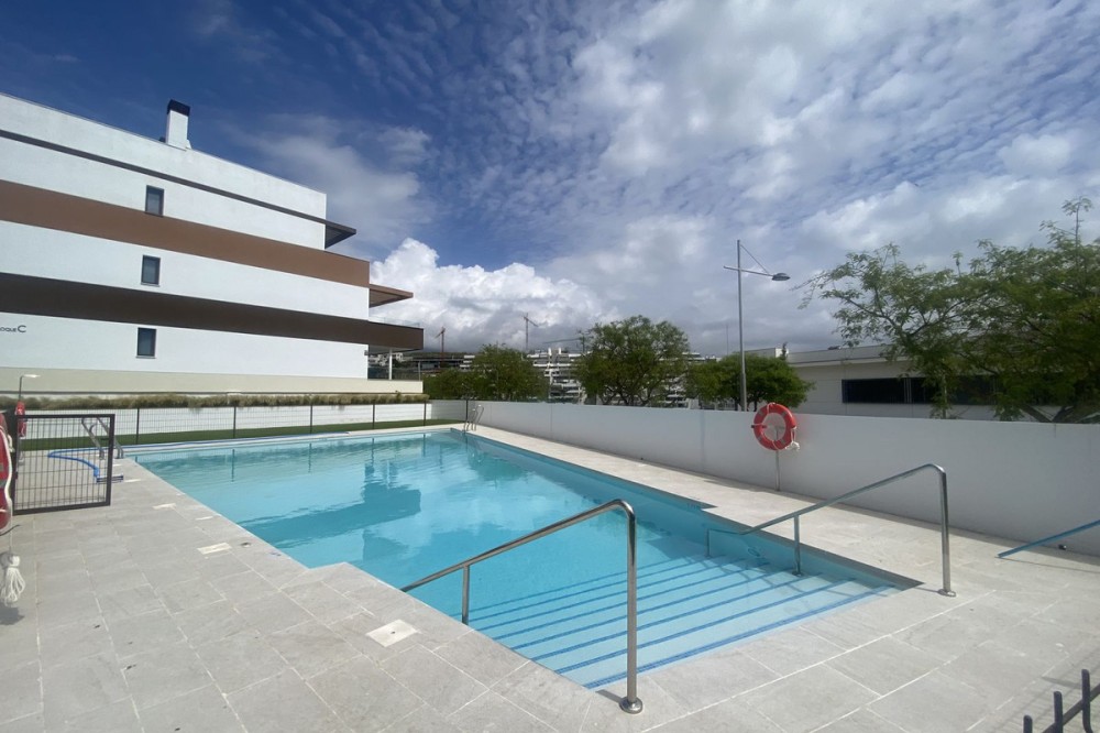 - Middle Floor Apartment, Estepona, Costa del Sol. 3 Bedrooms, 2 Bathrooms, Built 120 m², Terrace 20 m². Setting : Close To Shops, Close To Sea, Close To Schools. Orientation : East. Condition : Excellent. Pool : Communal. Climate Control : Air Conditioning. Views : Sea, Mountain, Urban. Features : Covered Terrace, Lift, Fitted Wardrobes, Near Transport, Private Terrace, Gym, Ensuite Bathroom, Access for people with reduced mobility, Double Glazing. Furniture : Fully Furnished. Kitchen : Fully Fitted. Garden : Communal. Parking : Underground.