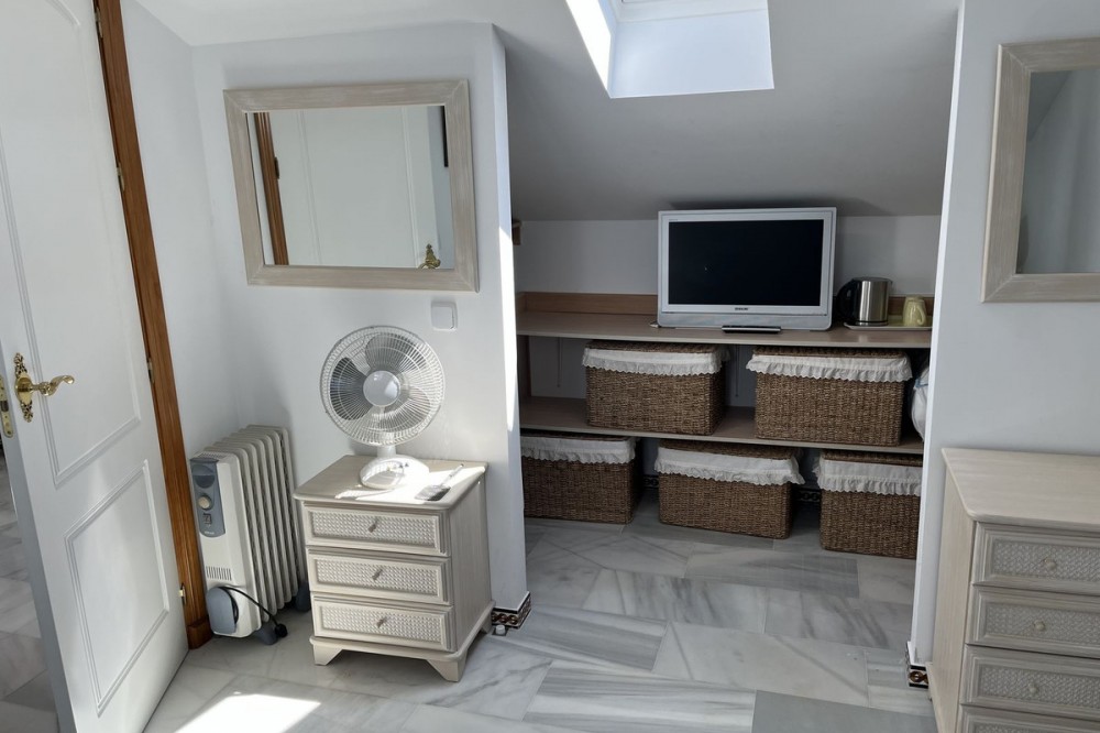 - Welcome to this unique property situated in one of the most be beautiful complex on the Costa del Sol, Puebla Aida. As you walk in you will find a landing leading onto the kitchen and a large living area with two terraces. On this same landing there are three bedrooms and two bathrooms. On the upstairs landing there are two bedrooms and one bathroom all with natural light with an independent boiler and electrics. The complex consists of 4 swimming pools, three all near to this apartment, cobbled alleyways, plazas and fountains. A community built in 20 years with 300 apartments all different. This property is the only 5 bedroom in the entire complex. Penthouse Duplex, Mijas Golf, Costa del Sol. 5 Bedrooms, 3 Bathrooms, Built 142 m², Terrace 12 m². Setting : Close To Golf, Close To Schools, Urbanisation. Orientation : North East, South East. Condition : Excellent. Pool : Communal, Children`s Pool. Climate Control : Air Conditioning. Views : Panoramic, Garden. Features : Covered Terrace, Fitted Wardrobes, Near Transport, Private Terrace, Satellite TV, WiFi, Ensuite Bathroom, Marble Flooring, Double Glazing, Courtesy Bus, Fiber Optic. Furniture : Fully Furnished. Kitchen : Fully Fitted. Garden : Communal, Landscaped. Security : Electric Blinds, Entry Phone, 24 Hour Security. Parking : Open, Street, Communal. Utilities : Electricity, Drinkable Water. Category : Golf, Holiday Homes, Investment, Resale.