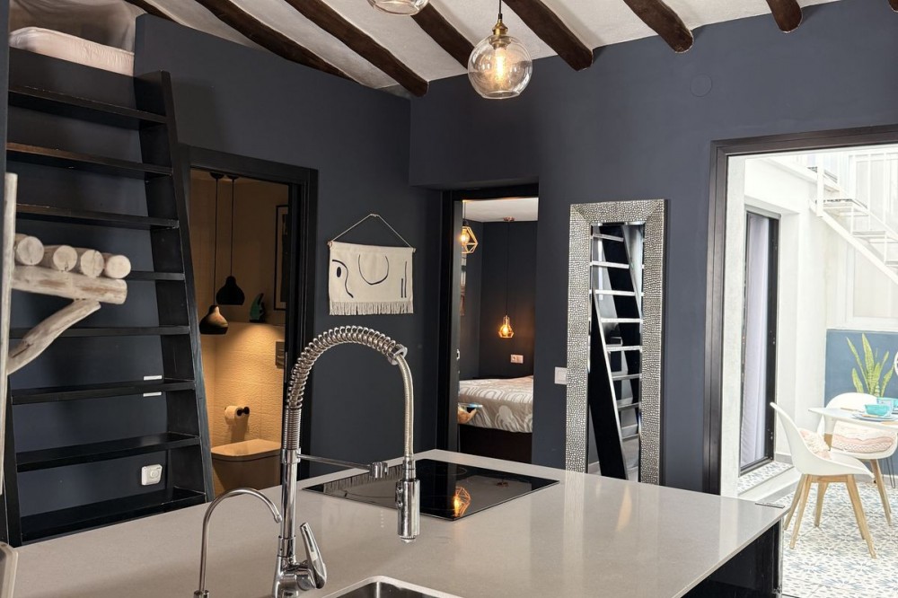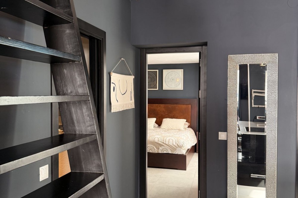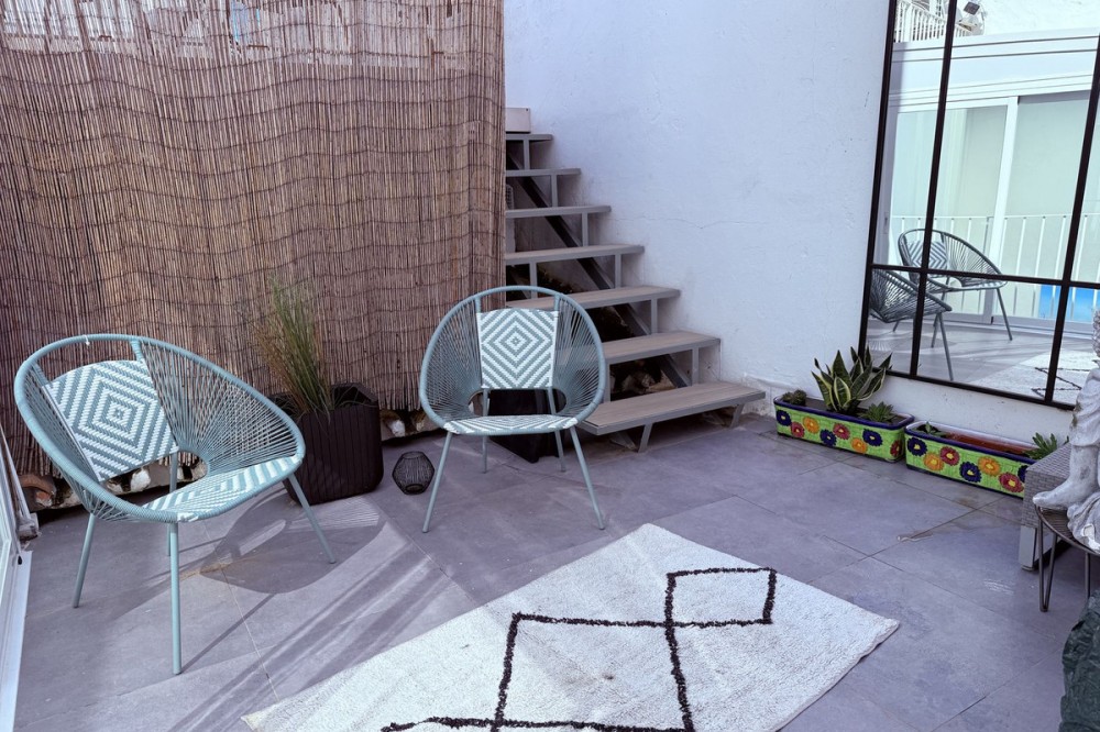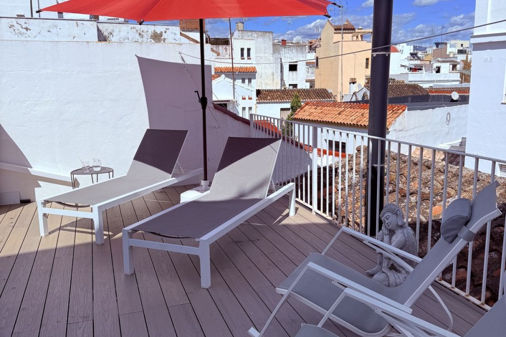 - UNIQUE UPPER FLOOR APARTMENT IN ESTEPONAS OLD TOWN Situated in the heart of Estepona's historic centre, this enchanting penthouse apartment combines character and modern design. Just a short stroll from the beach, marina, and local amenities, it offers the perfect blend of comfort and vibrant culture. The apartment features an open living concept with dramatic double-height ceilings, original wood beams, and a cozy wood-burning stove. Every detail has been carefully considered in the stunning furnishings and decoration. It includes a spacious double bedroom, a double loft style bed for guests, and a full bathroom. Three individual outdoor terraces, totaling 75 m², provide ample space for al fresco dining, sunbathing, or rooftop yoga. Estepona Old Town's cobblestone streets, vibrant murals, and historic architecture create a unique and lively atmosphere. This penthouse has a touristic license code already, which is rare to find, so it is not only a dream home but also a sound investment opportunity. It comes key-ready, allowing you to start enjoying it immediately. Contact us today to learn more and arrange a viewing.