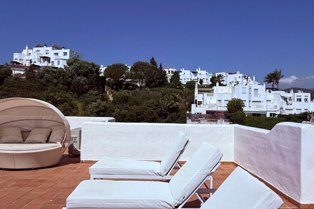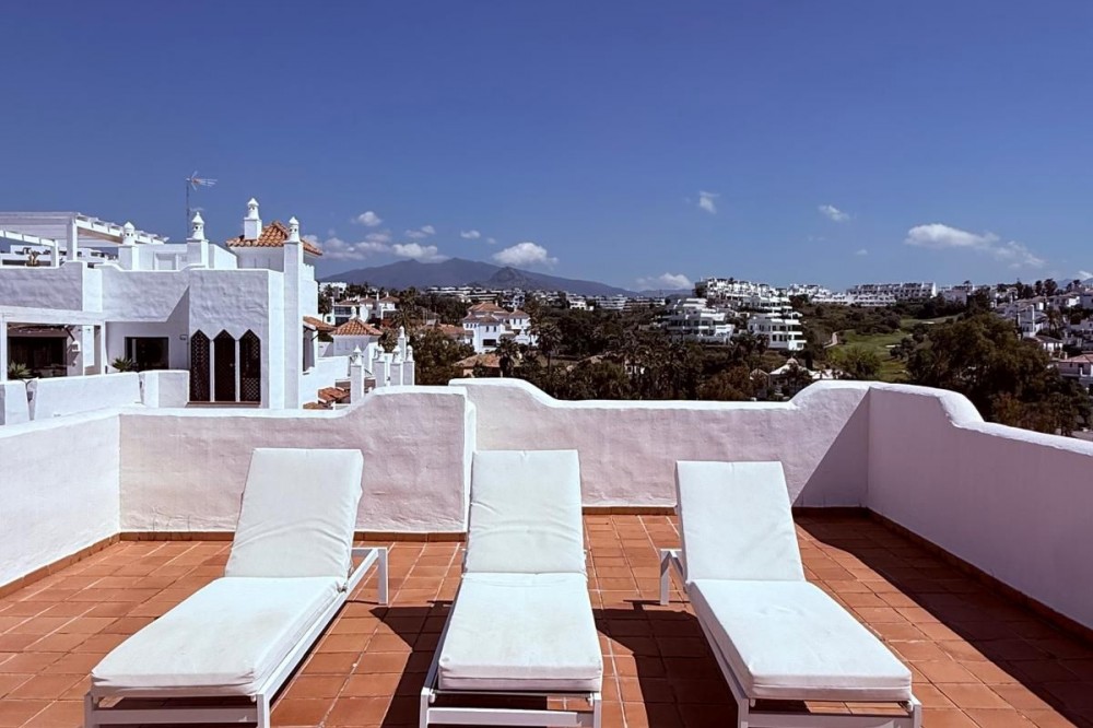 - Seize the Ultimate Coastal Lifestyle! Step into paradise with this stunning 3-bedroom, 2-bathroom duplex penthouse in the prestigious Golf Hills urbanisation, perfectly perched between the rolling fairways of La Resina Golf & Country Club and the sparkling Mediterranean Sea. This is more than a home—it’s a vibrant, sun-soaked escape designed for those who crave luxury, comfort, and the best of Costa del Sol living! Unwind on your expansive terrace with panoramic golf course views. Why You’ll Fall in Love Move-In Ready Perfection: Fully furnished with high-end, contemporary décor—just bring your suitcase and start living the dream! Light-Filled & Spacious: Bright, open-plan living and dining areas flow seamlessly onto two massive terraces, ideal for morning coffees, al fresco dinners, or sunset cocktails. Master Suite Oasis: The generous master bedroom boasts private terrace access, perfect for soaking in the serene golf course vistas. Sunshine All Day: Wraparound terraces capture the Costa del Sol’s golden light from dawn to dusk. Effortless Layout: Spread over two levels, this duplex offers three spacious double bedrooms and two modern bathrooms, blending style and functionality. Elegant, modern interiors ready for you to call home. Live the Golf Hills Lifestyle Nestled in the exclusive Golf Hills development, this penthouse is your gateway to the best of Estepona and beyond: Prime Location: Minutes from Estepona’s golden beaches, the chic Laguna Village, and the vibrant charm of Marbella and Estepona’s Old Town. Golfer’s Paradise: Adjacent to the prestigious La Resina Golf & Country Club for endless days on the green. Resort-Style Amenities: Enjoy a gated community with lush gardens, a sparkling communal pool, a children’s play area, underground parking, and secure storage. Perfect for Any Purpose: Whether it’s a luxury holiday home, a savvy investment, or your forever residence, this penthouse ticks every box. Dive into relaxation with Golf Hills’ stunning amenities. Don’t Miss Out! This is your chance to own a slice of Costa del Sol heaven. With sun, style, and space in abundance, this penthouse is ready to make your dreams a reality. Contact us NOW to book your exclusive viewing or virtual tour. Your new life in paradise is just a call away!