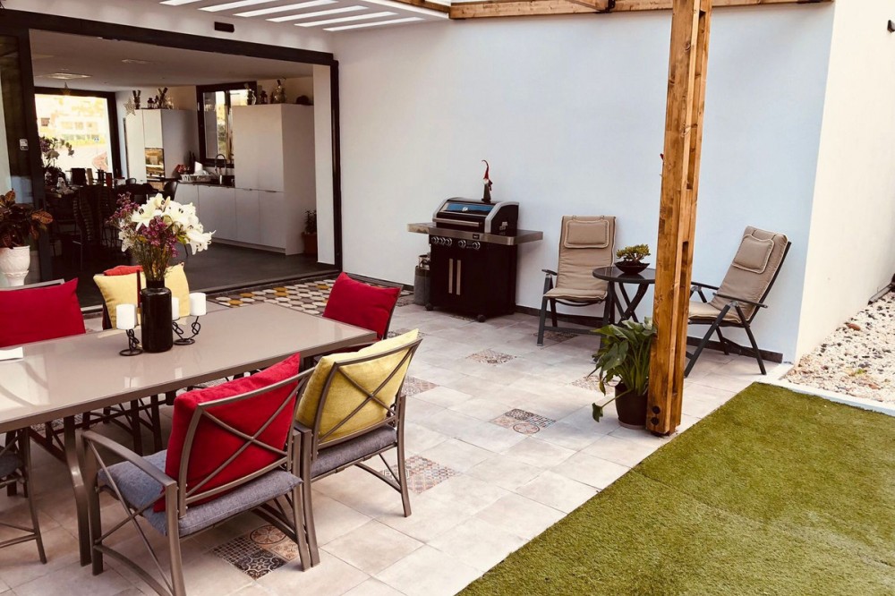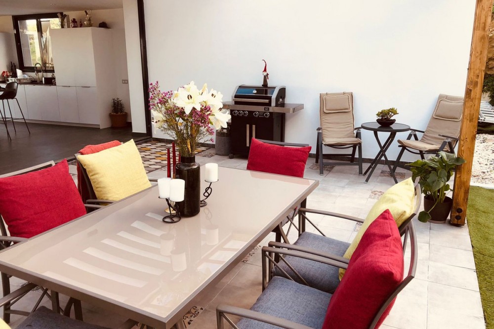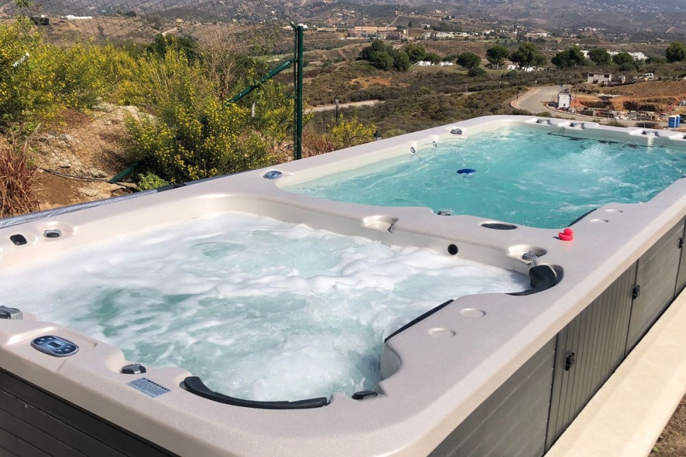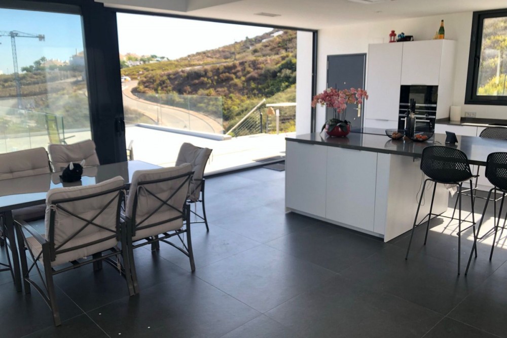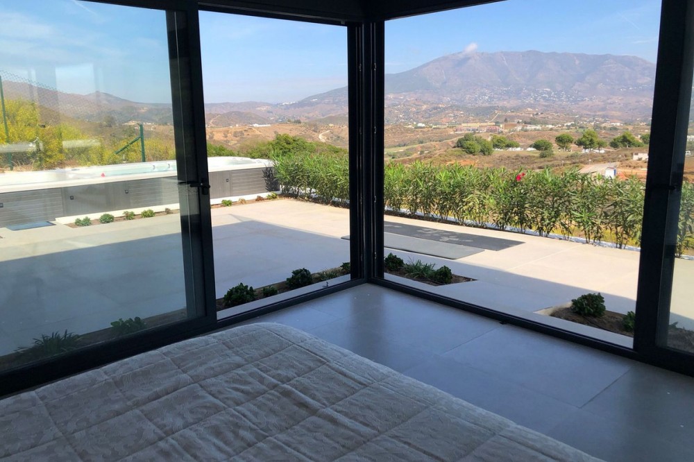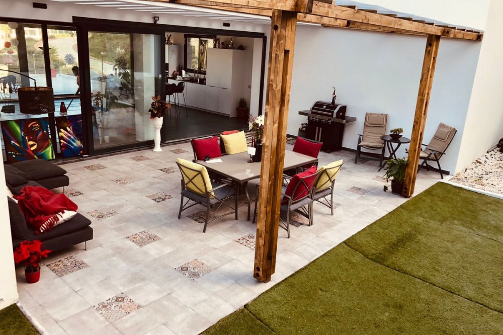 - Elegant Four-Bedroom Villa in La Cala Golf Golf, Mijas Costa. Situated in the prestigious area of La Cala Golf in Mijas Costa, Malaga, this exquisite villa presents a harmonious blend of luxury and comfort. Boasting a spacious built area of 312m² on an expansive plot of 1,836m², this property is a true gem for those seeking a serene yet conveniently located residence. The villa features four generously sized bedrooms, including one with an en-suite bathroom, and a total of three bathrooms, ensuring ample space and privacy for family and guests alike. The villa’s interior is thoughtfully designed to cater to modern living. A fully fitted kitchen equipped with high-quality appliances is complemented by a utility room and a separate laundry area, providing practical solutions for daily needs. The living room, adorned with a fireplace, offers a cosy retreat, while the dining room is perfect for hosting gatherings. Additional features such as porcelain floors, fitted wardrobes, and individual air conditioning units in each room enhance the comfort and functionality of the home. The property is equipped with advanced amenities including electric blinds, video entrance, and fibre optic internet, ensuring convenience and security. Outdoor living is equally impressive, with a private garden and jacuzzy with a portable pool but there are 2 projects to build a proper 15m x 4m swimming pool, and a terrace area spanning 41m² that offers panoramic views of the surrounding mountains and countryside. The property also includes a covered terrace, a ground floor patio, and an uncovered terrace, providing multiple spaces for relaxation and entertainment. A private garage adds to the convenience, while the presence of a barbeque and jacuzzi further elevates the outdoor experience. The villa’s location is ideal, being close to amenities such as shops, schools, and playgrounds, as well as proximity to the beach, golf courses, and the town centre. This property is in excellent condition and features additional highlights like security shutters, glass doors, and a storage room. Pets are welcome, making it a perfect choice for families. With its combination of elegance, modern amenities, and a prime location, this villa in Mijas Golf offers a unique opportunity to enjoy a luxurious lifestyle amidst stunning natural surroundings