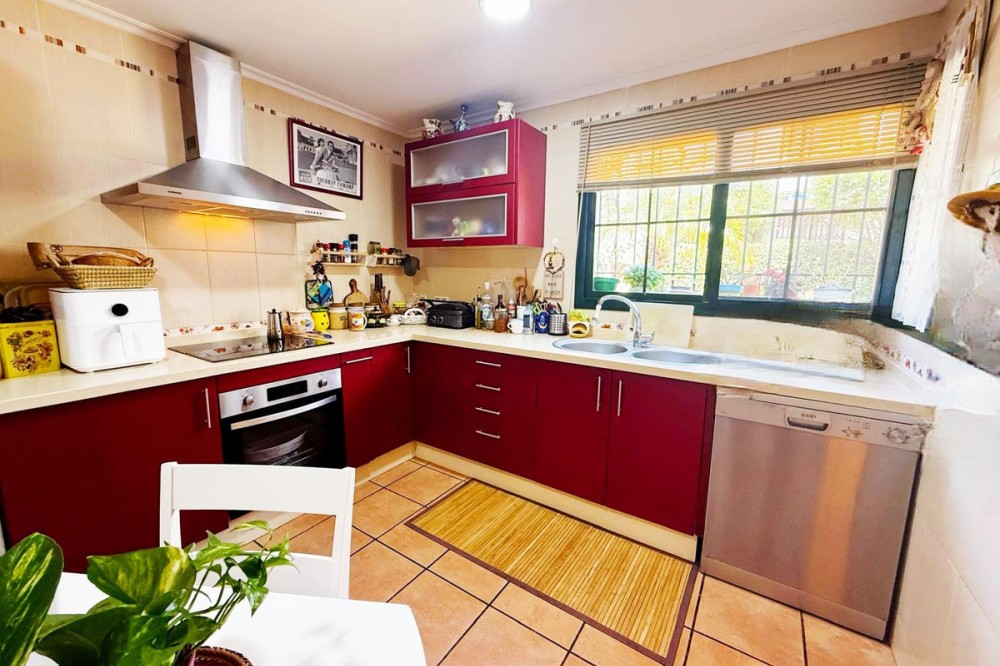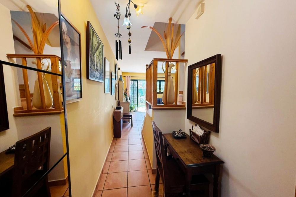 - Charming Andalusian style townhouse in Mijas Golf! Located in a peaceful and exclusive setting, it combines Andalusian style charm with modern comfort. Situated in a well-kept urbanization in Mijas Golf, the house stands out for its traditional architecture with contemporary touches, high ceilings and large windows that flood the spaces with natural light. Upstairs, the sleeping area has three large bedrooms, two bathrooms and an attic room. On the ground floor, there is a spacious living room with high ceilings and large windows that give direct access to the private terrace, perfect for enjoying the Mediterranean climate. The separate kitchen connects to a guest bathroom. This house is not just a space, it is a way of living between the golf, the sea and the serenity of Andalusia. Whether you want to use it as a permanent residence, second home or holiday investment. Only a few minutes drive to all amenities, 10 minutes to Fuengirola, 12 minutes to La Cala de Mijas, 25 minutes to Malaga airport.