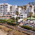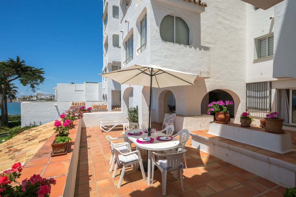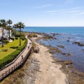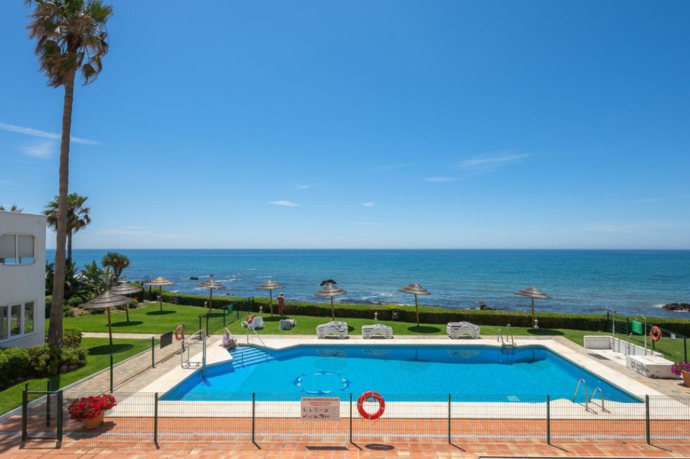 - Imagine waking up metres away from the sea in a Front-line Beach apartment. This spacious 3-bedroom, 2-bathroom gem is designed for comfort and convenience, featuring a fully fitted kitchen that flows seamlessly into the open-plan living and dining area. You'll appreciate the additional store room and utility room that come with the property. Step outside to a private rear patio, perfect for creating a secure play area for children or a serene garden retreat, basking in the afternoon sun. With three bedrooms, including one with an en-suite bathroom and an extra bathroom for the other two bedrooms, comfort is at your fingertips. For added peace of mind, the apartment is equipped with an alarm system. Just beyond the French doors in the lounge, a spacious open patio area awaits where you can relax with a glass of wine while soaking in the sun and admiring the stunning views of the sea and beach, please note that this is located in a communal area, however no one else ever uses it.. The beautifully landscaped garden surrounding the pool creates a tranquil escape, complete with sunbeds for ultimate relaxation. This gated complex offers parking, along with two communal swimming pools and a tennis court. The adjacent Garden Bar serves delicious food and drinks, and with the boardwalk at your doorstep, you can stroll to La Cala or head to Max Beach, which is just a few minutes’ walk away. What’s more, this apartment is the largest in the complex and has an impressive rental history, fetching €300 a night during high season. If you’re seeking an investment opportunity, this property offers year-round holiday let potential thanks to the pools year-round accessibility. Don't miss out on this incredible chance to own a slice of beachside paradise!