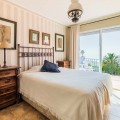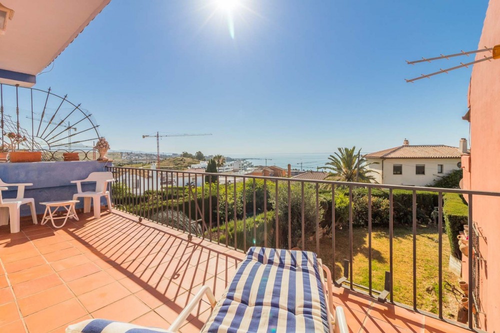 - Charming townhouse with sea views in the exclusive urbanization Don Pedro, Estepona. Located in a quiet and well-kept urbanization just five minutes drive from the center of Estepona and its beaches, this bright townhouse offers a perfect combination of comfort, style and panoramic views of the Mediterranean Sea and the marina of the city. The house is distributed on two floors. On the first floor, we are greeted by an elegant entrance hall with guest toilet. The kitchen, fully equipped, is presented with a practical American bar open to the spacious living-dining room, which has a fireplace and a pleasant southeast orientation that ensures natural light throughout the day. From the living room there is access to a large terrace ideal for outdoor dining, as well as a charming private garden with direct access to the communal pool. On the upper floor there are three bedrooms. The master bedroom has an en-suite bathroom, while the other two share a second full bathroom. Two of the bedrooms have direct access to a large terrace with balcony, from where you can enjoy stunning open views to the sea and the port of Estepona. The property includes two outdoor parking spaces and is located just two minutes drive from supermarkets, schools, restaurants and with excellent connection to the A7. Ideal as a permanent residence, vacation home or investment, this property combines the tranquility of a residential area with the proximity to all services.