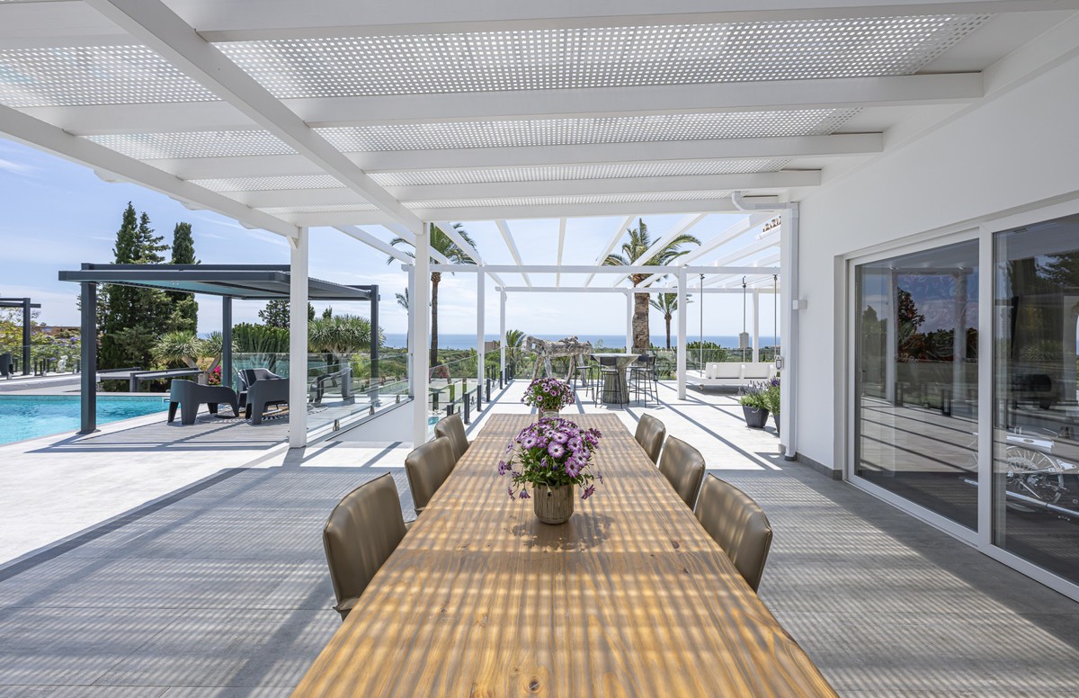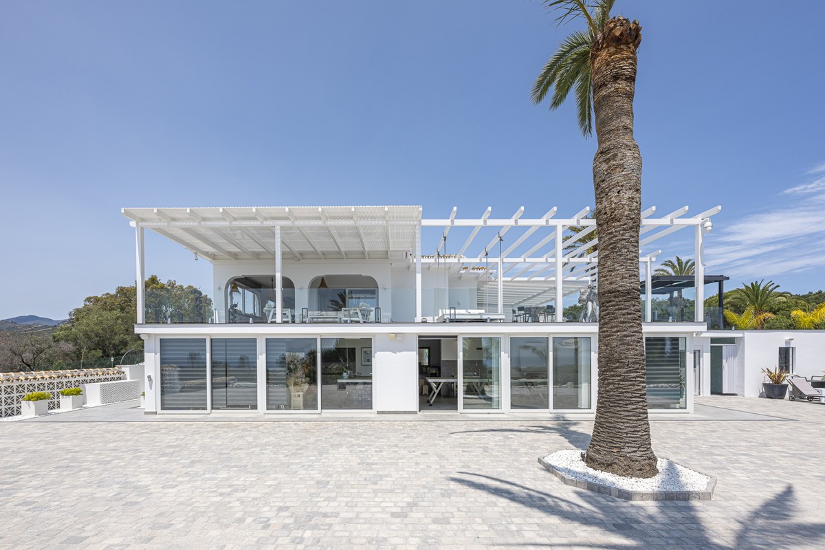 - Set on two generous plots totalling 6.128 m², this private and peaceful luxury villa offers a rare blend of modern Mediterranean style and natural beauty in Elviria, Marbella East. Surrounded by its own unspoilt land on one side, the property enjoys exceptional privacy, space and uninterrupted views. The home is situated on one level, a unique find in this sought-after area, offering comfort and easy living. Just minutes from a local commercial centre and the A-7 coast road, the location is ideal for reaching Marbella, La Cañada shopping centre, international schools and the coast. Golf courses, hiking trails, and water sports are also nearby, adding to the appeal of the lifestyle. Inside, the villa feels bright, open and welcoming. The heart of the home is the spacious living room, designed with floor-to-ceiling glass doors that open directly onto the terrace, framing fantastic views of the sea and surrounding greenery. Natural light floods in from all angles, creating a warm and inviting atmosphere. The contemporary kitchen with breakfast area flows naturally into this space, making it ideal for family life and entertaining. There are four deluxe bedrooms, including a main suite with indoor and outdoor showers. What makes this property stand out are the exceptional outdoor areas. The beautifully maintained garden surrounds the home, filled with quiet corners perfect for reading or relaxing. The terraces are extensive and varied, offering postcard-perfect views across the hills and out to the sea - the kind of views that never get old. Two stunning swimming pools enhance the appeal: one located at the main living level for easy access and another on a lower terrace, offering breathtaking views. Chill-out zones are dotted throughout the grounds, including a BBQ area, two outdoor dining spaces, a bar and both shaded and sunny spots to enjoy throughout the day. The villa’s lower pool level features a self-contained apartment with private access, offering three bedrooms, 2 bathrooms, and a shower, ideal for guests, extended family, or home office. Other features include solar panels with potential for expansion, underfloor heating, three garages, and a spacious driveway for up to five cars. Elviria is one of Marbella East's most desirable neighbourhoods, known for its natural beauty, established infrastructure and international community. Top schools, including the English International College and the German School, are close by. You'll also find shops, restaurants, sports clubs and some of the area's best beaches just minutes away. There is also potential to build a second home on the land without compromising the sea views, making this an even more versatile investment. Whether you're looking for a stylish family home, a private retreat or a prime Costa del Sol property with space to grow, this villa delivers on every level. All property information provided comes directly from the owner. The listing agent acts solely as an intermediary and cannot guarantee the accuracy or completeness of these details. Prospective buyers are encouraged to conduct their own due diligence to verify important information. Thank you for your understanding.