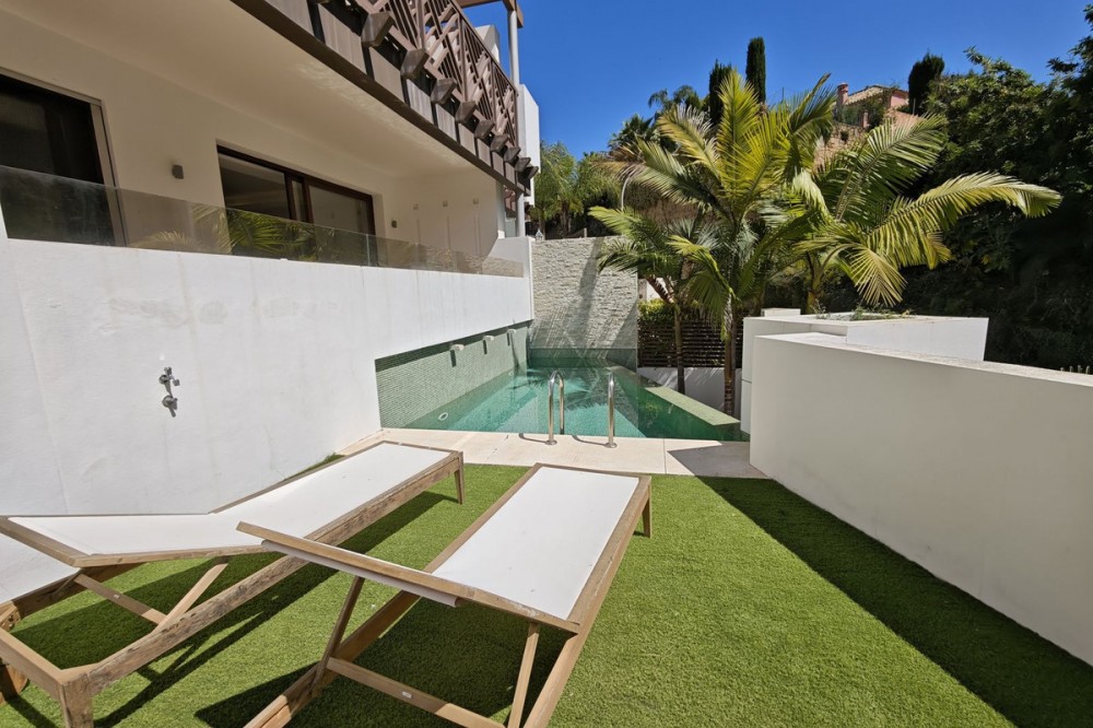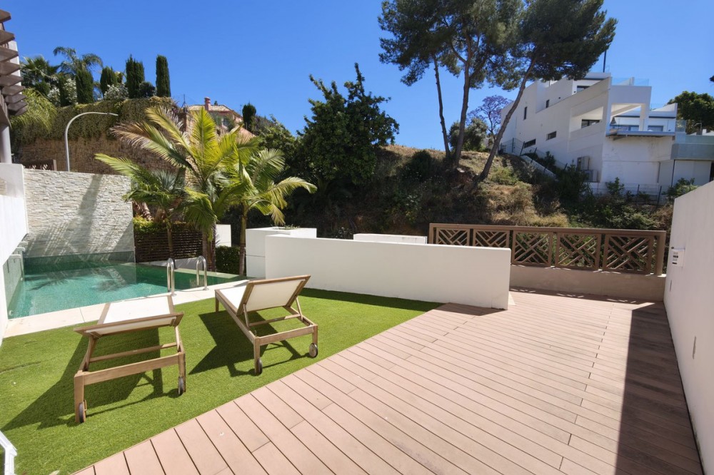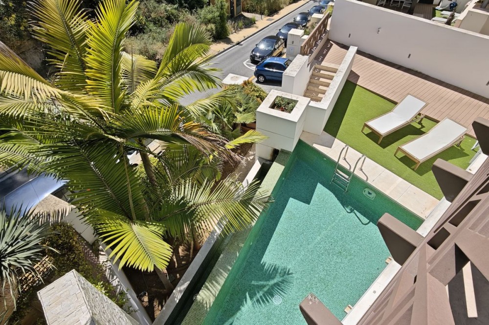 - A Unique Gem in the Heart of Marbella Discover an exclusive urban oasis with Residencial Paraíba, an ambitious luxury project consisting of five unique homes: four semi-detached houses and one detached villa, each with its own private pool. This residential complex is located within a fully gated community, designed to offer maximum privacy, comfort, and style. Residencial Paraíba stands out for its contemporary design, high-quality materials, and attention to detail, creating a unique space where luxury and tranquility go hand in hand. The villa boasts a total built area of 436.06 m², with an upper floor of 71.40 m² and a ground floor of 115.50 m². It also includes a basement with a garage of 110.10 m², a garden with a 29.32 m² pool, and spacious terraces and porches totaling 139.05 m². Its layout offers a spacious and functional living environment. Among its main features, Residencial Paraíba offers 24-hour security, a private pool, hot/cold air conditioning, home automation, underfloor heating, security shutters, and an alarm system. The construction is of high quality and offers mountain views, with sea views from the upstairs terrace. Located in a private and prestigious area, it is an exclusive property for those seeking the utmost comfort and privacy. There is generous parking for two vehicles and a spacious storage room. For added convenience, the villa includes a elevator. Its location in the heart of Marbella provides easy access to all services and amenities. The beach, restaurants, shops, and cafés are all within walking distance. In just 5 to 10 minutes by car, you can reach prestigious golf courses and various entertainment areas. In addition, there is easy access to public transport, making it easy to get around the city. Residencial Paraíba perfectly combines comfort, luxury, and location. It is a unique opportunity to enjoy an unparalleled lifestyle in one of Marbella’s most exclusive areas. Don’t miss out on this magnificent opportunity. If you have any questions, feel free to contact us — we will be delighted to assist you.
