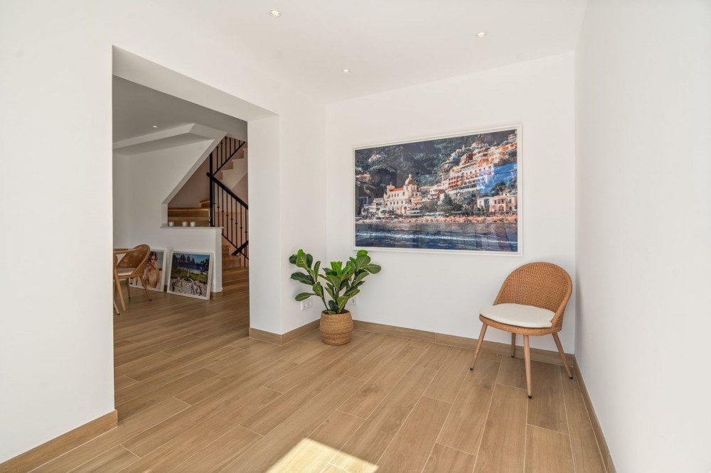 - Welcome to a newly renovated townhouse located just a few meters from the beaches of San Pedro. The house is surrounded by schools, shops, sports facilities, restaurants, and all essential services. It also enjoys excellent connections to the centre of Marbella and Puerto Banus. It's a charming townhouse located in the prestigious Sector One of the “Los Ángeles V” residential complex – a peaceful, well-maintained community, walking distance to the beach. This home perfectly balances comfort, space, and quality of life, making it an ideal residence for families seeking a complete and refined lifestyle on the Costa del Sol. With it's good layout and location it's also ideal for renting. With a total built area of 174 m² of usable space, the property is thoughtfully distributed across three levels, offering bright and generous living areas throughout. The basement includes a cosy games room, a storage space, and direct access from the private underground parking – a practical and secure feature for everyday convenience. On the main floor, natural light fills the spacious living and dining area, which opens onto a lovely private terrace/garden of 34 m² – a perfect outdoor space to enjoy the Mediterranean climate. The independent new built kitchen has direct access to the living and dining room, a stylish bathroom with shower and laundry. Upstairs, you’ll find three comfortable bedrooms, including a master suite with its own private bathroom and access to a sunlit terrace. A second full bathroom serves the remaining bedrooms. The property also includes a private underground parking space located conveniently next to the basement entrance, offering secure and direct access to the home. Welcome to enjoy an amazing house or investment for the money!