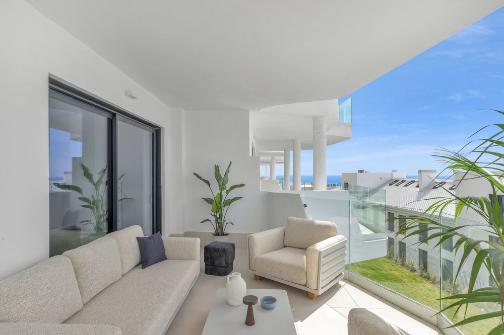 - Middle Floor Apartment, Fuengirola, Costa del Sol. 3 Bedrooms, 3 Bathrooms, Built 93 m², Terrace 26 m². Price includes full Furniture, value 30,000€ Setting : Urbanisation. Orientation : South. Condition : Excellent, New Construction. Pool : Communal. Climate Control : Air Conditioning. Views : Sea. Features : Lift, Fitted Wardrobes, Private Terrace, Storage Room, Double Glazing. Furniture : Optional. Kitchen : Fully Fitted. Garden : Communal. Security : Gated Complex, Entry Phone, 24 Hour Security. Parking : Underground. Category : Luxury, Contemporary.