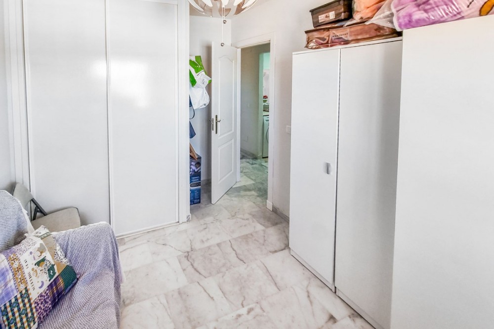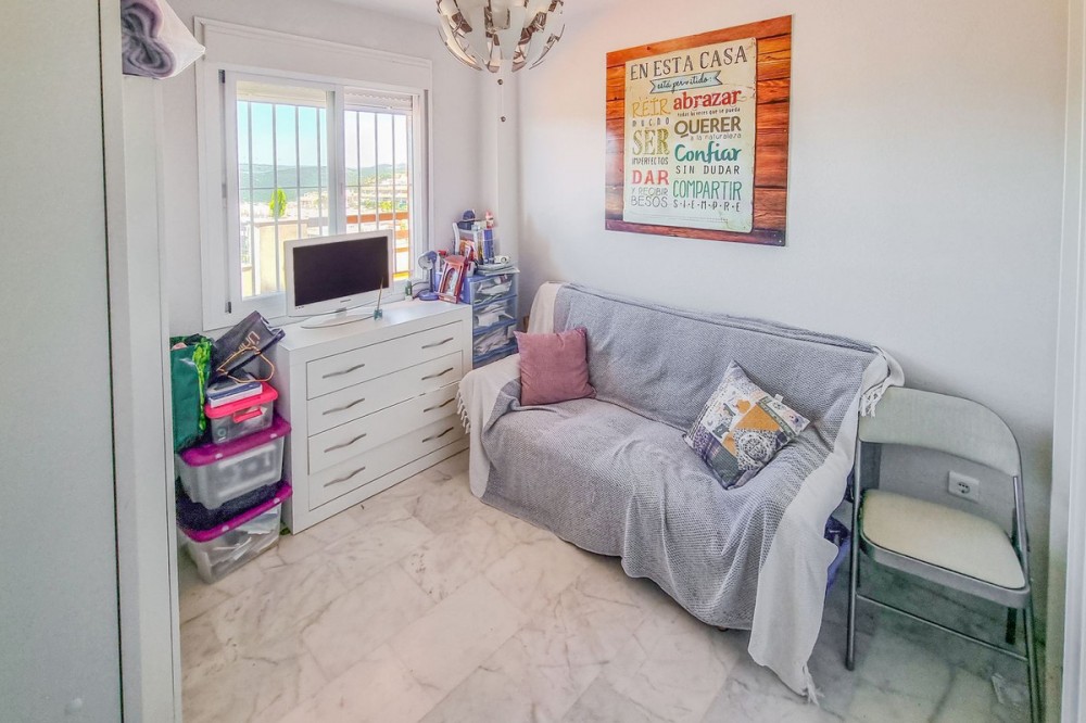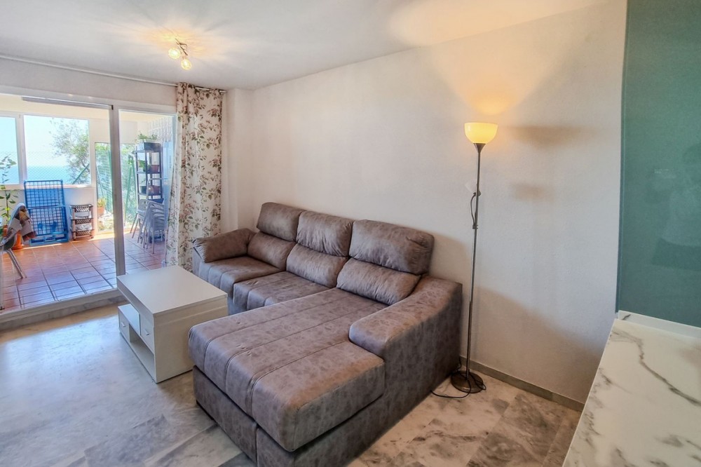 - Lovely 2-bed apartment with terrace, private garden and sea and golf views in Casares Costa. The living room is bright and leads to a covered large terrace with stunning sea views, that is currently used as sun room, but could be transformed into a second living space or even an office. From here we get to the private garden area from where we can enjoy beautiful unobstructed views of the sea. This area is perfect to enjoy barbeques or just relax looking at the sea. The kitchen is semi-open and fully equipped with appliances. The master bedroom has its own en-suite bathroom with bathtub and the second bedroom has a full family bathroom next to it. Both bedrooms have fitted wardrobes and there is marble floors throughout the entire house. The property includes a parking space in the price and it is sold fully furnished. The community is gated and includes gardens and pool. The beach and amenities are only 5 minutes ‘drive away, 10 minutes from Duquesa Port and only 15minutes from Estepona.