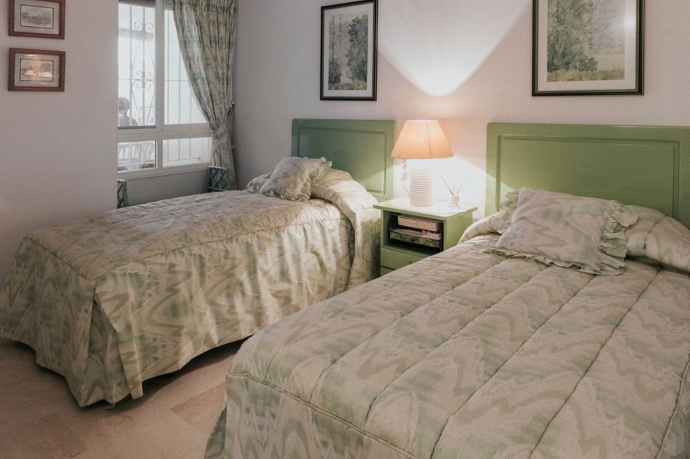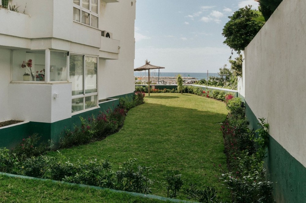 - Ground floor apartment with private garden in urbanization facing the sea A ground floor apartment of 90 m² built is offered for sale, located in a consolidated and quiet urbanization on the beachfront, The property is distributed in: Two bedrooms. Two complete bathrooms. Large porch with direct access to a private garden, located in an area of the urbanization with high privacy and no pedestrian traffic in front of the house. Independent kitchen and living-dining room with direct access to the outside. Includes parking space and storage room. The urbanization has a community pool and direct access to the promenade of the Estepona Marina. The beach is less than 5 minutes walk away, allowing you to enjoy a privileged coastal environment with total comfort. An ideal property for those seeking tranquility, privacy and an unbeatable location by the sea. Ground Floor Apartment, Estepona, Costa del Sol. 2 Bedrooms, 2 Bathrooms, Built 90 m², Terrace 15 m². Setting : Beachfront, Town, Commercial Area, Beachside, Port, Close To Port, Close To Shops, Close To Sea, Close To Town, Close To Schools, Marina, Close To Marina, Urbanisation, Front Line Beach Complex. Orientation : South. Condition : Good. Pool : Communal. Climate Control : Air Conditioning, Hot A/C, Cold A/C. Views : Garden. Features : Covered Terrace, Lift, Near Transport, Private Terrace, WiFi, Storage Room, Utility Room, Ensuite Bathroom, Marble Flooring, Double Glazing, Near Church, Fiber Optic. Furniture : Fully Furnished. Kitchen : Fully Fitted. Garden : Communal. Security : Gated Complex. Parking : Underground, Garage, Covered, Private. Category : Beachfront, Resale.