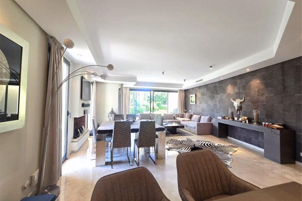 - Luxury Living Near Sierra Blanca | Gated Community | Turnkey Property This exceptional 2-bedroom, 2-bathroom + guest toilet ground-floor apartment presents a rare opportunity to own a refined residence in one of Marbella’s most desirable urbanizations—just a mile from the town center on the way to Sierra Blanca. Ideally located along the exclusive Golden Mile, the apartment offers a perfect blend of modern comfort, timeless design, and a prime location, ideal for year-round living or as a stylish holiday home. Situated within a secure gated community with 24-hour security, this residence ensures both privacy and peace of mind. Residents enjoy beautifully maintained Mediterranean gardens, three swimming pools with restrooms, and relaxing saunas—creating an atmosphere of resort-style sophistication. The southwest-facing apartment is filled with natural light and features high-quality finishes throughout. The spacious open-plan living and dining area is complemented by a cozy fireplace and opens onto a large covered terrace with direct access to the lush communal gardens—perfect for al fresco dining or quiet morning coffees. The fully equipped, modern kitchen offers premium appliances and ample storage, seamlessly combining functionality with sleek aesthetics. The master suite includes an en-suite bathroom and private access to the main terrace, offering a peaceful retreat. The second bedroom is generously sized and served by a full guest bathroom, making the layout ideal for families, guests, or home office use. Just a five-minute drive from Marbella’s vibrant center and stunning beaches, this apartment offers both convenience and tranquility. Sold fully furnished and move-in ready, it represents a standout turnkey investment in one of the Costa del Sol’s most exclusive enclaves. 2 Bedrooms, 2 Bathrooms + Guest toiltet Ground-floor with direct garden access Gated community with 24h security 3 communal pools, Mediterranean gardens, saunas Fully furnished and equipped Southwest orientation, private covered terrace Five minutes to Marbella center and beaches This is Golden Mile living at its finest—where luxury meets lifestyle in the heart of Marbella.