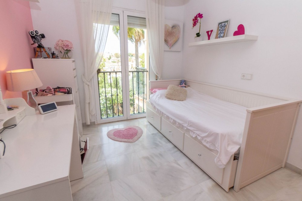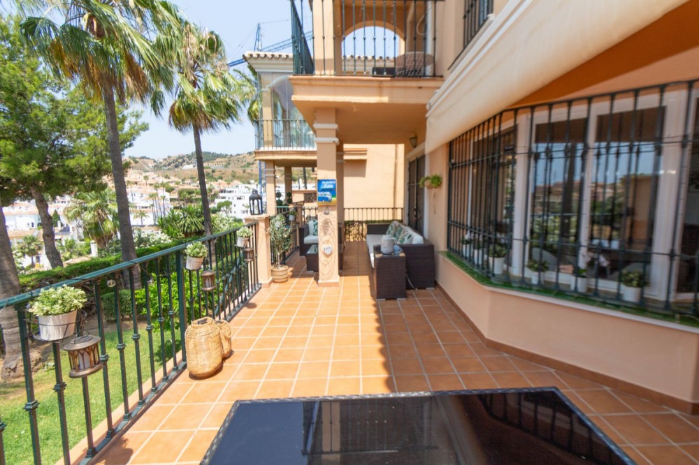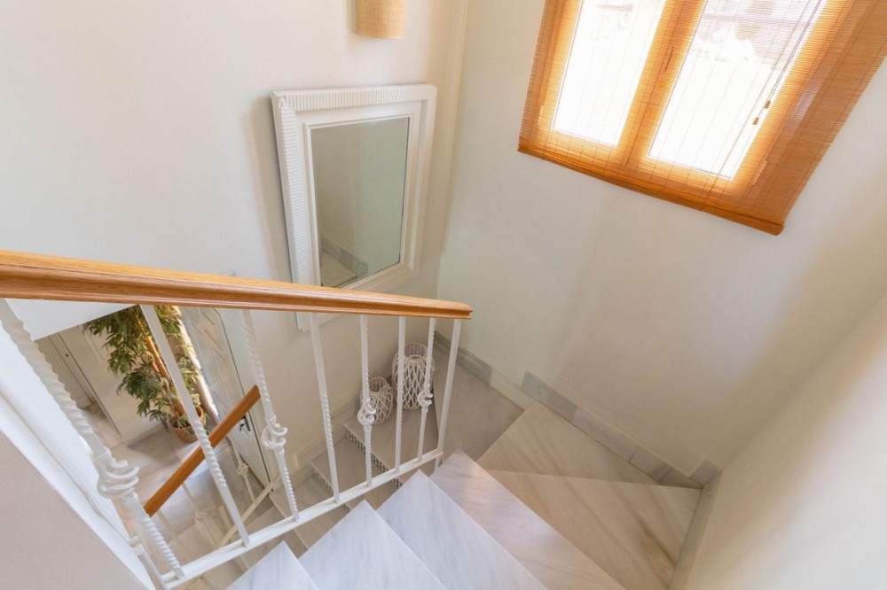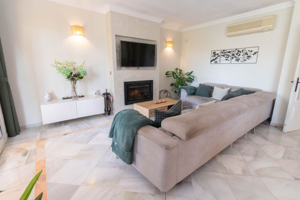 - Southwest facing, impeccably presented, 3 double bedroom, semi-detached villa with views from the upper level to the Mediterranean, located within a small, extremely well-maintained community. The property is in excellent condition having recently been redecorated throughout. This beautiful home offers both spacious internal living areas, upper and lower exterior terraces and a garden area to enjoy the outdoor lifestyle. On entering the property, a welcoming hallway leads to a spacious lounge with fireplace, dining area, fully fitted modern and naturally light kitchen, with an exterior utility area. The lounge leads onto a generous lower terrace (biggest on the community) and access to the garden area which also has a lower storage area. The upper level consists of the master bedroom with a generous en suite bathroom under floor heated and a Jacuzzi bath. The master bedroom leads on to an upper terrace with lovely sea views. 2 additional double bedrooms and an additional bathroom complete this level. The master bedroom leads on to an upper terrace with lovely sea views. The property also has its own water reserve in case of water shortage. Located within a very well maintained, small and friendly community of just 18 properties with a wonderful shared main and children’s pool. This superb property is suitable as either a holiday home or full time living. A real home from home this property must be seen. The local bus service stops at the end of the road for easy transport. Riviera del Sol forms a part of Mijas, midway between Marbella and Fuengirola around 25mins from Malaga Airport. This is an established residential area with plenty of commercial activity, bars, restaurants and superb sports facilities and is set beside the Miraflores golf course. It is a popular residential part of Mijas Costa, due to its great location, easy access to Marbella and Fuengirola, exceptional golf courses, lovely beaches and a wide range of bars and restaurants. Semi-Detached House, Riviera del Sol, Costa del Sol. 3 Bedrooms, 2.5 Bathrooms, Built 139 m², Terrace 45 m², Garden/Plot 40 m². Setting : Close To Golf, Close To Shops, Close To Sea, Close To Schools, Urbanisation. Orientation : South West. Condition : Excellent. Pool : Communal, Children`s Pool. Climate Control : Air Conditioning, Fireplace, U/F Heating. Views : Sea, Garden. Features : Covered Terrace, Fitted Wardrobes, Near Transport, Private Terrace, WiFi, Storage Room, Utility Room, Ensuite Bathroom, Marble Flooring, Jacuzzi, Double Glazing, Fiber Optic. Kitchen : Fully Fitted. Security : Gated Complex, Entry Phone, Alarm System, Safe. Parking : Covered, Private. Utilities : Electricity, Drinkable Water. Category : Bargain, Holiday Homes, Investment, Luxury, Resale.