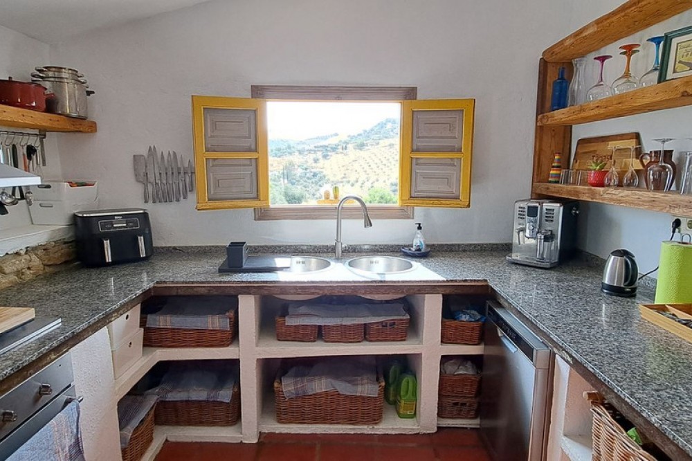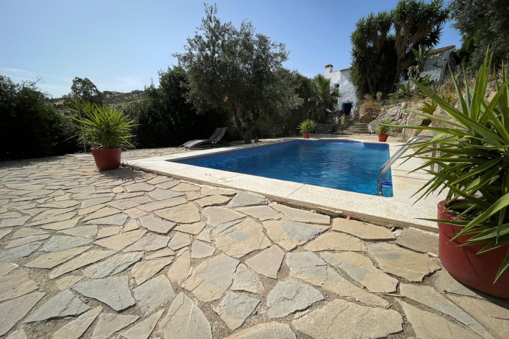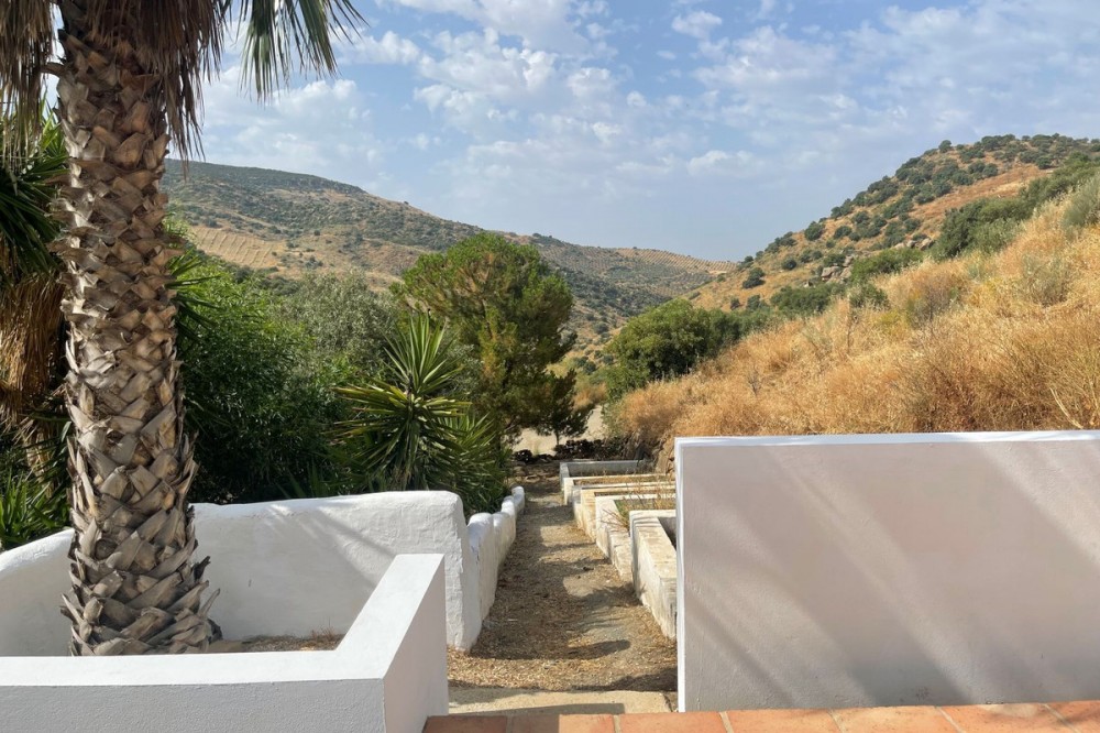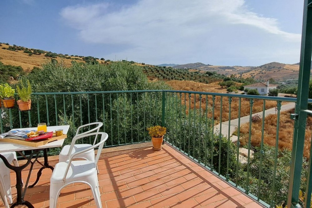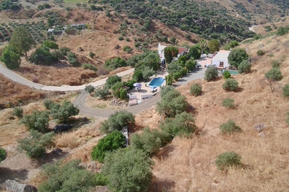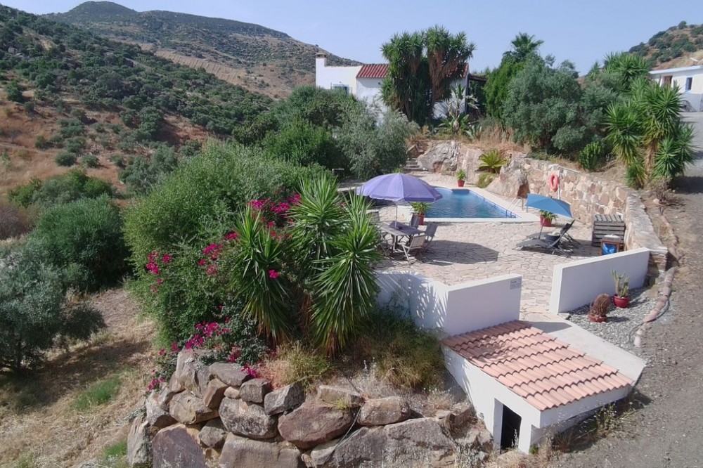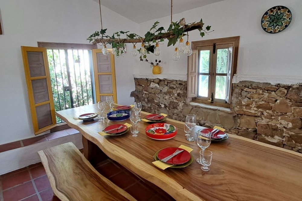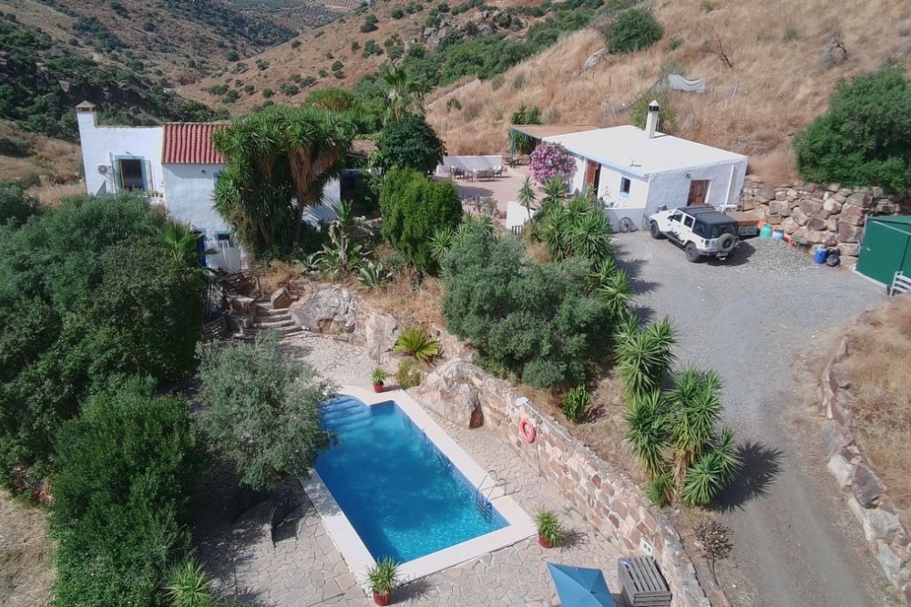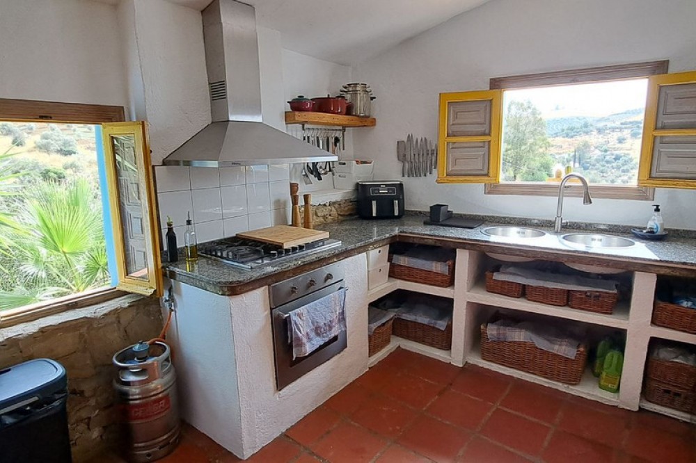 - Location This classic Cortijo, about 40 minutes drive from Málaga airport, is easily accessible for both national and international guests. The road to the Cortijo is paved and during the route to the Cortijo you immediately enter the typical Andalusian countryside with distinctive mountains, olive & fruit trees and many breathtaking views. Casa Canelo is a unique Andalusian Cortija built in the classic style and, while retaining all its architectural charm, has been sympathetically renovated and extended to offer all modern conveniences. The estate extends to 48,550m2 with 300m2 of built property. It includes a successful Airbnb rental and extensive planted hillsides and gardens. The property is fortunate to be connected to fresh drinkable spring water from the El Torcal mountain. While being complete in itself the property additionally offers the opportunity for simple conversion into a guest house and/or the installation of further rental businesses across the estate. The bustling white village of Alora with its Spanish charm is about 15 minutes drive from this cortijo and offers all necessary amenities including restaurants and bars, local shops and a medical centre as well as a primary and secondary school, sports facilities and a quick train connection to Málaga. For adventurers and holiday makers there are several options nearby such as kayaking on the Ardales lakes, hiking on the worldfamous “El Caminito del Rey”, mountain climbing in El Chorro and kilometres of hiking and cycling trails through the beautiful surroundings. The UNESCO natural park El Torcal is a national attraction and is even visible from your own estate. The approach to the property is through a wooded and lush mountain valley. Arriving at the secure metal gates you immediately appreciate the beautiful country setting, nestled into a small hillside and surrounded my spectacular views. There are beautiful views of the rolling countryside from every part of the plot. There is plenty of planting, rock formations and many beautiful footpaths on the estate. With plenty of space, privacy is guaranteed and you have endless possibilities. A driveway leads you to the Cortijo Cortijo Top floor A lush ivy archway surrounds a portico and it is through this you enter the front of the house on the top floor. Classic Spanish studded doors open into a bright rustic hallway with beams and arches showing off the magnificent thick and sturdy cortija walls. The Cortijo retains its authentic atmosphere but with all the comforts you would expect in a modern home. On the top floor is the spacious kitchen and open dining room. The kitchen is well equipped with all the expected built-in appliances. Across the breakfast bar is a dining area for great evenings of entertainment and culinary enjoyment. From the kitchen, there are breathtaking views all around, through the authentic windows with wooden shutters. Continuing through the charming hall, we enter the master-bedroom with en-suite bathroom. The ensuite has Jack and Gill doors one from the bedroom and the other into the hall. The ensuite has a recently installed modern bathroom suite with bright Spanish tiling and invigorating pan head shower. When you wake up, in the morning, you can take a seat on your own private terrace to enjoy the stunning views of the countryside all around you. The open entrance hall finds a traditional tiled stairwell leading down to the ground floor of the Cortijo. Cortijo Ground floor Down here are two further double bedrooms The wooden beamed hall here opens up into a family living room with large classic fireplace. Behind the living room is a small storage room that can be used for several purposes. This part is at least 100 years old !! From the adjoining back hall we turn into the modernised family bathroom with recent new fittings and tiles. The bath is a large jacuzzi style. For owners who may want to use the lower part of the main house for holiday rentals, there is a separate entrance. This entrance gives access to the pool and surrounding terraces. Swimming Pool The swimming pool (8x4 M) is surrounded with a large stone built terrace, olive trees and yuccas and offers breathtaking views over the valley. An unusual and beautiful feature are the natural rock walls surrounding the terrace creating an enchanting oasis to enjoy the tranquillity of this area. Casita This casita is very atmospheric and there are many beautiful classic elements, matching the main house. The casita is spacious and it contains a living room, followed by a bedroom. To the end of this casita is a large bedroom with double doors onto the shaded outside terrace. This bedroom and the main casita both have attractive natural stone walls. The Casita is heated by an effective woodburning stove. With some minor adjustments, this casita is ready to be used as holiday rental accommodation. Vegetable Garden An element that suits the rural location of this cortijo are the masonry white vegetables beds. These beds are meant for growing your own vegetables and fruit. Atmospheric and classic is a description that does justice to this section. There is an irrigation system to encourage the growth of the tastiest vegetables. Circus Wagon A short but beautiful hillside track takes you up to the properties unique, original Circus Wagon. Built in the 19th century, the wagon now nestles secluded in the hillside and has been renovated up to modern standards and is currently available for rental through Airbnb. The wagon has full tourist licenses and its success is proven by its multiple 5 star reviews. Displaying original artwork from circuses across Spain and uniquely decorated it is designed in full circus theme. Retaining all its original features, this circus wagon has been restored and features a super comfortable luxury double bed, dining area, sofa and a stylish fully equipped kitchen with all modern conveniences. The circus wagon is surrounded by a full decking with rocking sun c