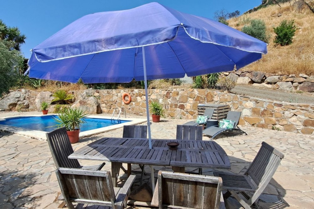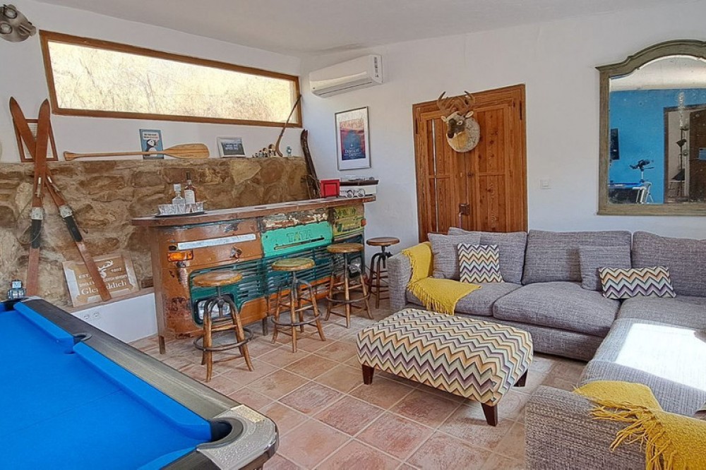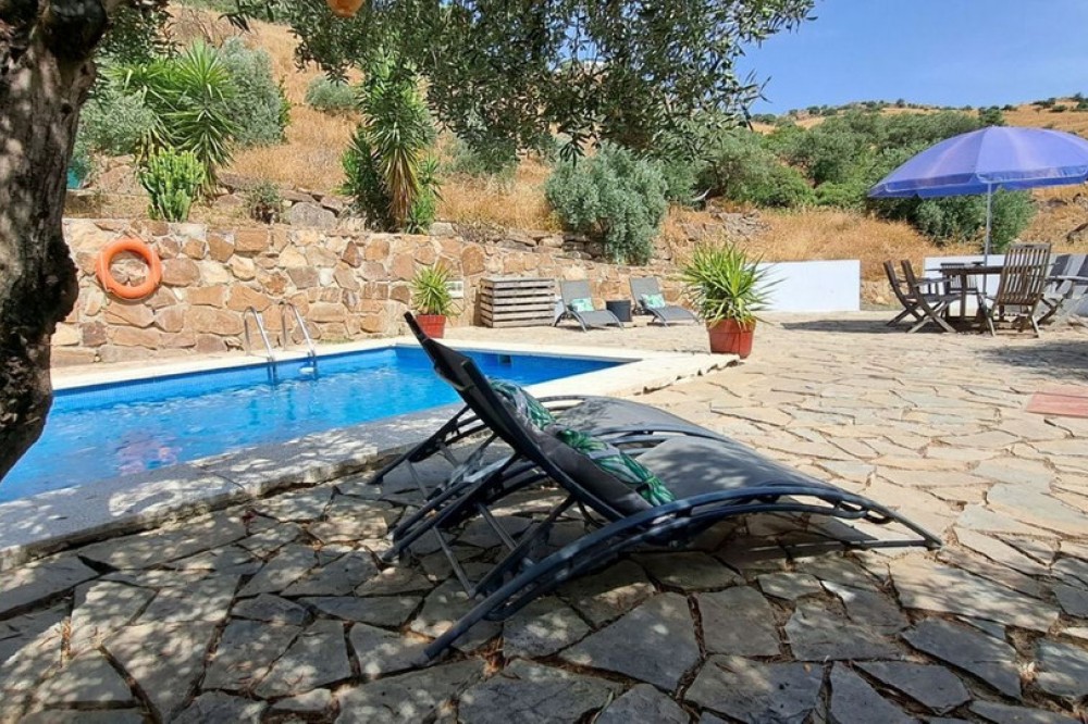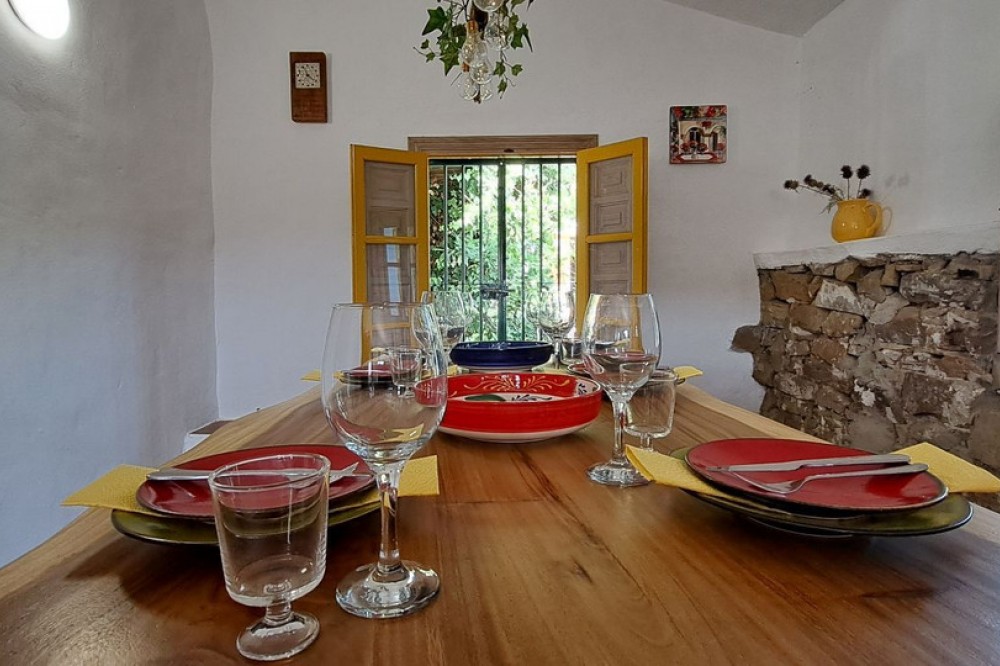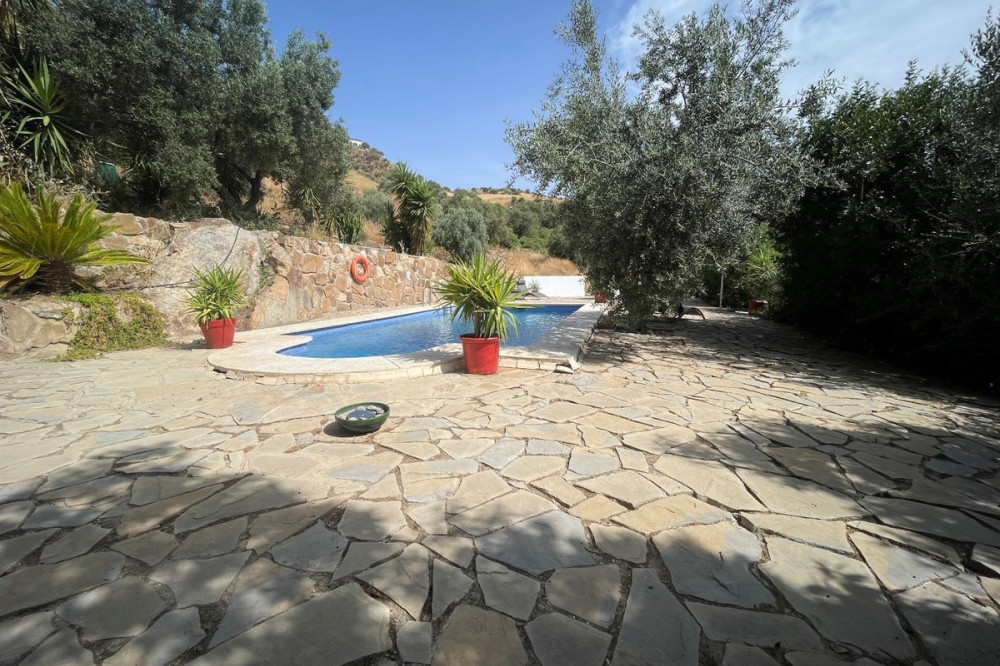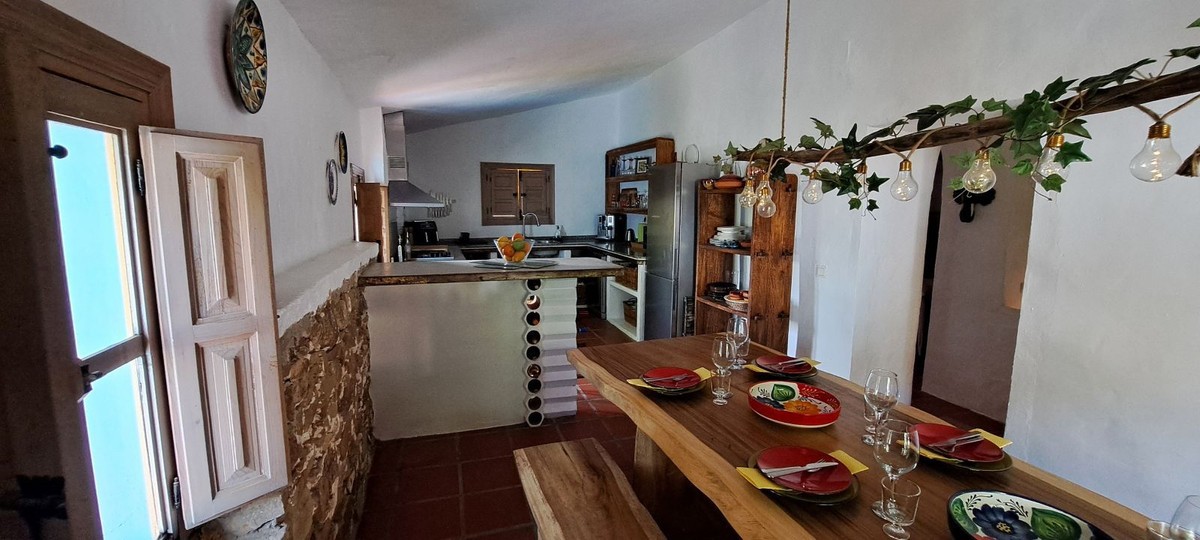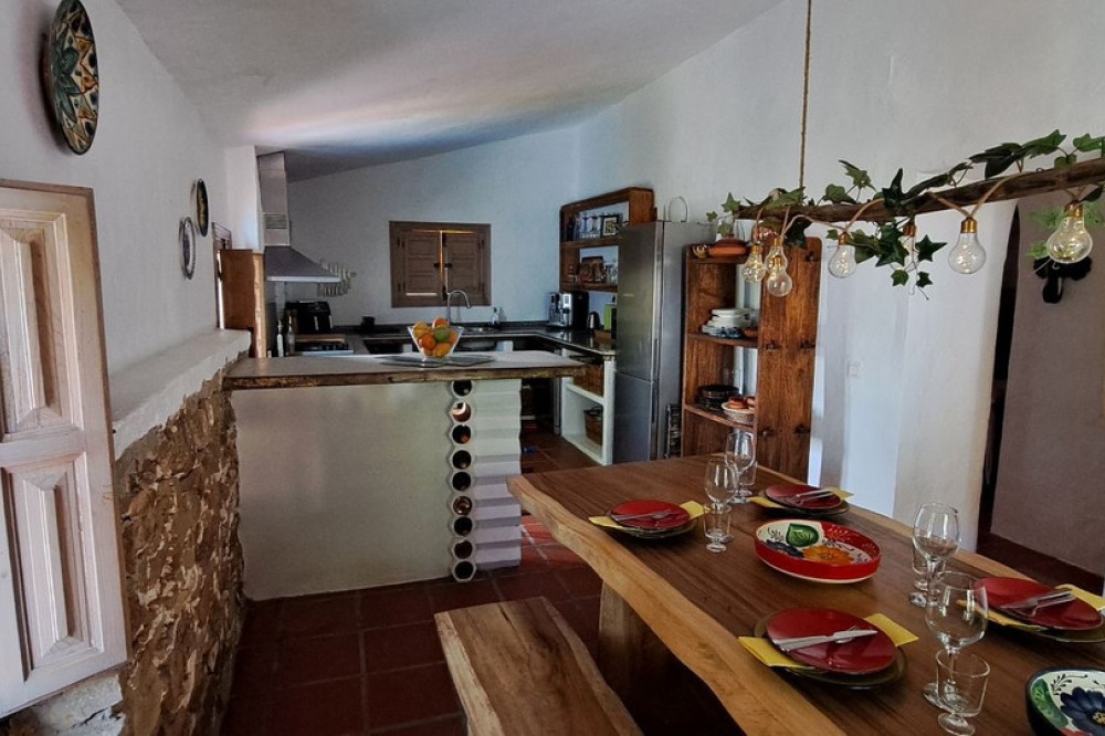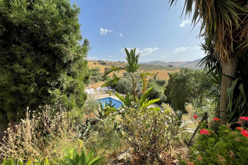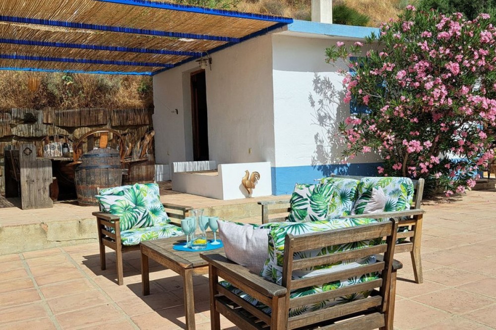 - Location This classic Cortijo, about 40 minutes drive from Málaga airport, is easily accessible for both national and international guests. The road to the Cortijo is paved and during the route to the Cortijo you immediately enter the typical Andalusian countryside with distinctive mountains, olive & fruit trees and many breathtaking views. Casa Canelo is a unique Andalusian Cortija built in the classic style and, while retaining all its architectural charm, has been sympathetically renovated and extended to offer all modern conveniences. The estate extends to 48,550m2 with 300m2 of built property. It includes a successful Airbnb rental and extensive planted hillsides and gardens. The property is fortunate to be connected to fresh drinkable spring water from the El Torcal mountain. While being complete in itself the property additionally offers the opportunity for simple conversion into a guest house and/or the installation of further rental businesses across the estate. The bustling white village of Alora with its Spanish charm is about 15 minutes drive from this cortijo and offers all necessary amenities including restaurants and bars, local shops and a medical centre as well as a primary and secondary school, sports facilities and a quick train connection to Málaga. For adventurers and holiday makers there are several options nearby such as kayaking on the Ardales lakes, hiking on the worldfamous “El Caminito del Rey”, mountain climbing in El Chorro and kilometres of hiking and cycling trails through the beautiful surroundings. The UNESCO natural park El Torcal is a national attraction and is even visible from your own estate. The approach to the property is through a wooded and lush mountain valley. Arriving at the secure metal gates you immediately appreciate the beautiful country setting, nestled into a small hillside and surrounded my spectacular views. There are beautiful views of the rolling countryside from every part of the plot. There is plenty of planting, rock formations and many beautiful footpaths on the estate. With plenty of space, privacy is guaranteed and you have endless possibilities. A driveway leads you to the Cortijo Cortijo Top floor A lush ivy archway surrounds a portico and it is through this you enter the front of the house on the top floor. Classic Spanish studded doors open into a bright rustic hallway with beams and arches showing off the magnificent thick and sturdy cortija walls. The Cortijo retains its authentic atmosphere but with all the comforts you would expect in a modern home. On the top floor is the spacious kitchen and open dining room. The kitchen is well equipped with all the expected built-in appliances. Across the breakfast bar is a dining area for great evenings of entertainment and culinary enjoyment. From the kitchen, there are breathtaking views all around, through the authentic windows with wooden shutters. Continuing through the charming hall, we enter the master-bedroom with en-suite bathroom. The ensuite has Jack and Gill doors one from the bedroom and the other into the hall. The ensuite has a recently installed modern bathroom suite with bright Spanish tiling and invigorating pan head shower. When you wake up, in the morning, you can take a seat on your own private terrace to enjoy the stunning views of the countryside all around you. The open entrance hall finds a traditional tiled stairwell leading down to the ground floor of the Cortijo. Cortijo Ground floor Down here are two further double bedrooms The wooden beamed hall here opens up into a family living room with large classic fireplace. Behind the living room is a small storage room that can be used for several purposes. This part is at least 100 years old !! From the adjoining back hall we turn into the modernised family bathroom with recent new fittings and tiles. The bath is a large jacuzzi style. For owners who may want to use the lower part of the main house for holiday rentals, there is a separate entrance. This entrance gives access to the pool and surrounding terraces. Swimming Pool The swimming pool (8x4 M) is surrounded with a large stone built terrace, olive trees and yuccas and offers breathtaking views over the valley. An unusual and beautiful feature are the natural rock walls surrounding the terrace creating an enchanting oasis to enjoy the tranquillity of this area. Casita This casita is very atmospheric and there are many beautiful classic elements, matching the main house. The casita is spacious and it contains a living room, followed by a bedroom. To the end of this casita is a large bedroom with double doors onto the shaded outside terrace. This bedroom and the main casita both have attractive natural stone walls. The Casita is heated by an effective woodburning stove. With some minor adjustments, this casita is ready to be used as holiday rental accommodation. Vegetable Garden An element that suits the rural location of this cortijo are the masonry white vegetables beds. These beds are meant for growing your own vegetables and fruit. Atmospheric and classic is a description that does justice to this section. There is an irrigation system to encourage the growth of the tastiest vegetables. Circus Wagon A short but beautiful hillside track takes you up to the properties unique, original Circus Wagon. Built in the 19th century, the wagon now nestles secluded in the hillside and has been renovated up to modern standards and is currently available for rental through Airbnb. The wagon has full tourist licenses and its success is proven by its multiple 5 star reviews. Displaying original artwork from circuses across Spain and uniquely decorated it is designed in full circus theme. Retaining all its original features, this circus wagon has been restored and features a super comfortable luxury double bed, dining area, sofa and a stylish fully equipped kitchen with all modern conveniences. The circus wagon is surrounded by a full decking with rocking sun c