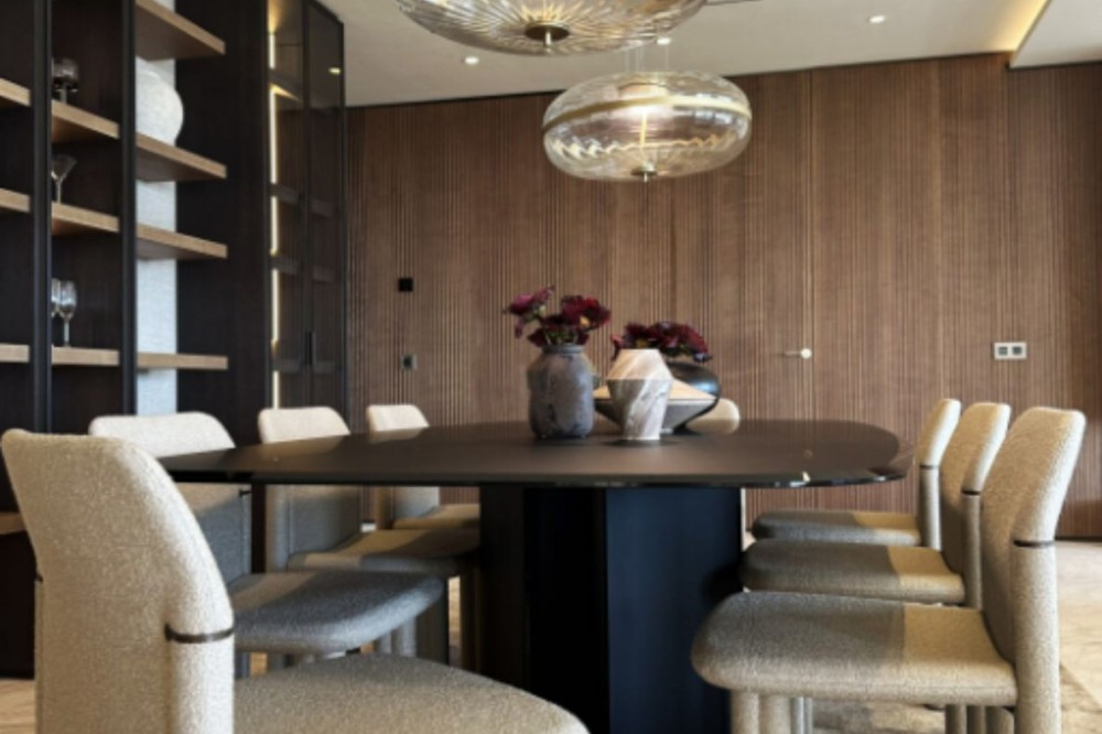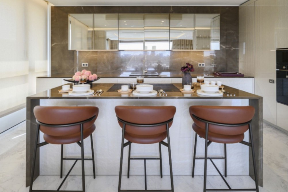 - This extraordinary residence redefines the standard of modern luxury from the moment you enter. A majestic entrance hall welcomes you with a sense of grandeur that seamlessly continues throughout the home. The expansive living area impresses with its remarkable dimensions, offering a rare sense of openness and light that enhances every corner. Elegant, large-format marble flooring flows throughout the interior, adding a timeless sophistication. The kitchen, an exceptional centerpiece, has been meticulously crafted and furnished by the prestigious Fendi Casa, combining aesthetic elegance with top-tier functionality. Every detail speaks of quality, from the refined carpentry to the seamless integration of materials and finishes. Floor-to-ceiling windows flood the spaces with natural light and offer breathtaking panoramic views that can be enjoyed from both the main floor terraces and the expansive solarium. Upstairs, the rooftop is designed as a private retreat. A stunning swimming pool becomes the heart of this outdoor sanctuary, while the generous layout provides the perfect setting to incorporate a bespoke bar or outdoor kitchen — ideal for entertaining or unwinding in style. This property is more than just a home; it's a statement of refined living. Thoughtfully designed for those who appreciate exceptional craftsmanship, exclusive materials, and unparalleled views, it offers a living experience that balances beauty, comfort, and sophistication in perfect harmony.