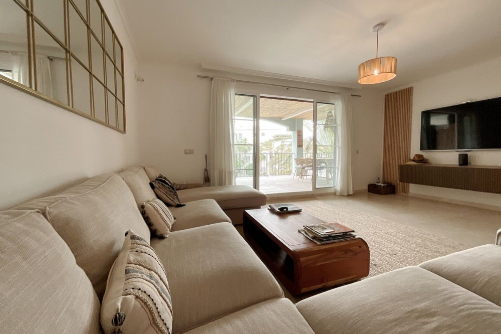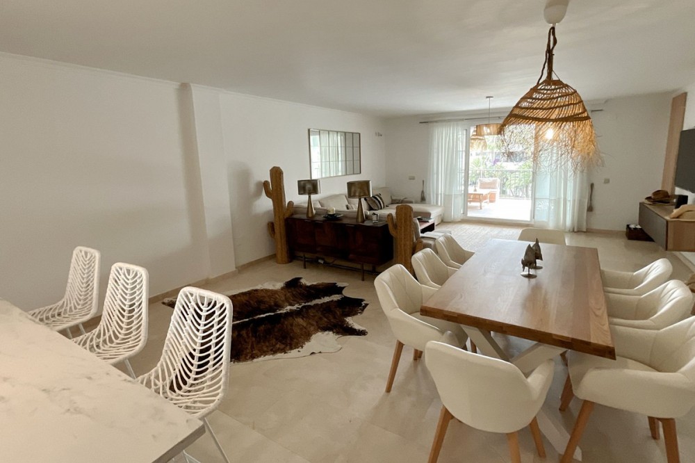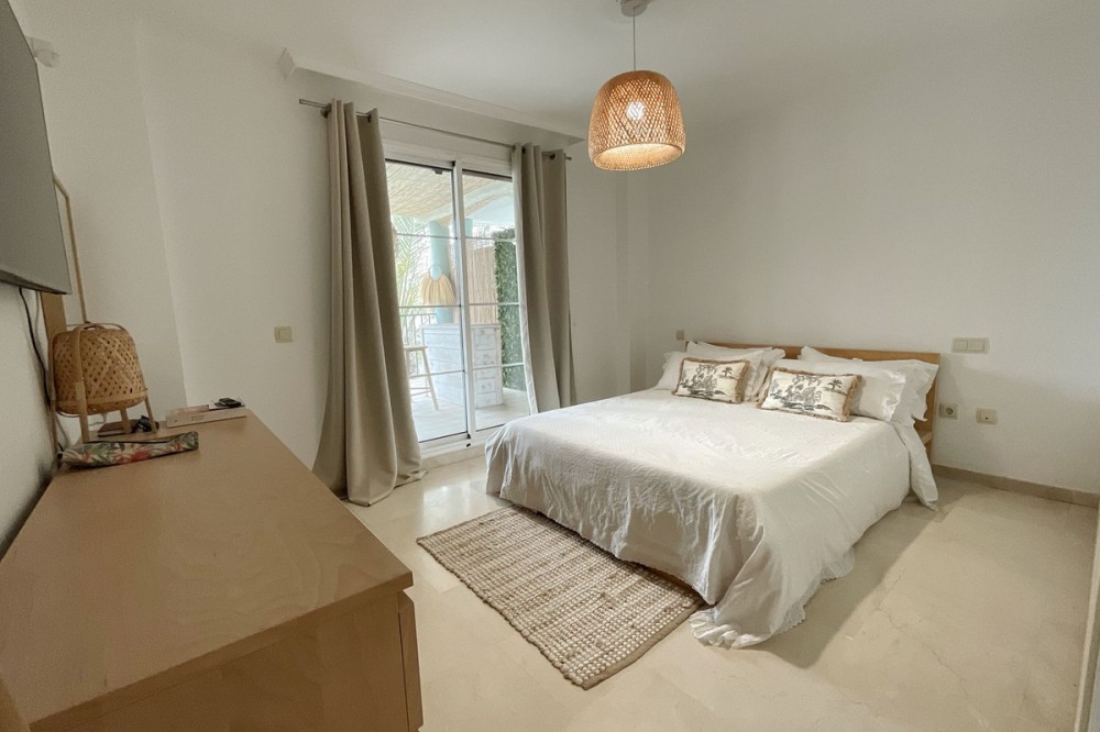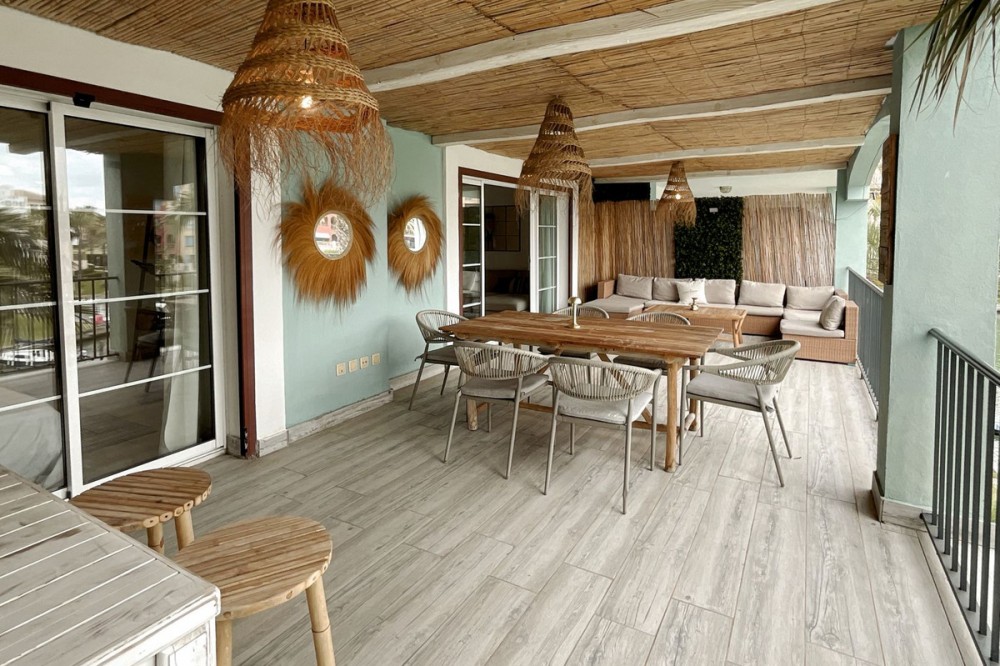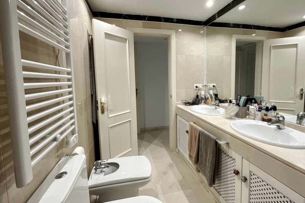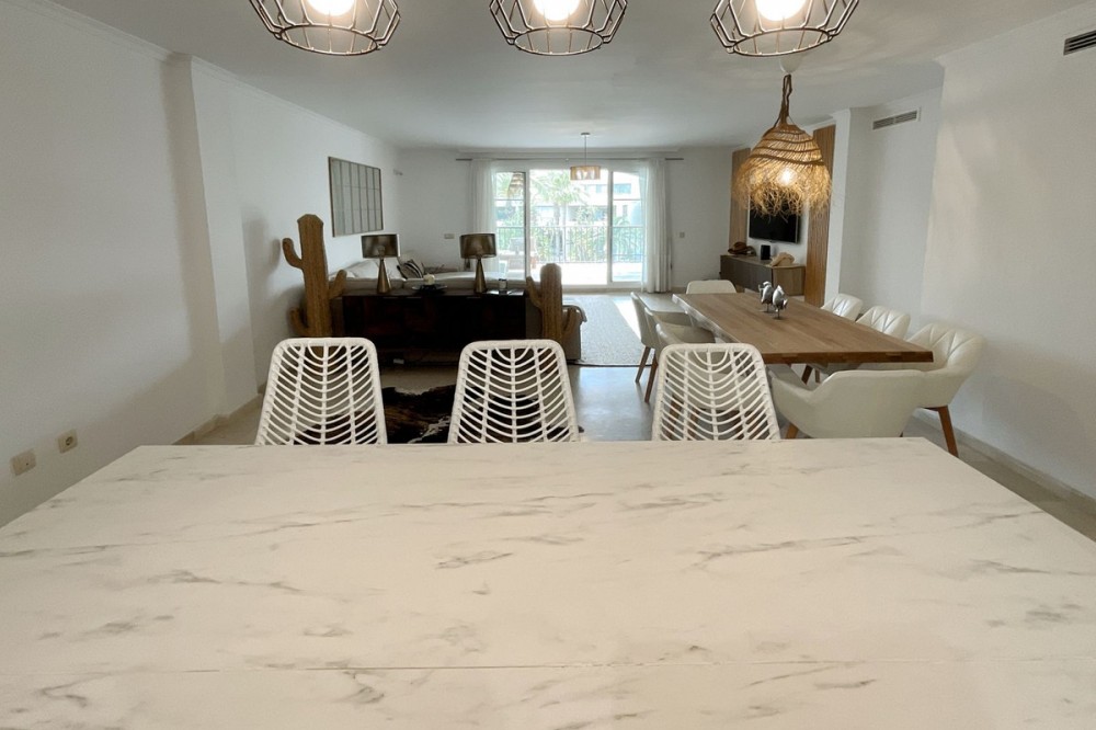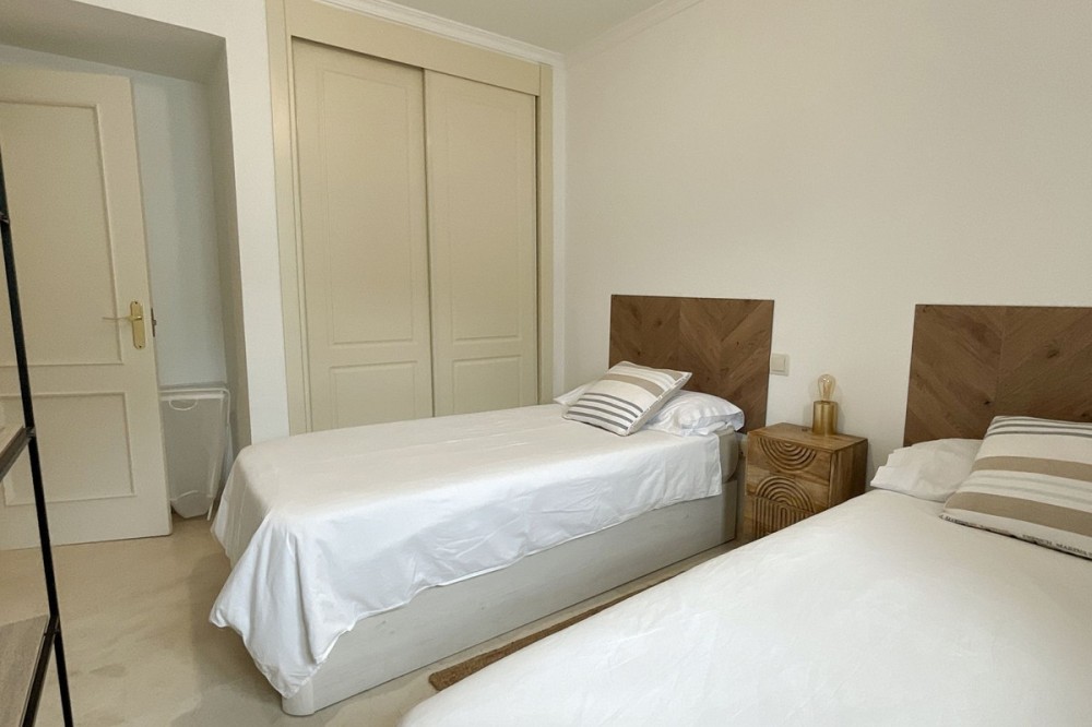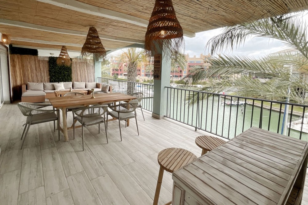 - Spacious and bright 3-bedroom, 2-bathroom apartment on the second floor, located on one of the exclusive islands of the prestigious Sotogrande Marina. Recently renovated, it features a light and relaxed style. Its soft tones enhance the generous spaces of the living area and terrace, which, when the doors are open, merge into a seamless open space of over 70 m² dedicated to leisure and socializing. The covered terrace offers 10 linear meters of panoramic views over the marina, allowing you to enjoy cool afternoons and glamorous drinks even on the hottest summer days. The master bedroom includes an en-suite bathroom, and the two additional bedrooms each accommodate two single beds—making this apartment ideal both for holiday getaways and year-round living. A lovely pool at the heart of the complex completes this beautiful property. In addition to its massage jets, it stands out as the only pool in the Sotogrande Marina that remains open all year round. The spacious garage space provides access to a large storage room—perfect for keeping beach gear, golf clubs, tennis equipment, and everything else you need to enjoy Sotogrande. Come see it before it disappears from the market.