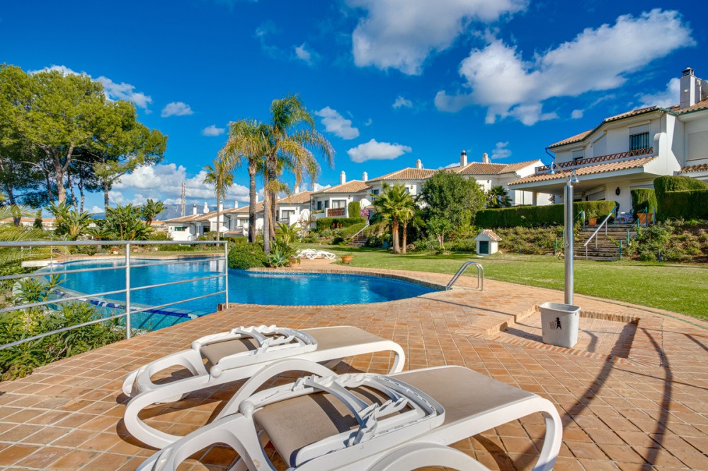 - Lovely three-bedroom semi detached Villa in a gated community of Riviera Del Sol, the community has well kept gardens, two communal swimming pools, one of them being heated, and is a short walk to the beach and local amenities. The property has an open plan living and dining area with a built-in fireplace and access to the spacious terrace with views to the mountains, golf and pool; fully fitted kitchen; and guest toilet. The lower-level leads to the master suite with access to the private garden; two guest suites; and access to the private double garage. Other features include hot and cold air conditioning, electric shutters and fitted wardrobes. A great reform opportunity in a residential community.